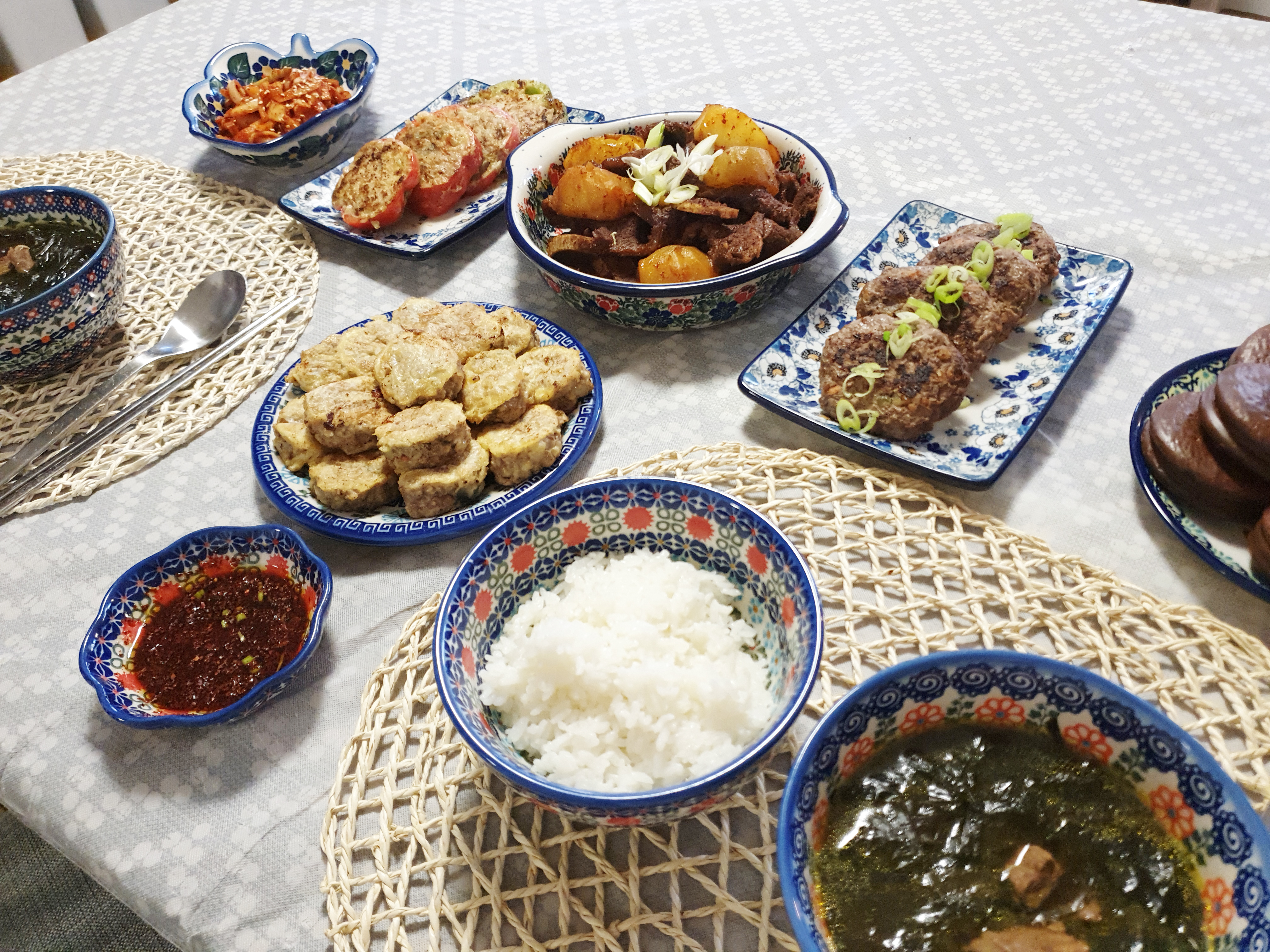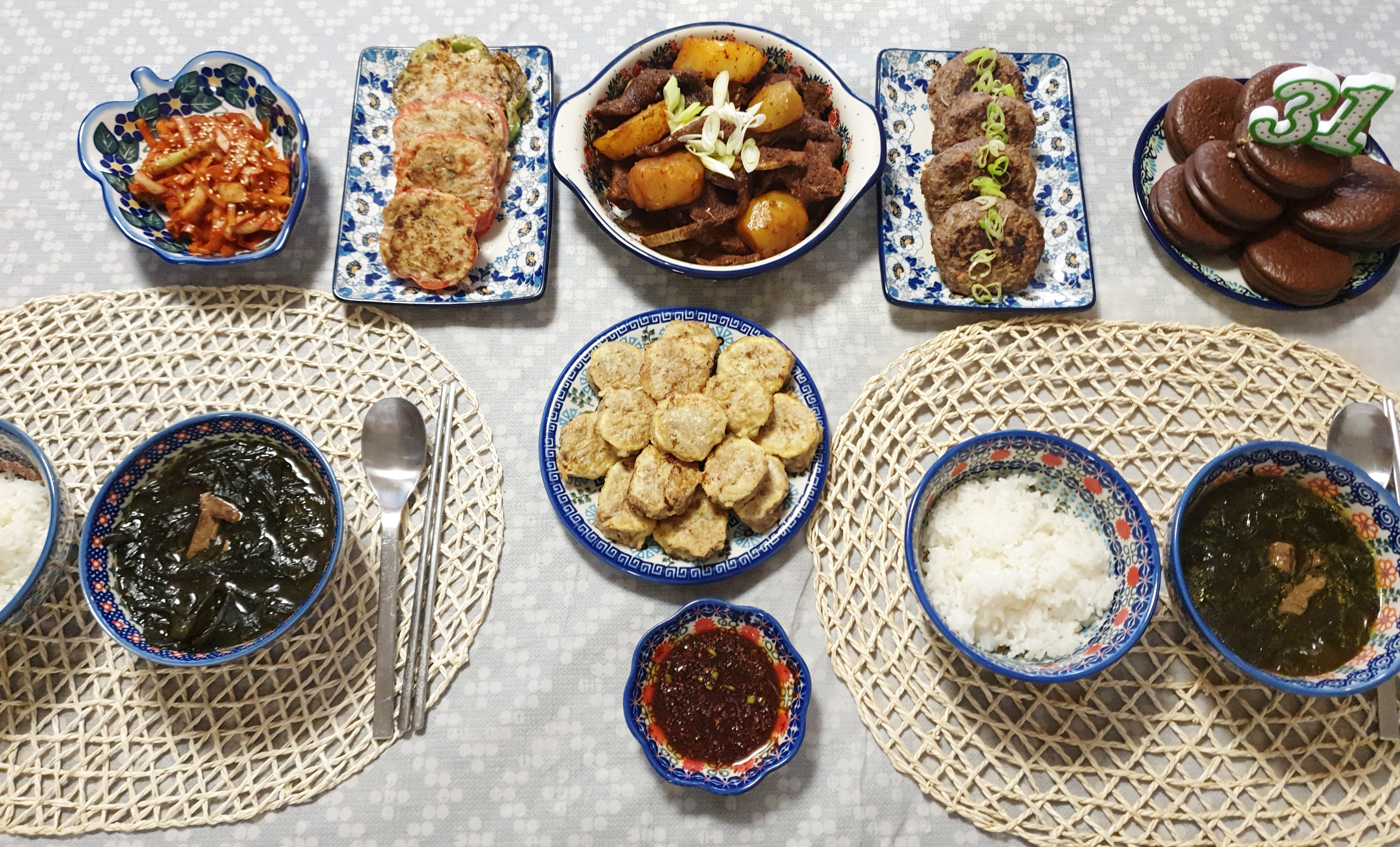 미국인인 저의 남편은 전생에 한국인이었나 생각이 들 정도로 한식을 정말 사랑해요~ 못 먹는 것도 없고 자존심이 상하지만 이젠 매운 것도 저보다 잘 먹어요..>< 남편 생일이 이번 추석과 얼마 차이 나지 않아서 한식을 사랑하는 남편을 위해 추석 분위기로 생일 상차림을 해줬어요~