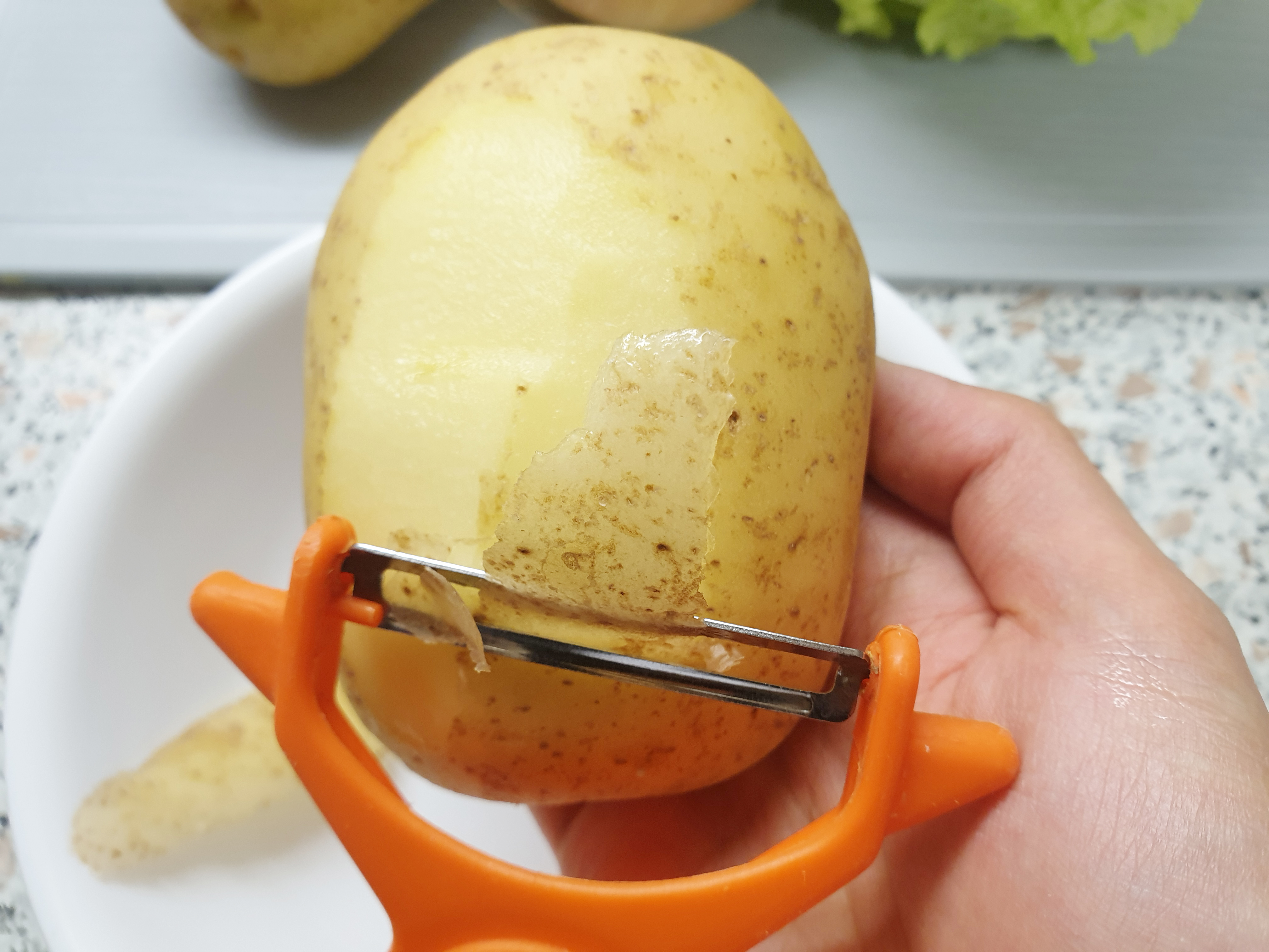 감자(3개)- 껍질을 벗기고 흐르는 물에 씻은 후 반으로 썰어줍니다.