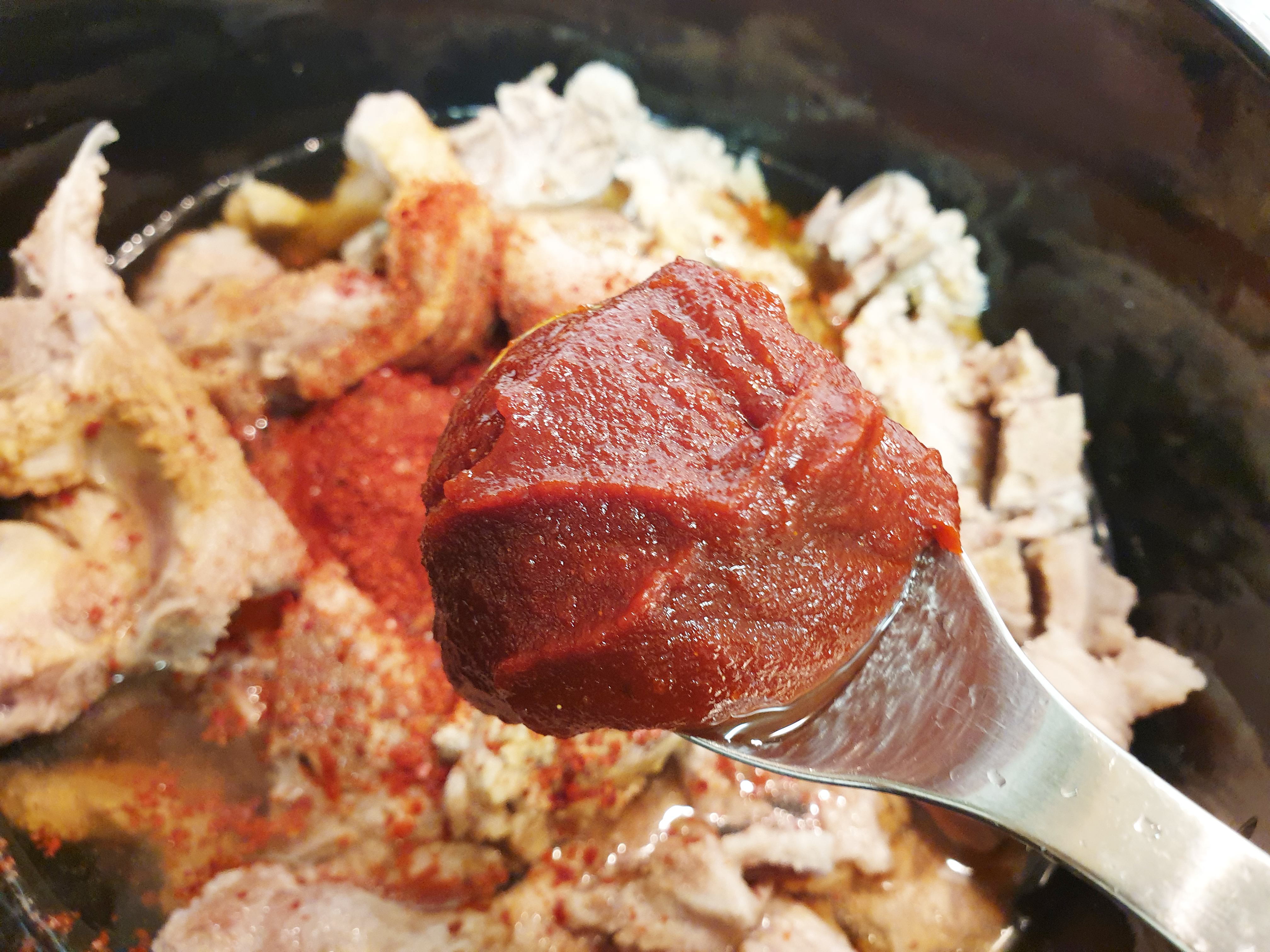 필요한 조미료: 간장 5큰술 , 고춧가루 3큰술, 고추장 3큰술, 된장 2큰술, 들깻가루 3~5큰술, 설탕 2큰술, 다진 마늘 1큰술, 간 생강 또는 생강가루 1큰술, 후춧가루 , 맛술 또는 소주