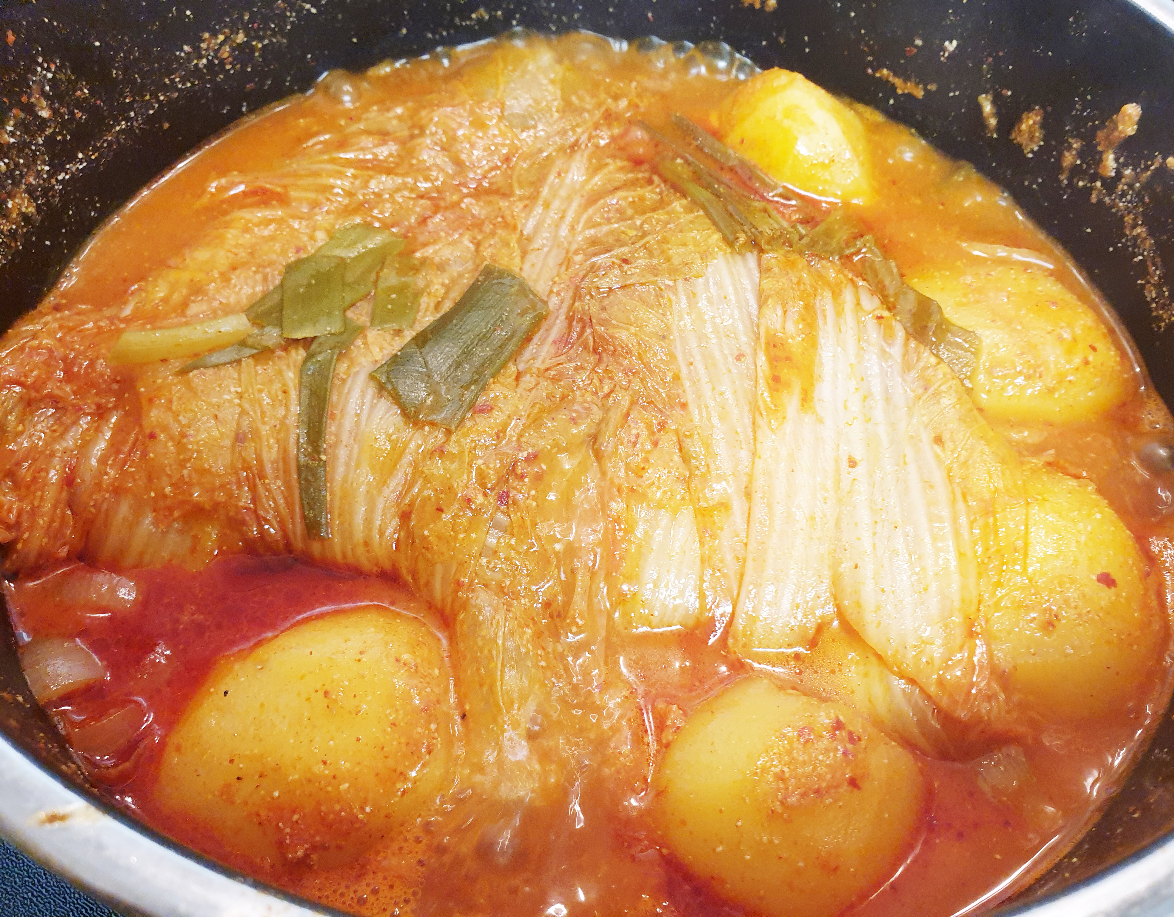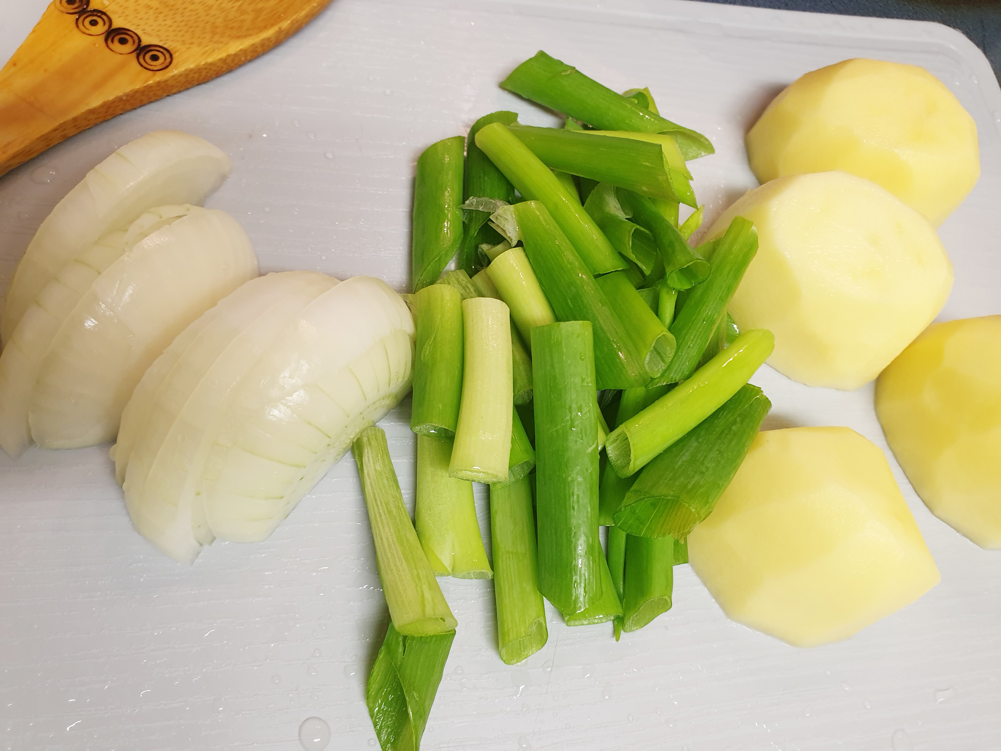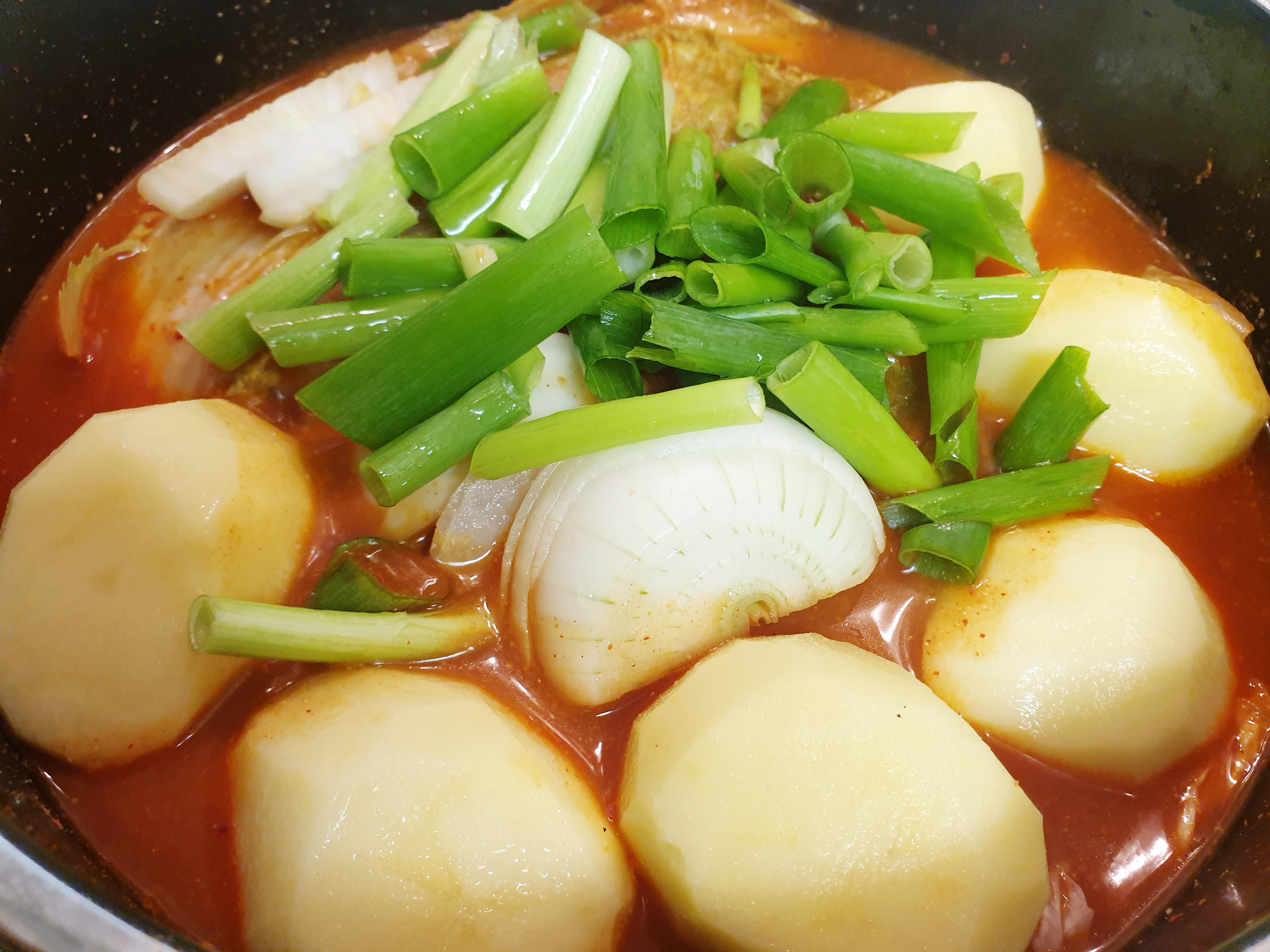 10. 그다음 준비한 감자, 양파, 대파를 넣고 감자가 잘 익을 때까지 끓여주면 끝!