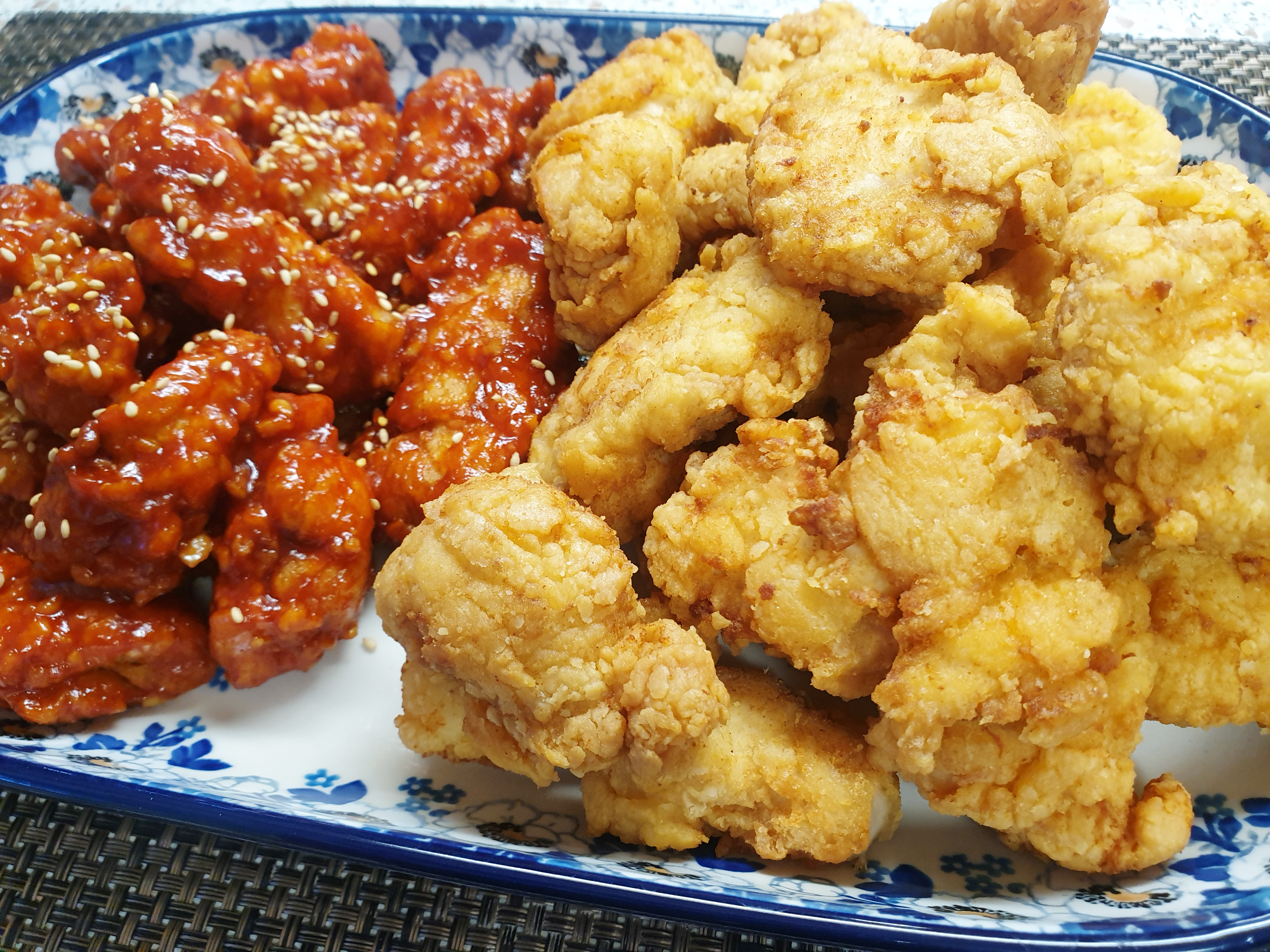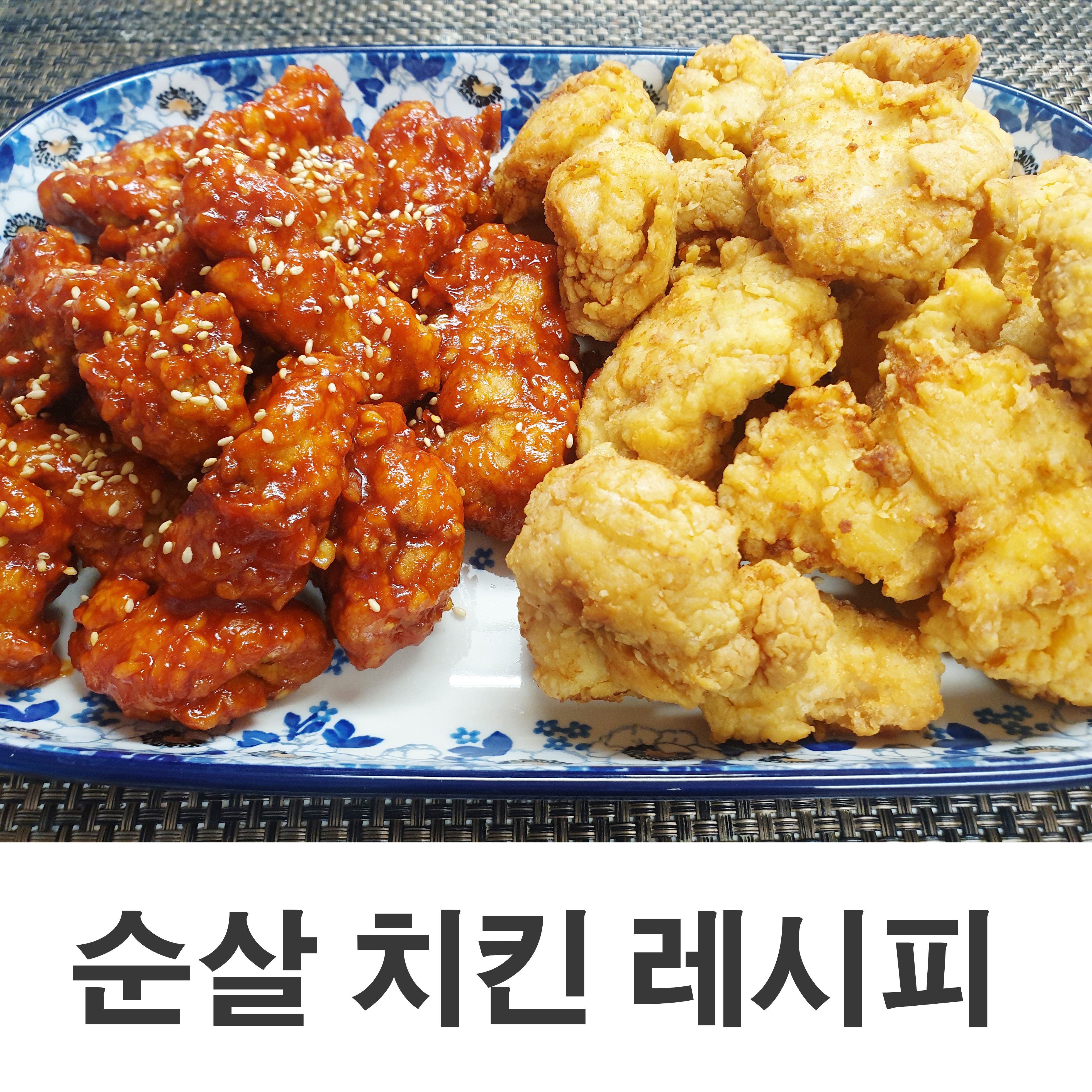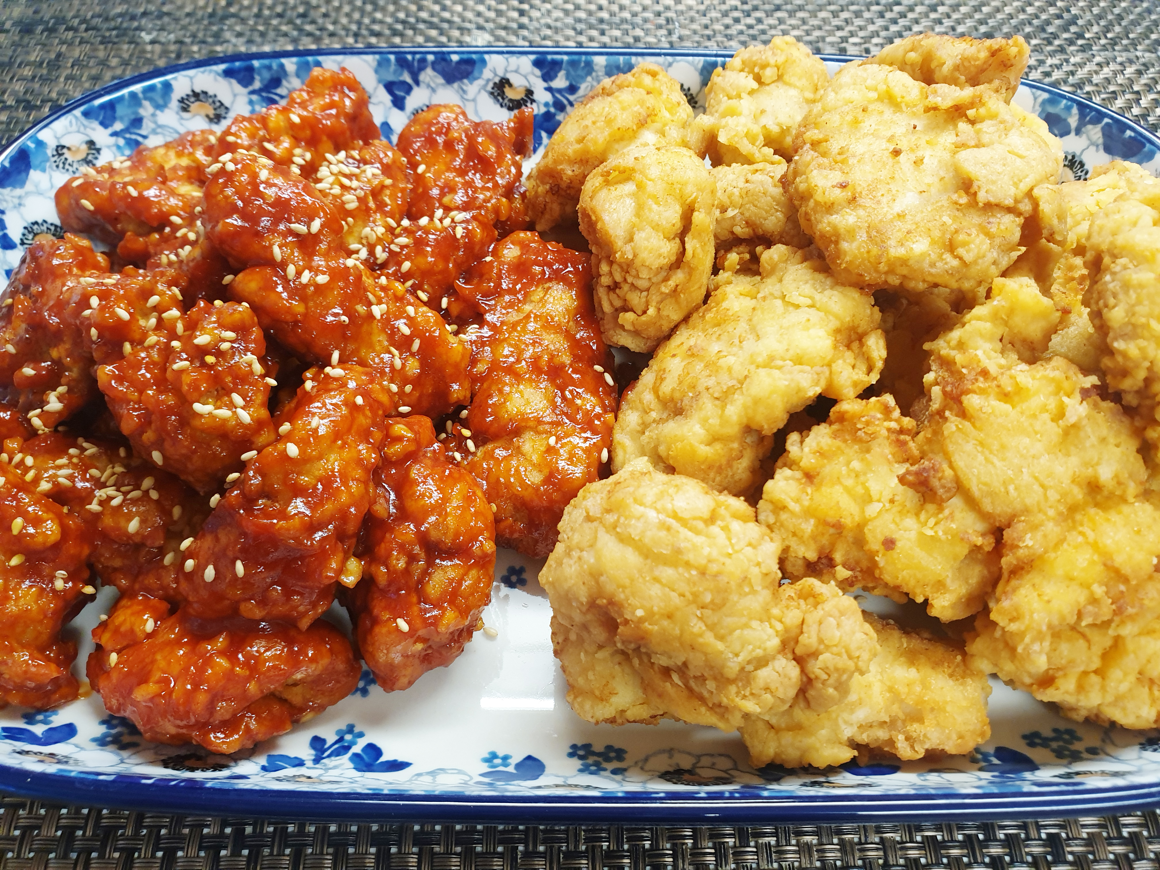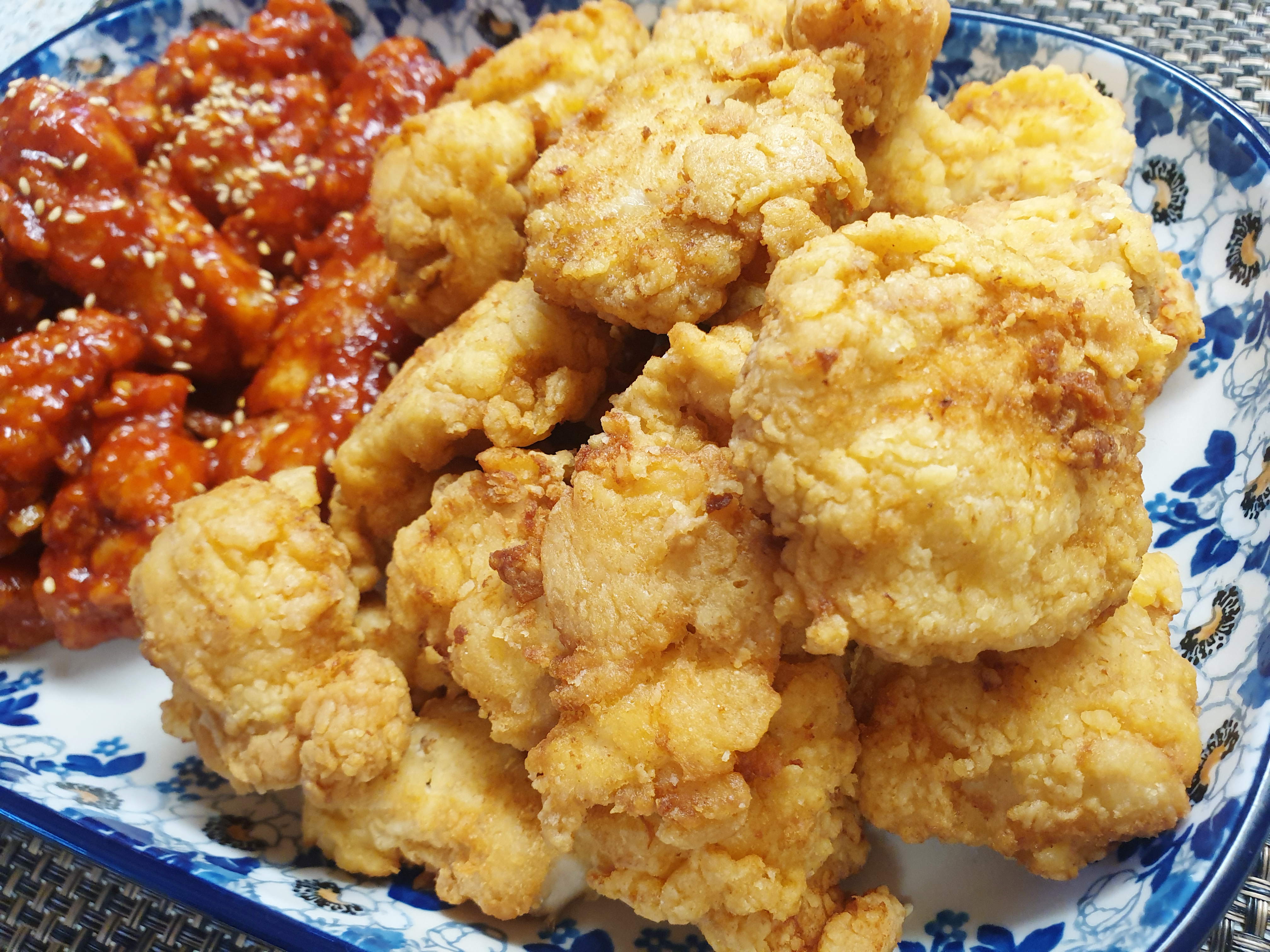 한국 치킨을 너무 사랑하는 남편.. 하지만 집 주변에 한식당이 없어서 가끔 집에서 치킨을 만들어 먹곤 해요~ 처음엔 닭다리만 구매를 해서 튀겨먹었는데 맛은 있지만 잡내를 없애고 튀기기까지 시간이 오래 걸려서 시간도 단축하고 먹기 편하게 이젠 순살로 치킨을 만들고 있습니다~ 집에서 쉽게 후라이드 치킨과 양념치킨 바삭하게 만들기 알려 드릴게요 ^.^