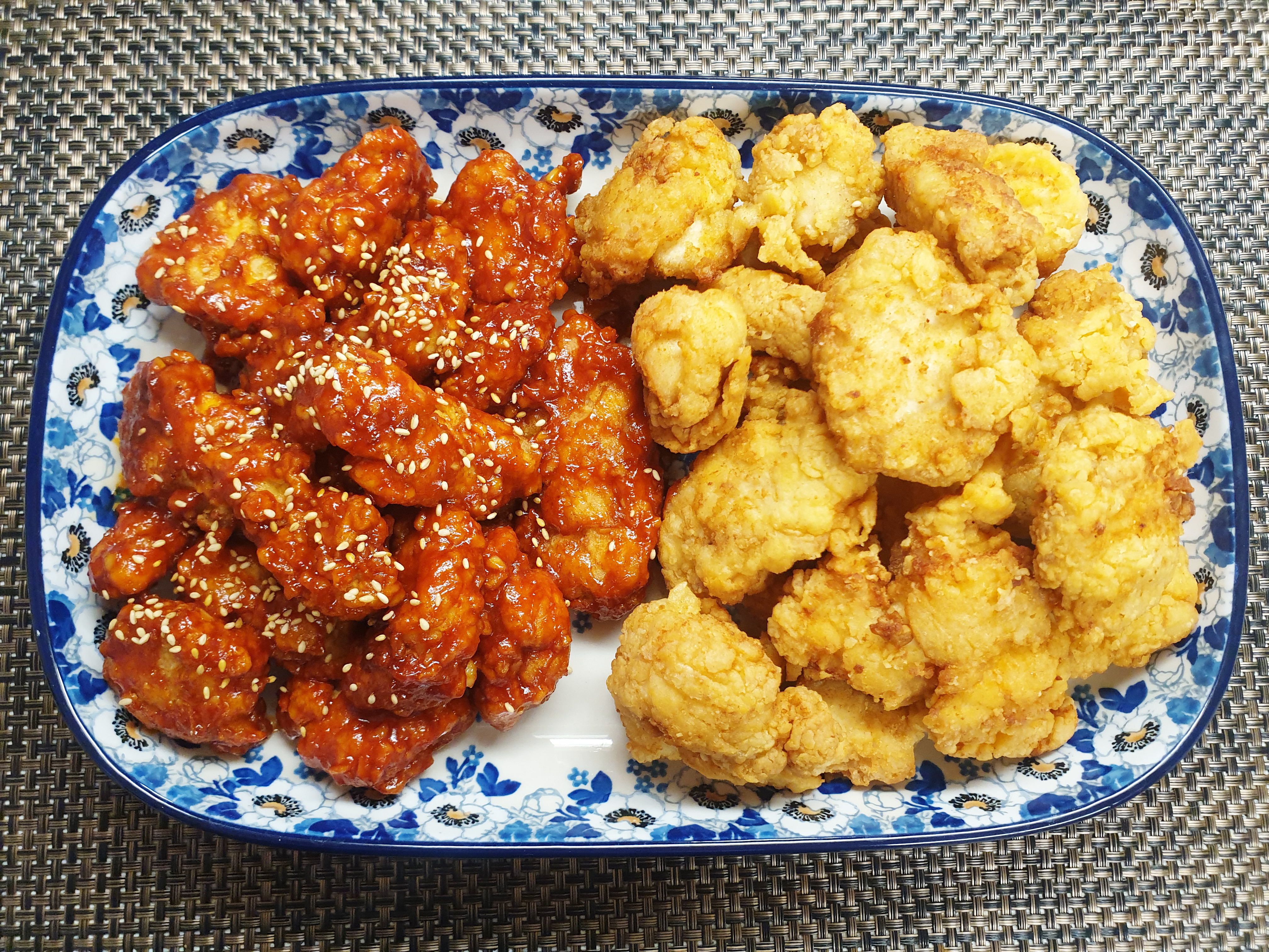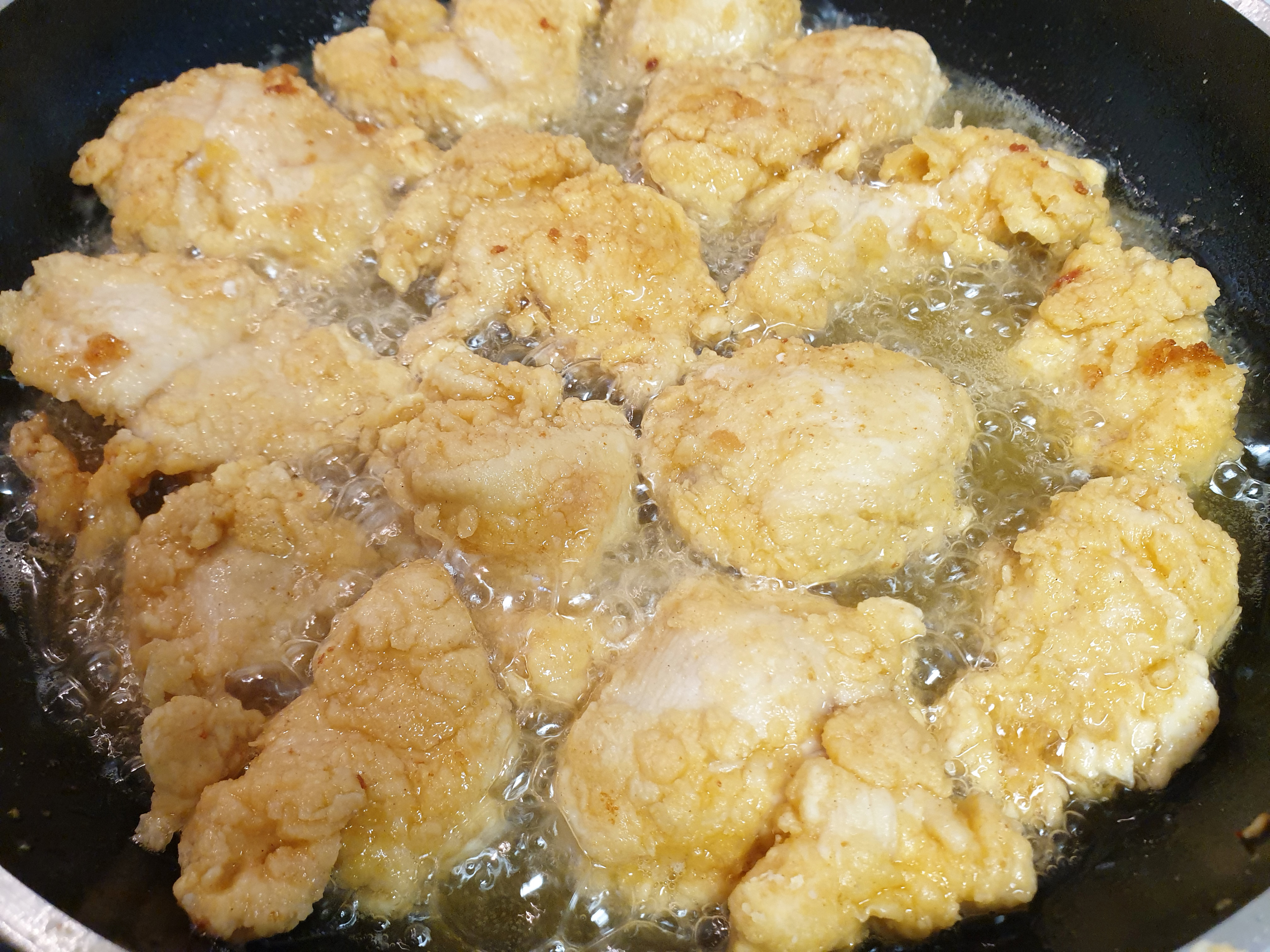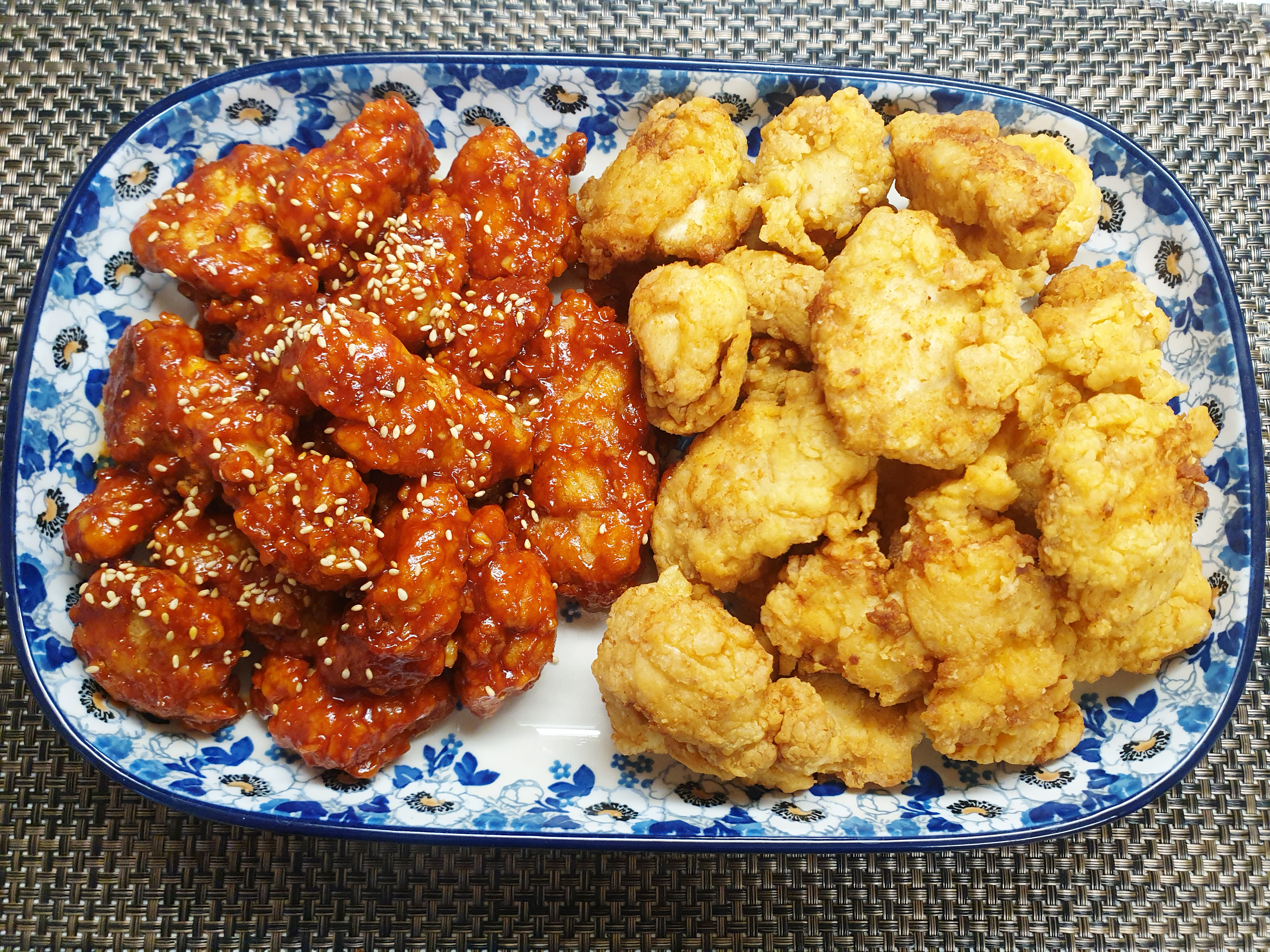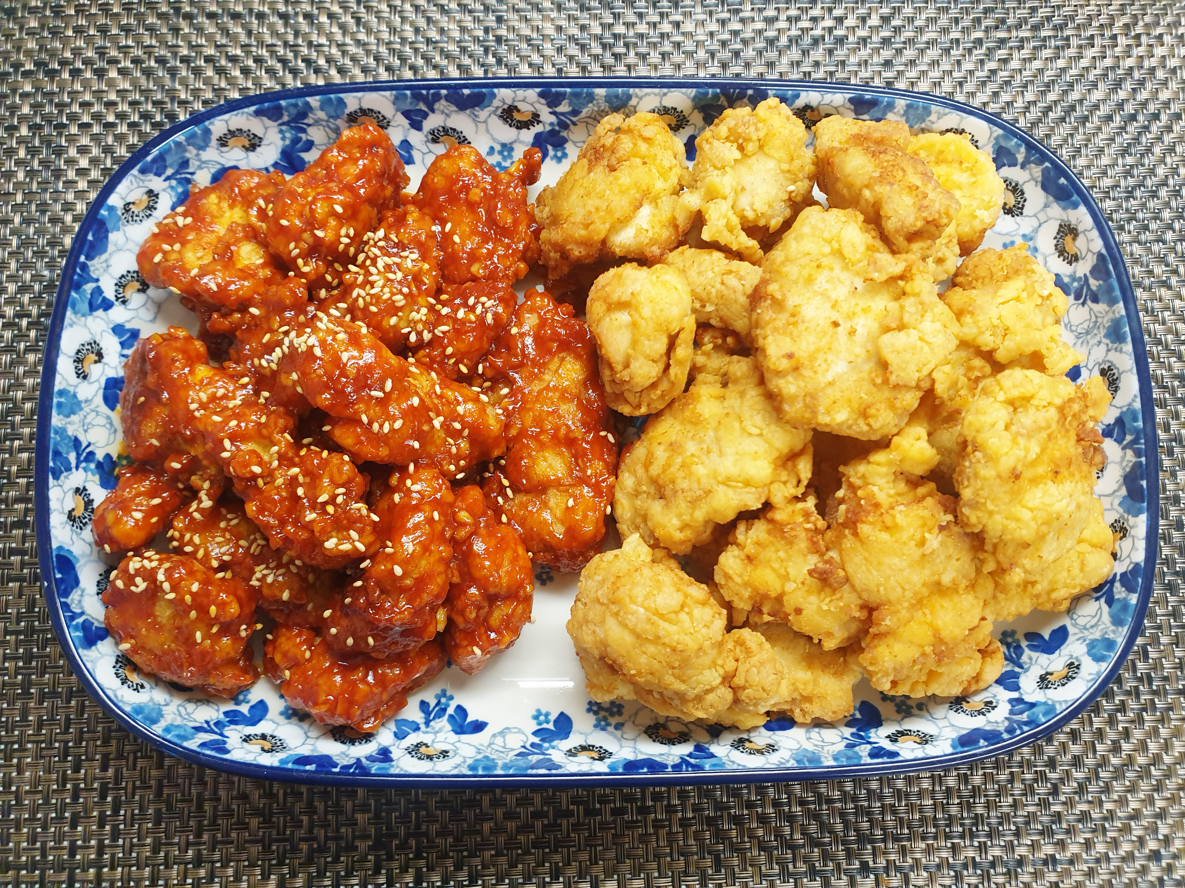 한국 치킨을 너무 사랑하는 남편.. 하지만 집 주변에 한식당이 없어서 가끔 집에서 치킨을 만들어 먹곤 해요~ 처음엔 닭다리만 구매를 해서 튀겨먹었는데 맛은 있지만 잡내를 없애고 튀기기까지 시간이 오래 걸려서 시간도 단축하고 먹기 편하게 이젠 순살로 치킨을 만들고 있습니다~ 집에서 쉽게 후라이드 치킨과 양념치킨 바삭하게 만들기 알려 드릴게요 ^.^
