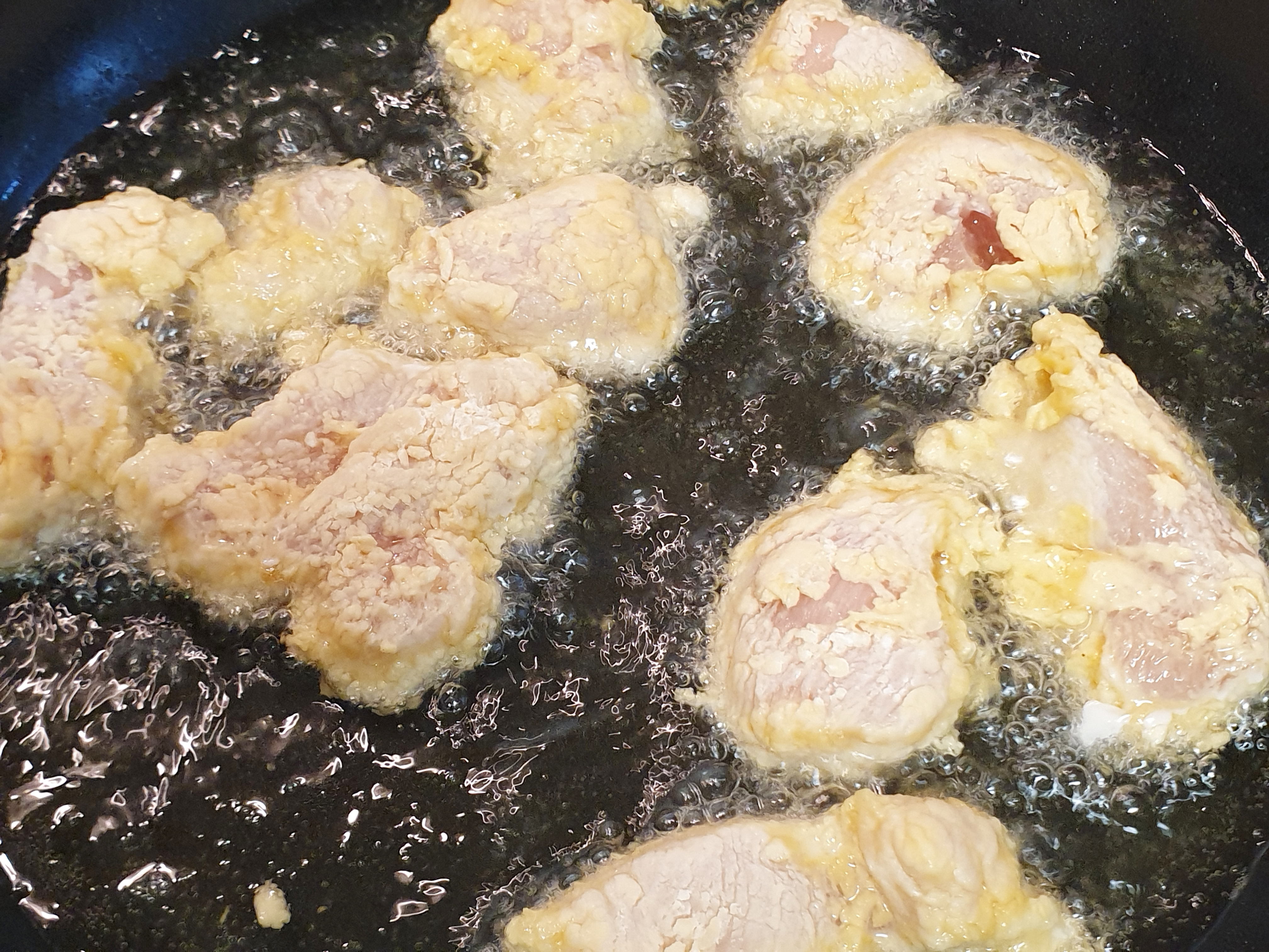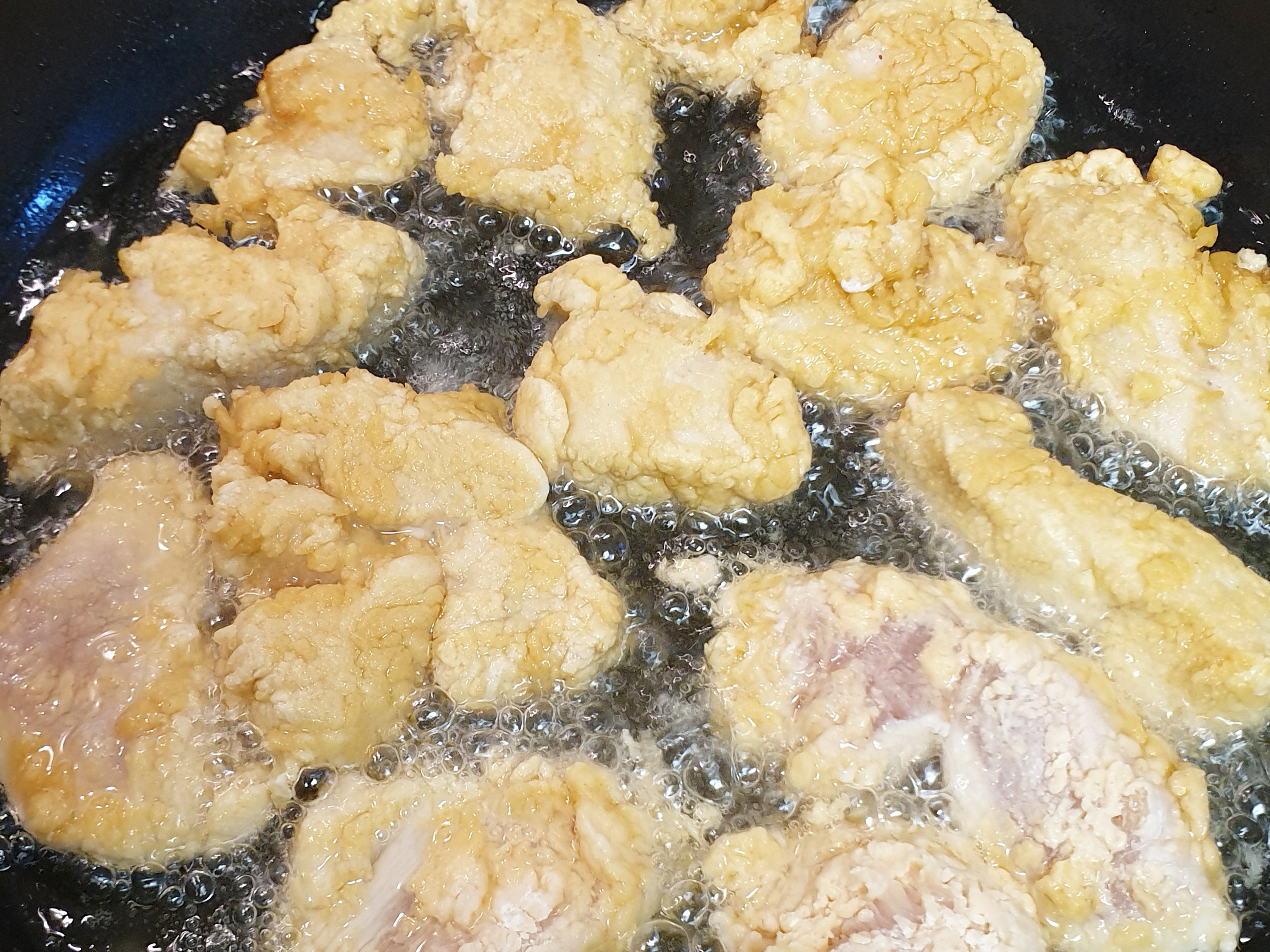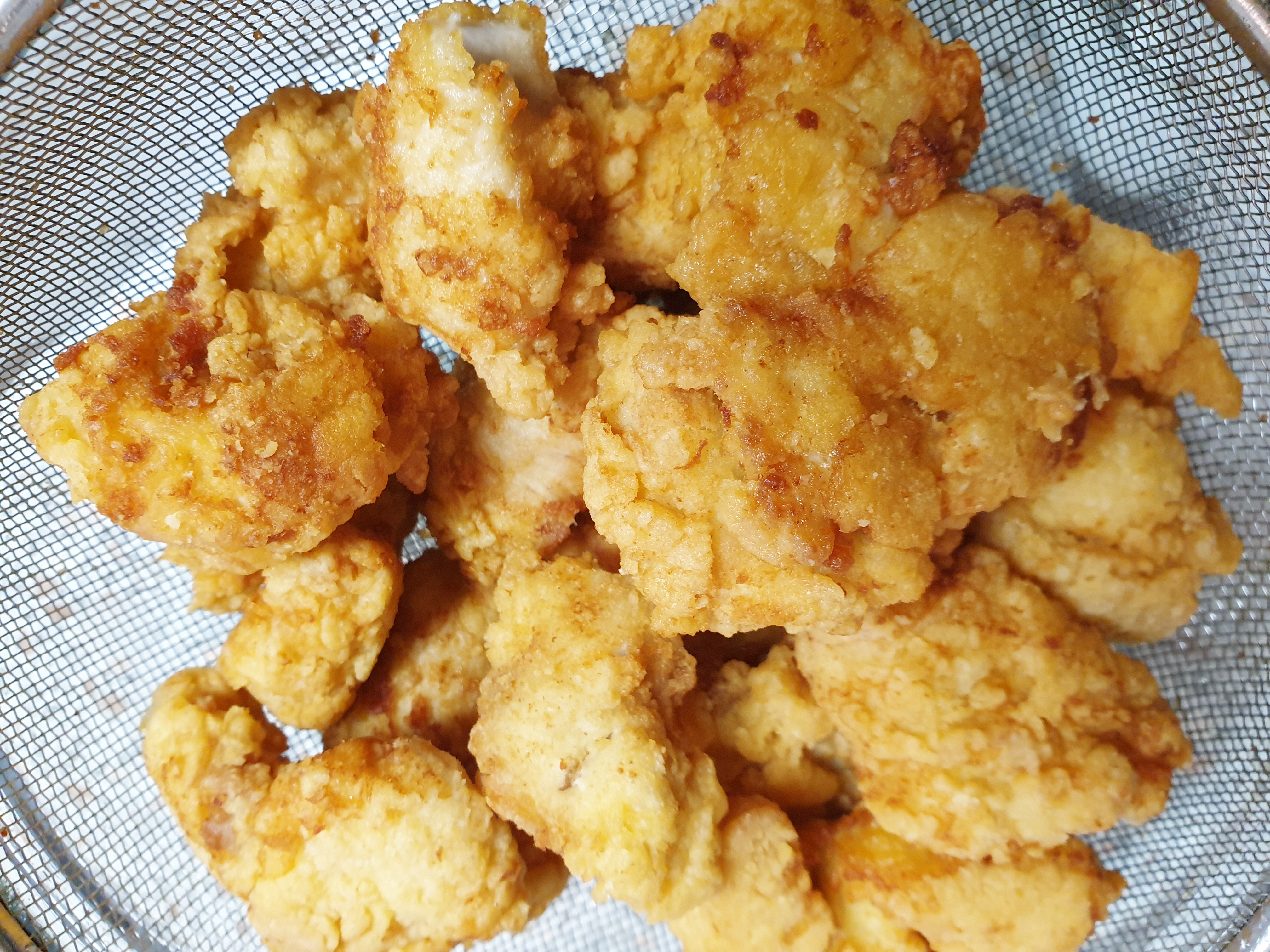 이 방법으로 치킨을 튀기면 바삭바삭한 식감의 치킨을 만들어 먹을 수 있어요~ 사진으로만 봐도 바삭해 보이네요^^