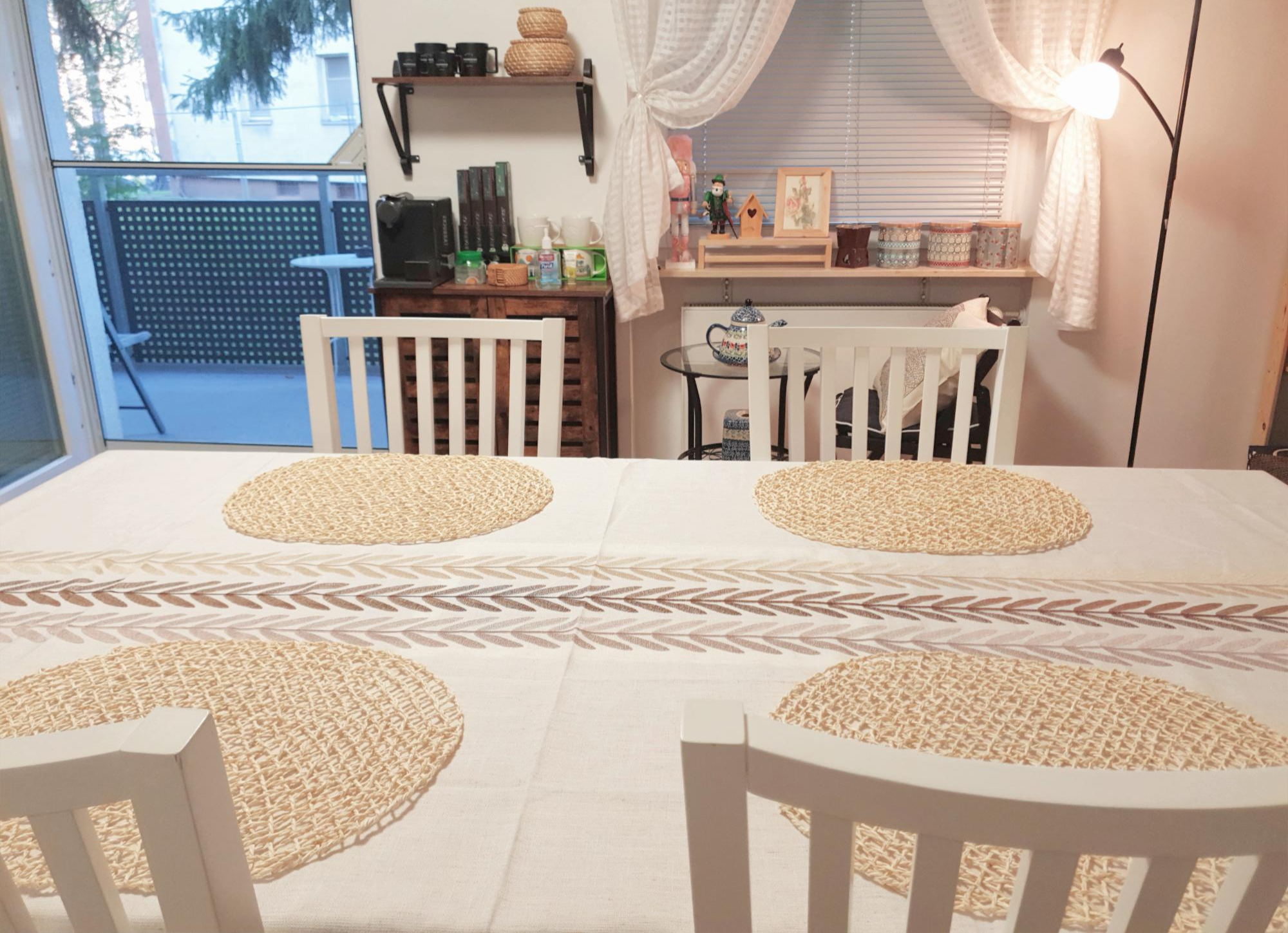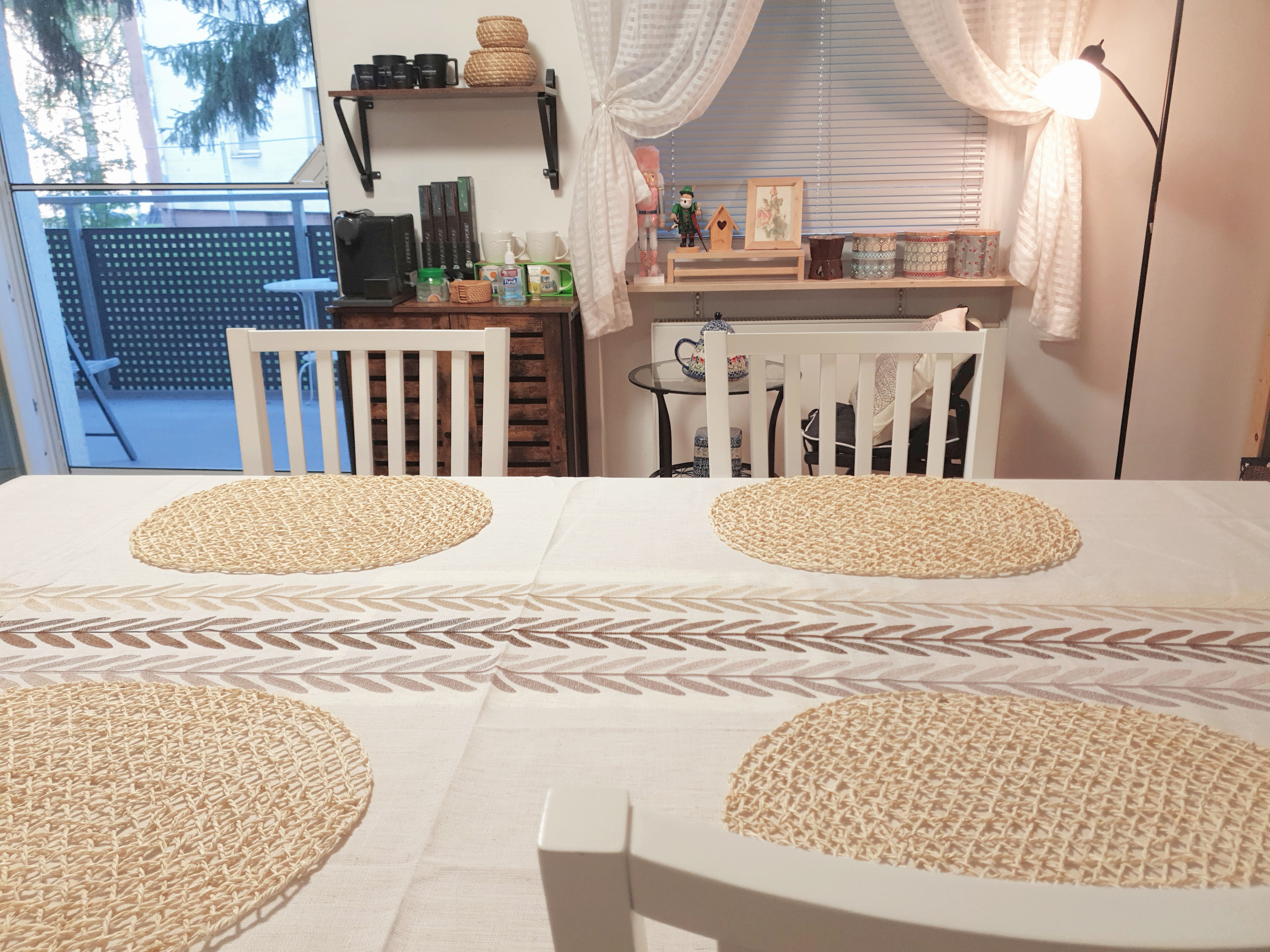 집에 있는 시간이 많아지면서 대충 꾸미고 살았던 집이 하나둘씩 마음에 안 들기 시작하더라고요~ 그래서 인테리어에 소질은 없지만 집에 있을 때 항상 힐링하는 느낌을 받고 싶어 집안 곳곳을 하나둘씩 바꿔 나가고 있어요! 이번엔 주방 분위기와 어울리지 않는 식탁보를 치우고 인테리어에도 좋을만한 린넨 식탁보를 구매해 주방 분위기를 전환해 봤습니다!