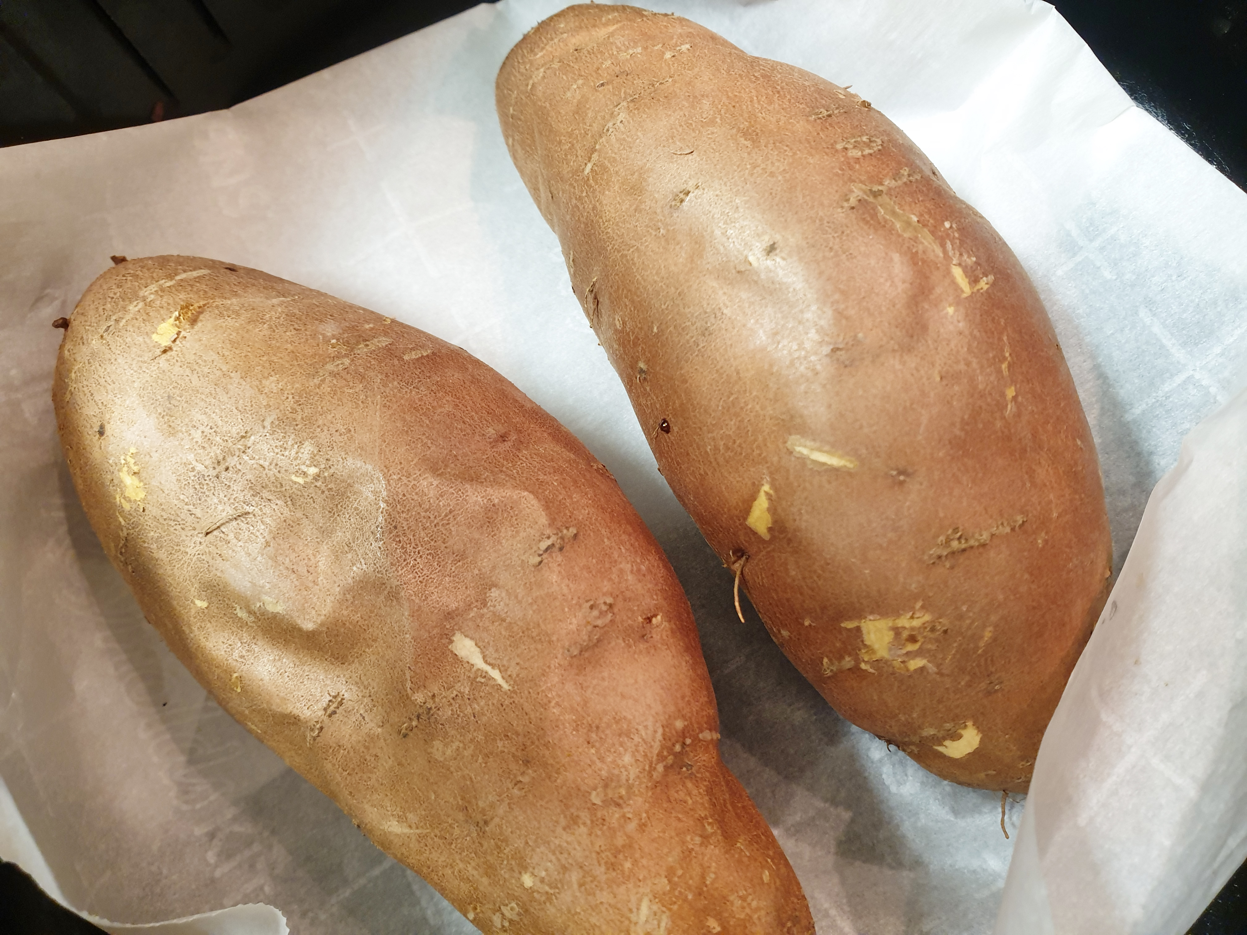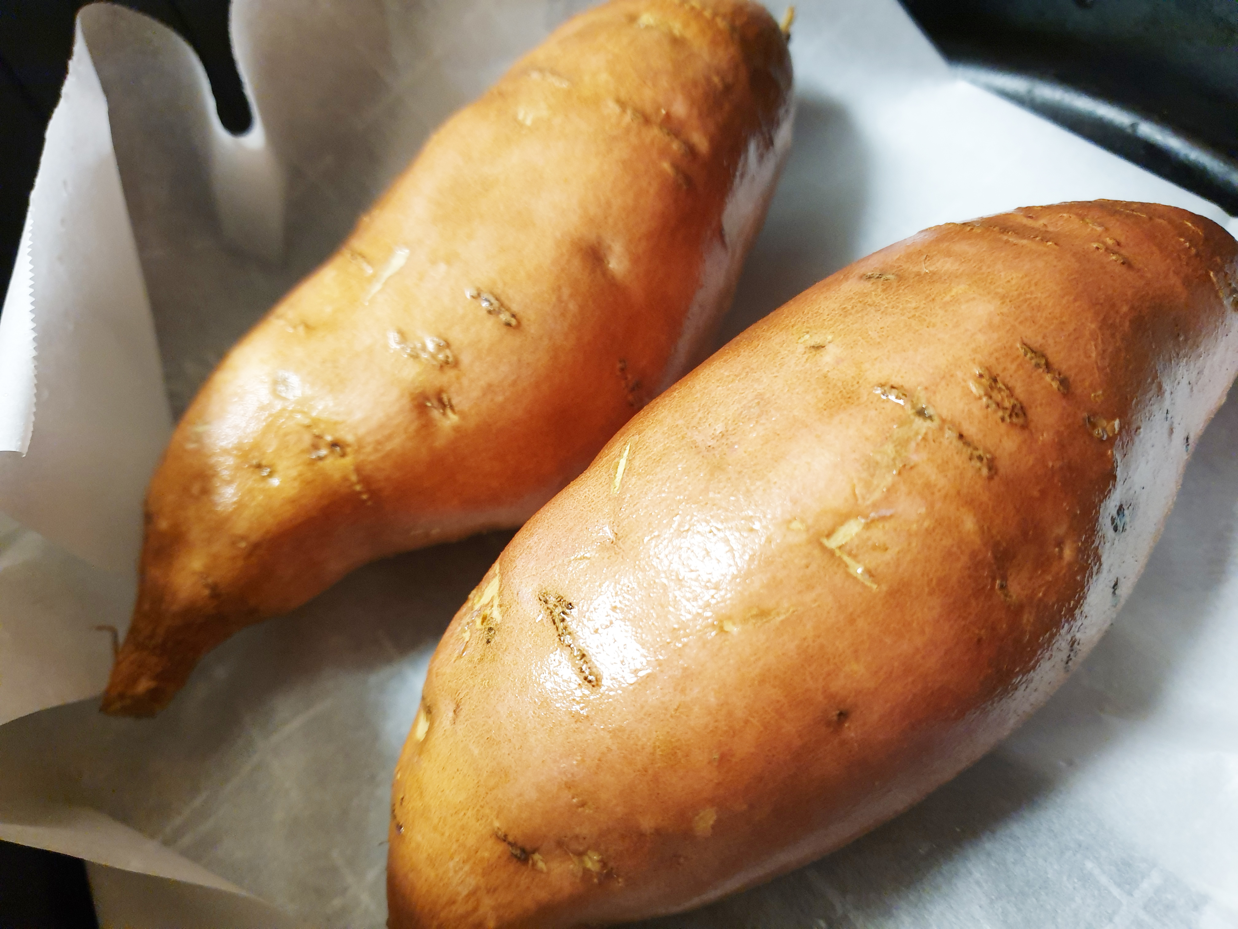 예전엔 군고구마를 너무 먹고싶어서 약한 불에 둔 뒤 프라이팬에 고구마를 굴려 가며 구워 먹었었는데 에어프라이어가 생기고 나선 항상 고구마는 에어프라이어에 구워 먹어요~