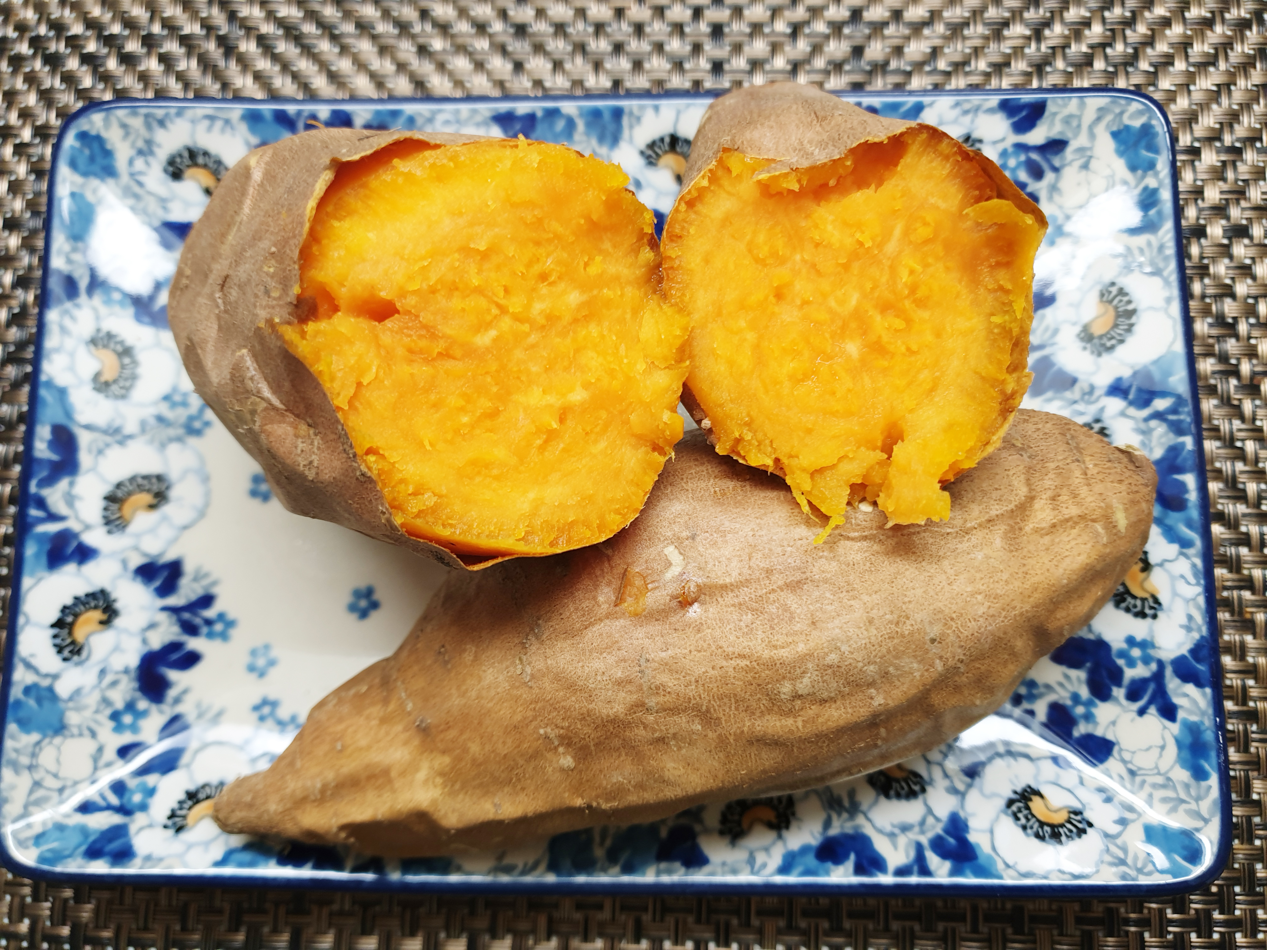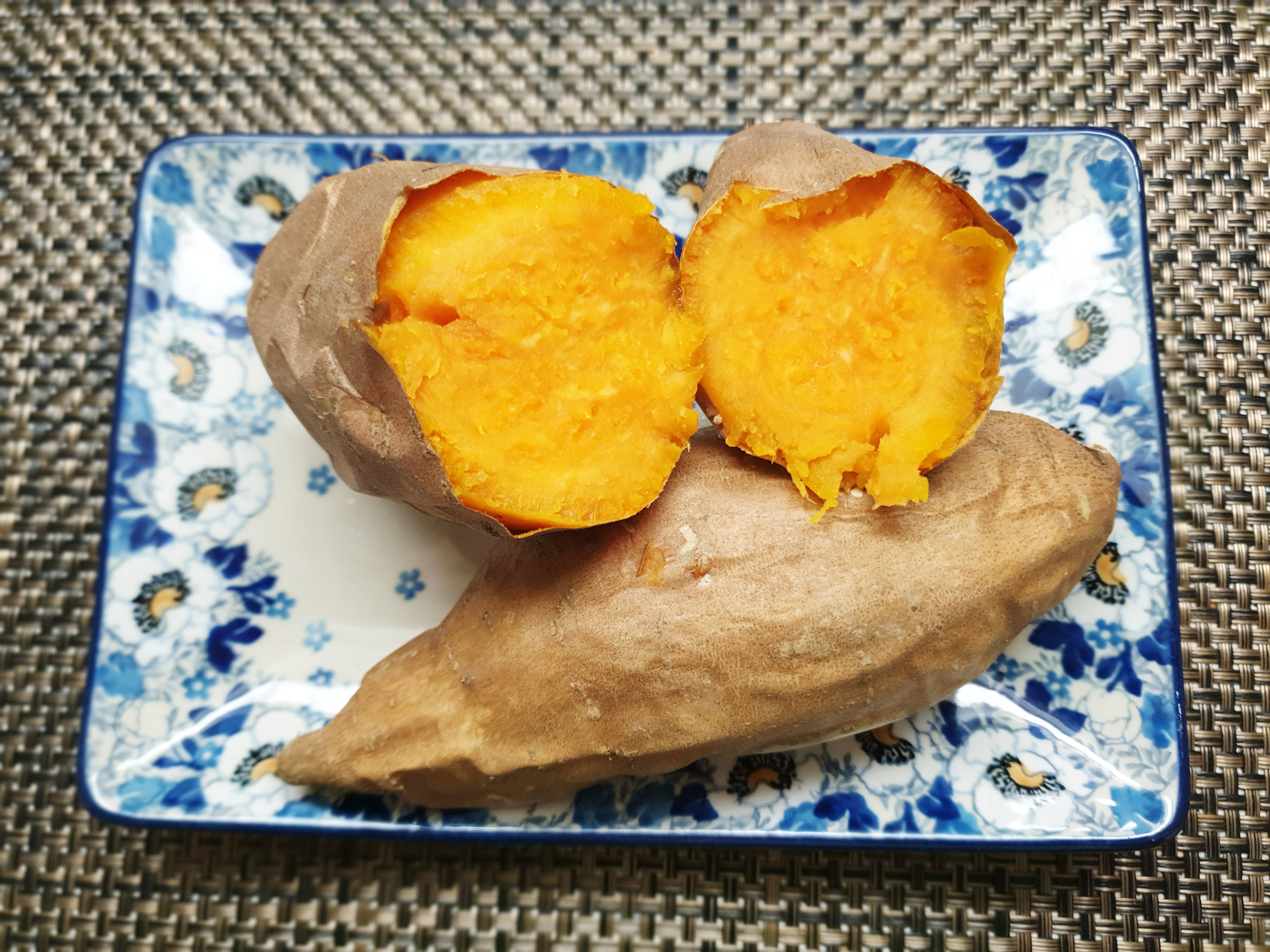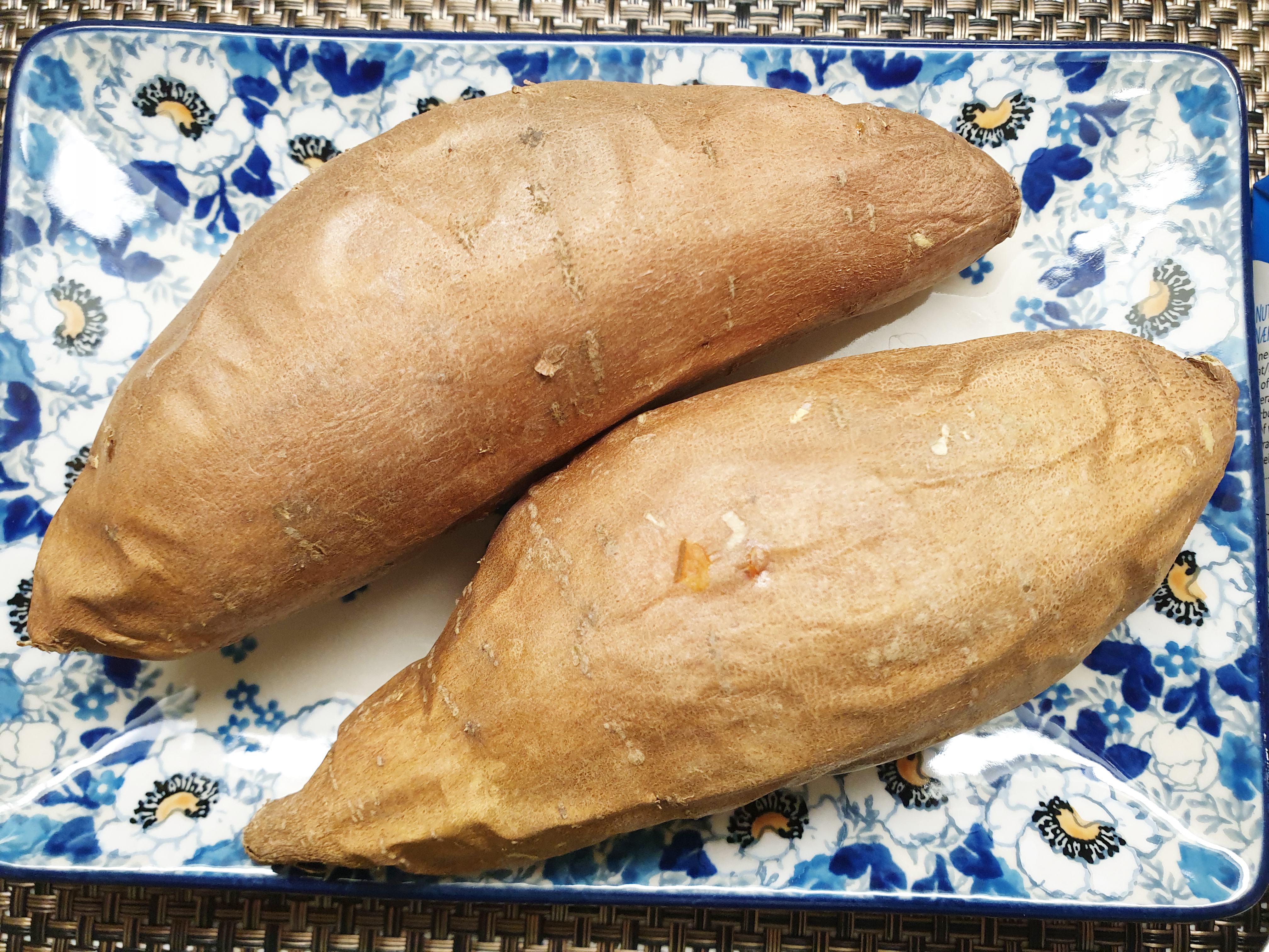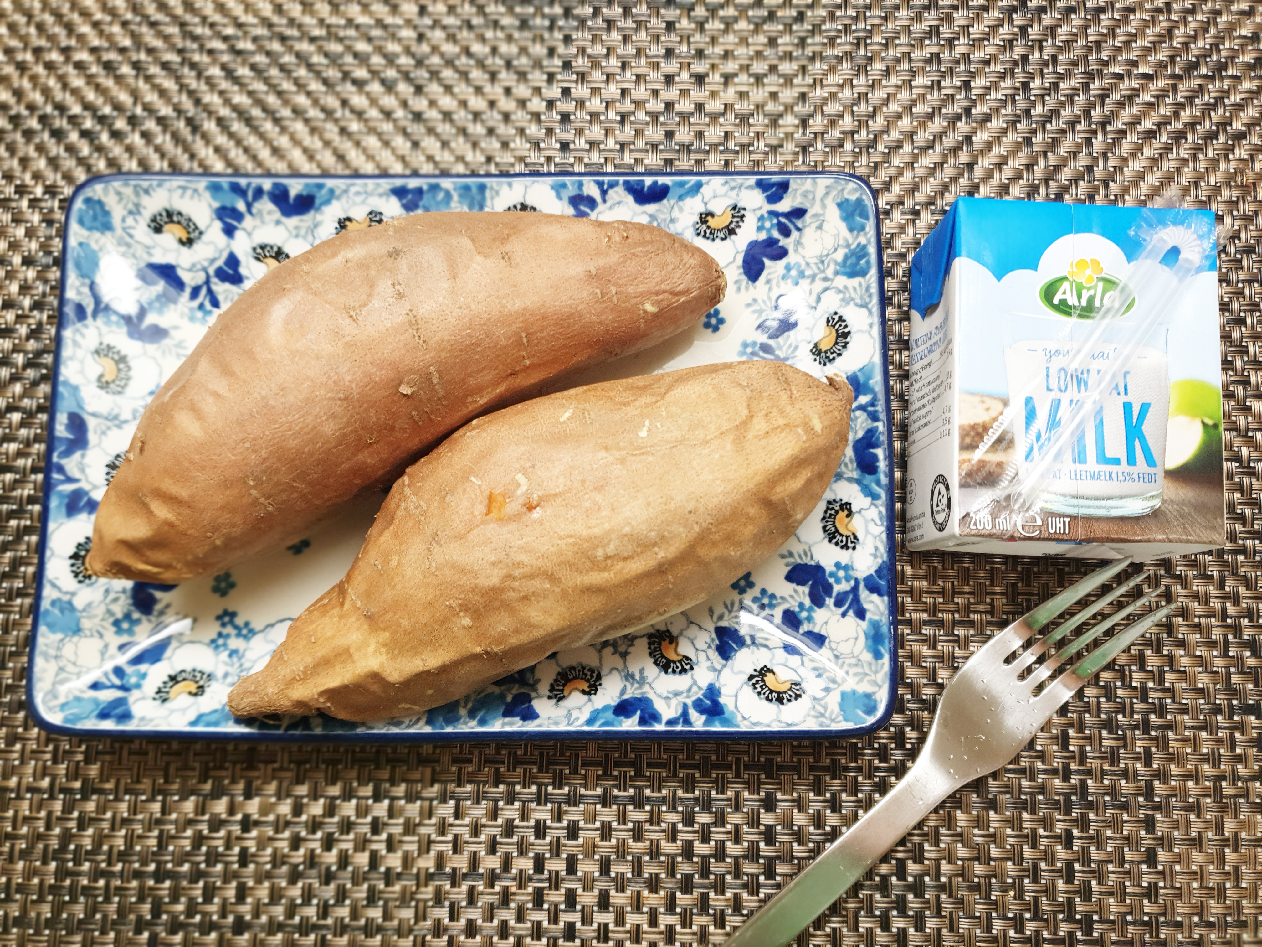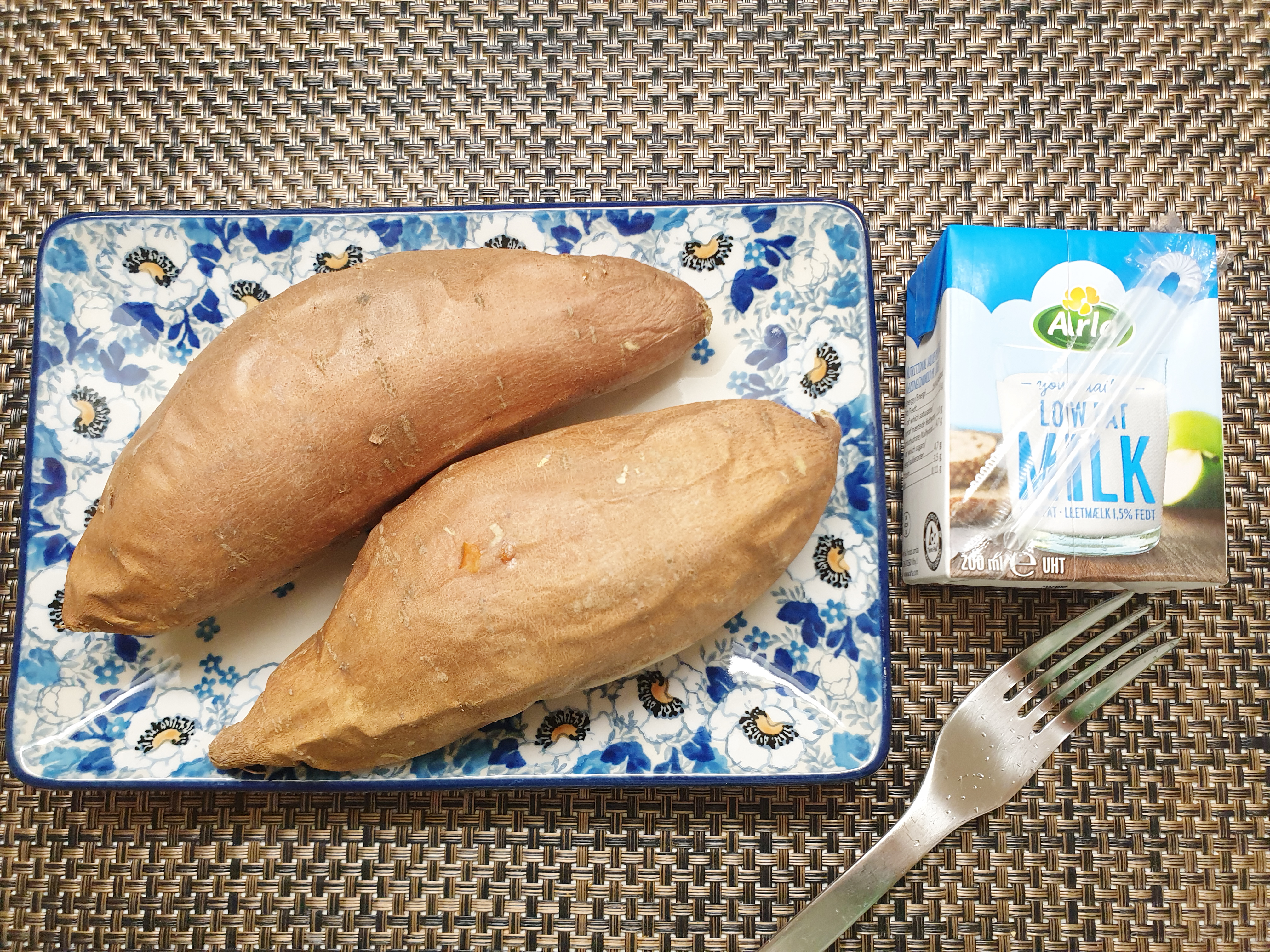 잘 구워진 고구마는 우유와 함께 먹으면 고구마 케이크를 먹는 맛 >. <