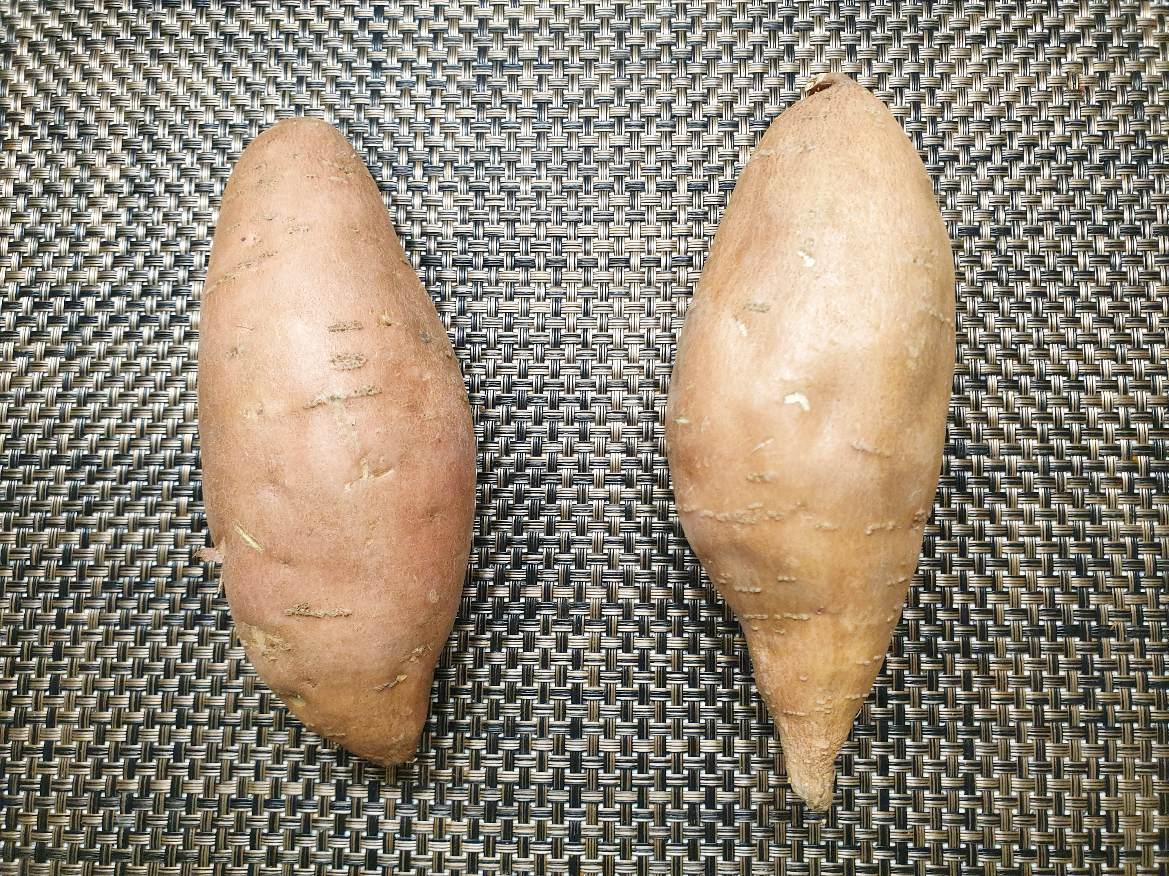 전 중간사이즈 고구마 2개를 준비했어요~ 고구마를 흐르는 물에 잘 씻어줍니다.