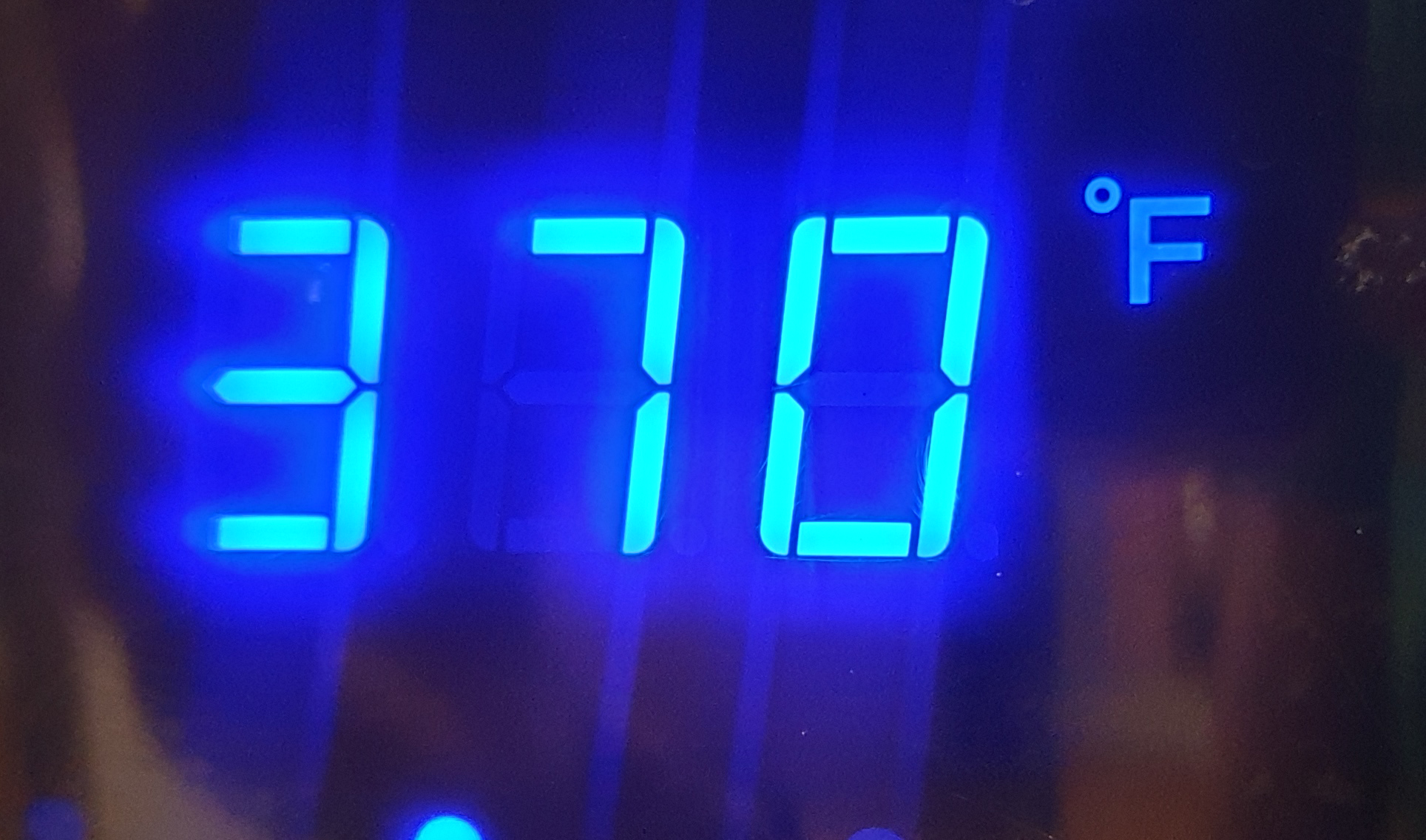 그다음 에어프라이어에 고구마를 넣고 화씨일 경우 370℉ 섭씨일 경우 190 ℃로 맞추고 고구마 크기에 따라고 20~25분간 구워 줍니다.