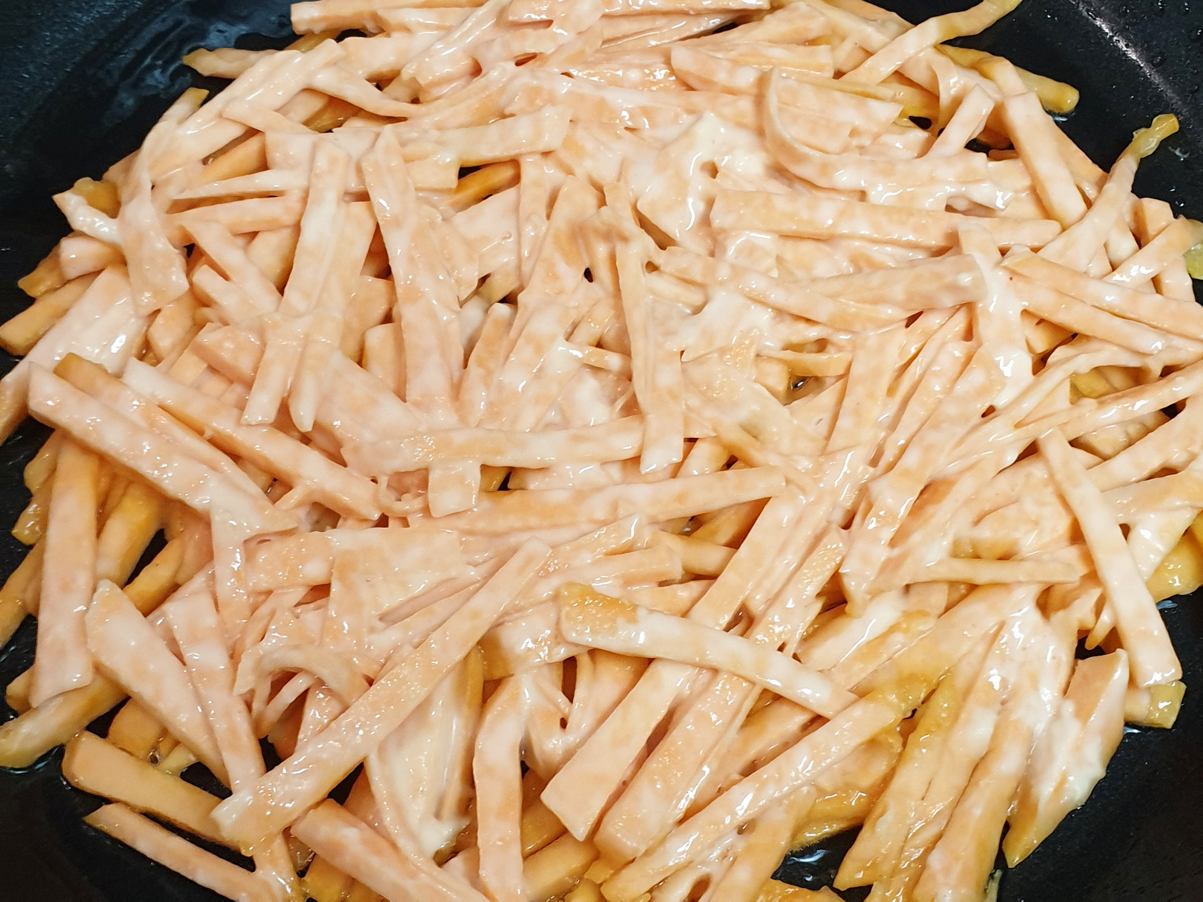 이렇게 감자튀김처럼 바삭하고 달콤한 고구마채전이 완성됐어요!