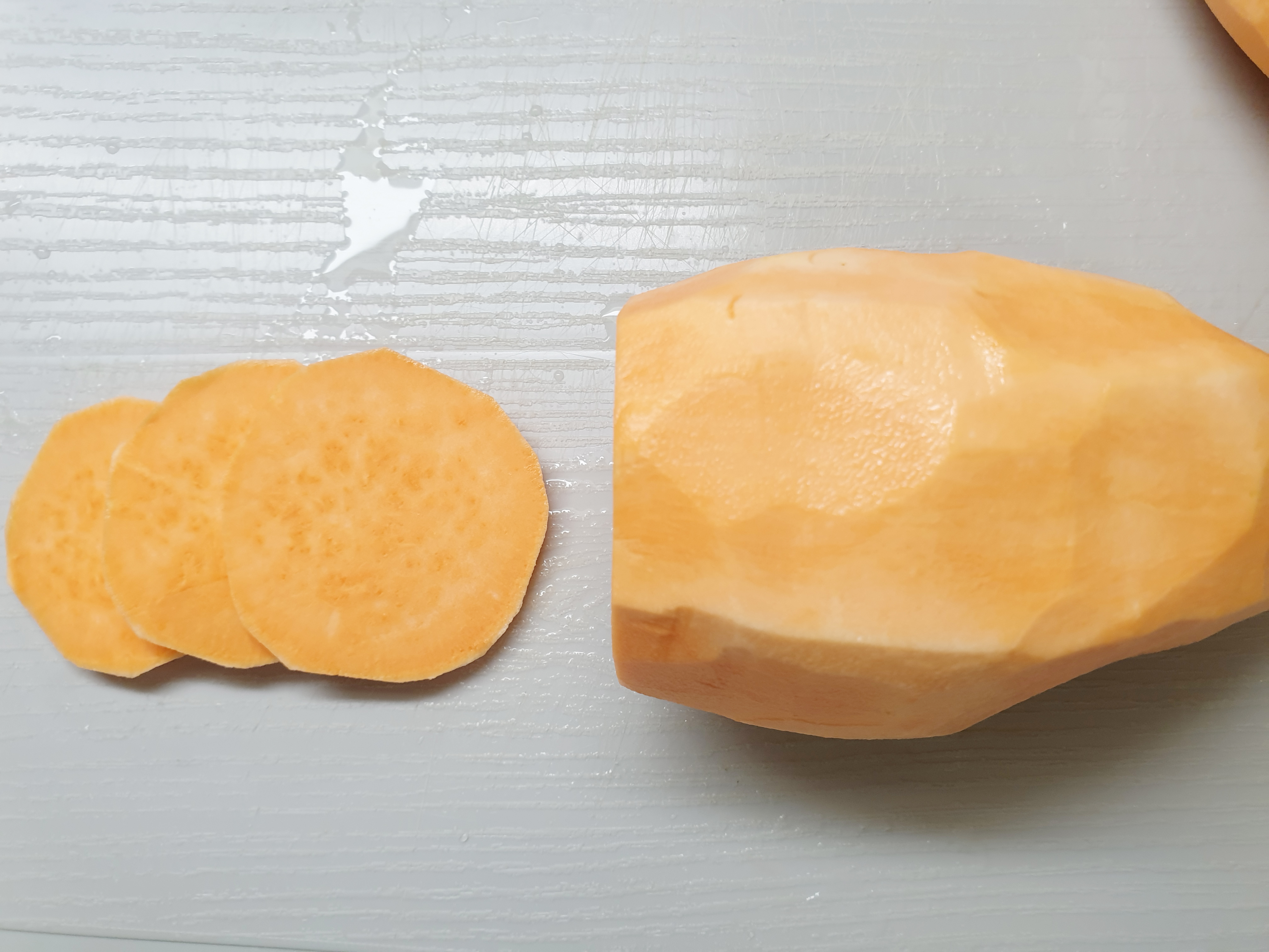 1. 먼저 감자칼을 이용해 고구마 2개의 껍질을 벗겨주고 흐르는 물에 깨끗하게 씻어주세요!