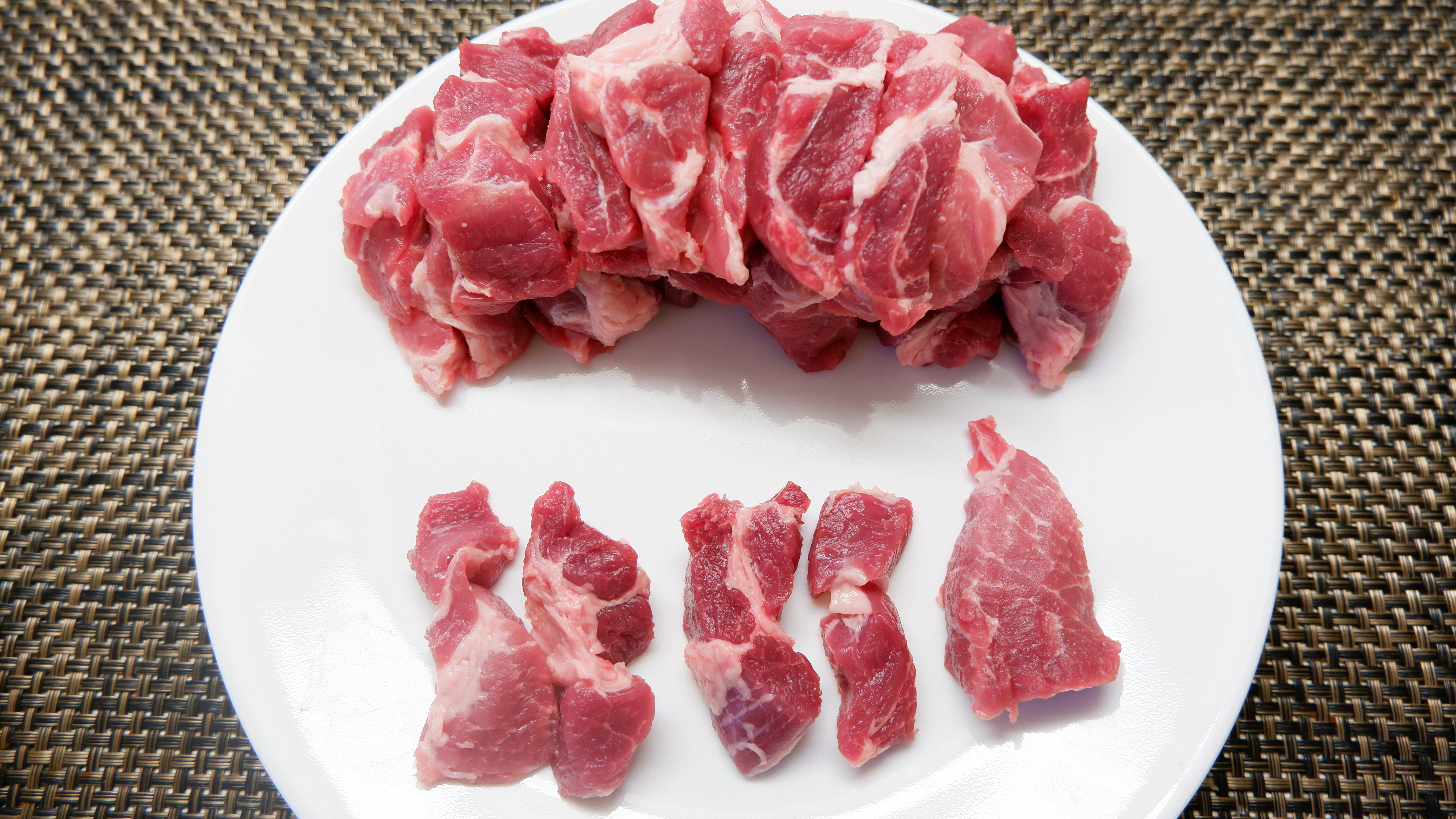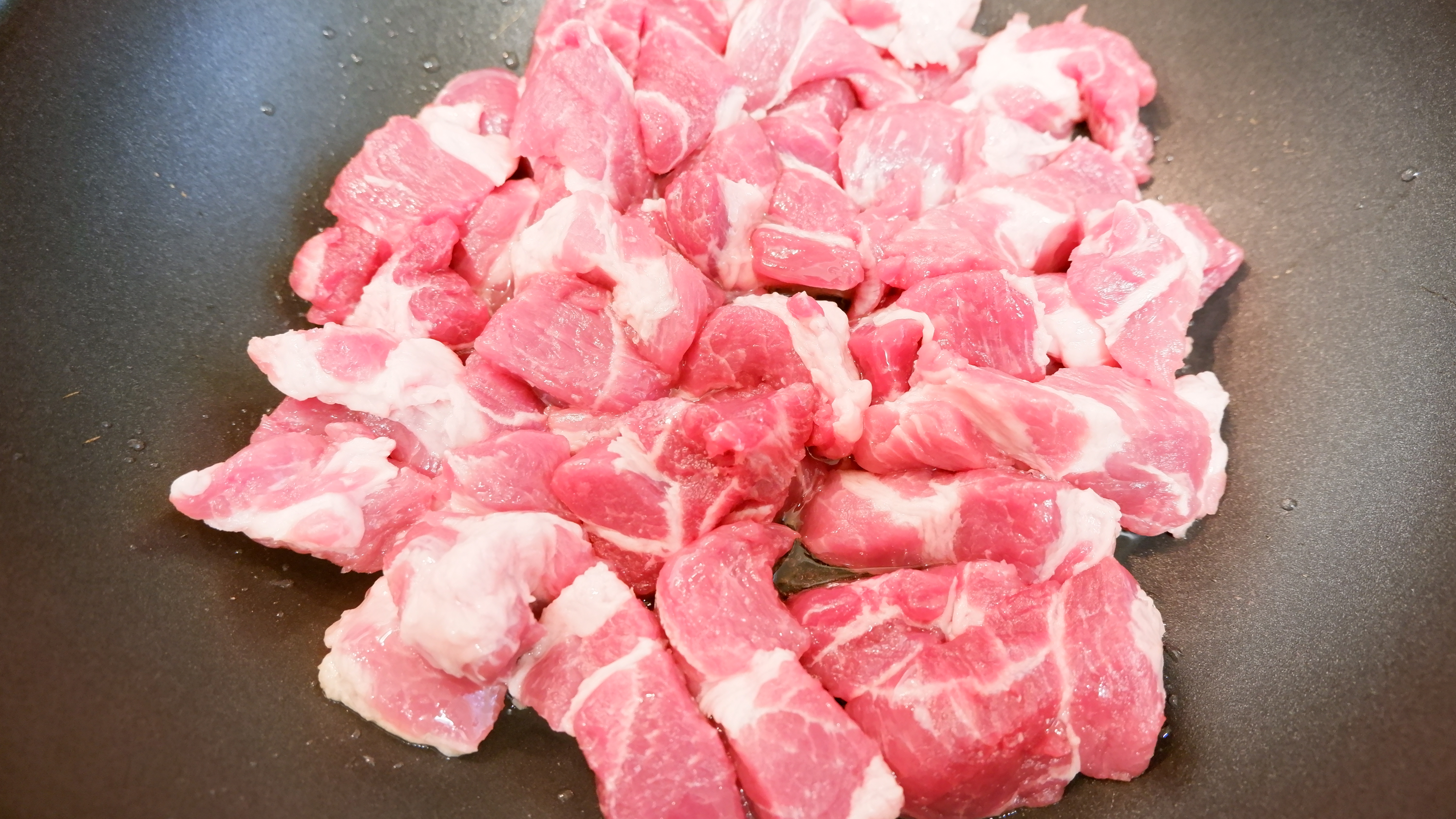 돼지고기는 원하는 부위로 준비를 해주세요(삼겹살 , 목살 어깨살 등등)~ 지방이 없는 부위보다는 지방이 섞여있는 부위를 사용하는 게 훨씬 식감이 부드러워요!