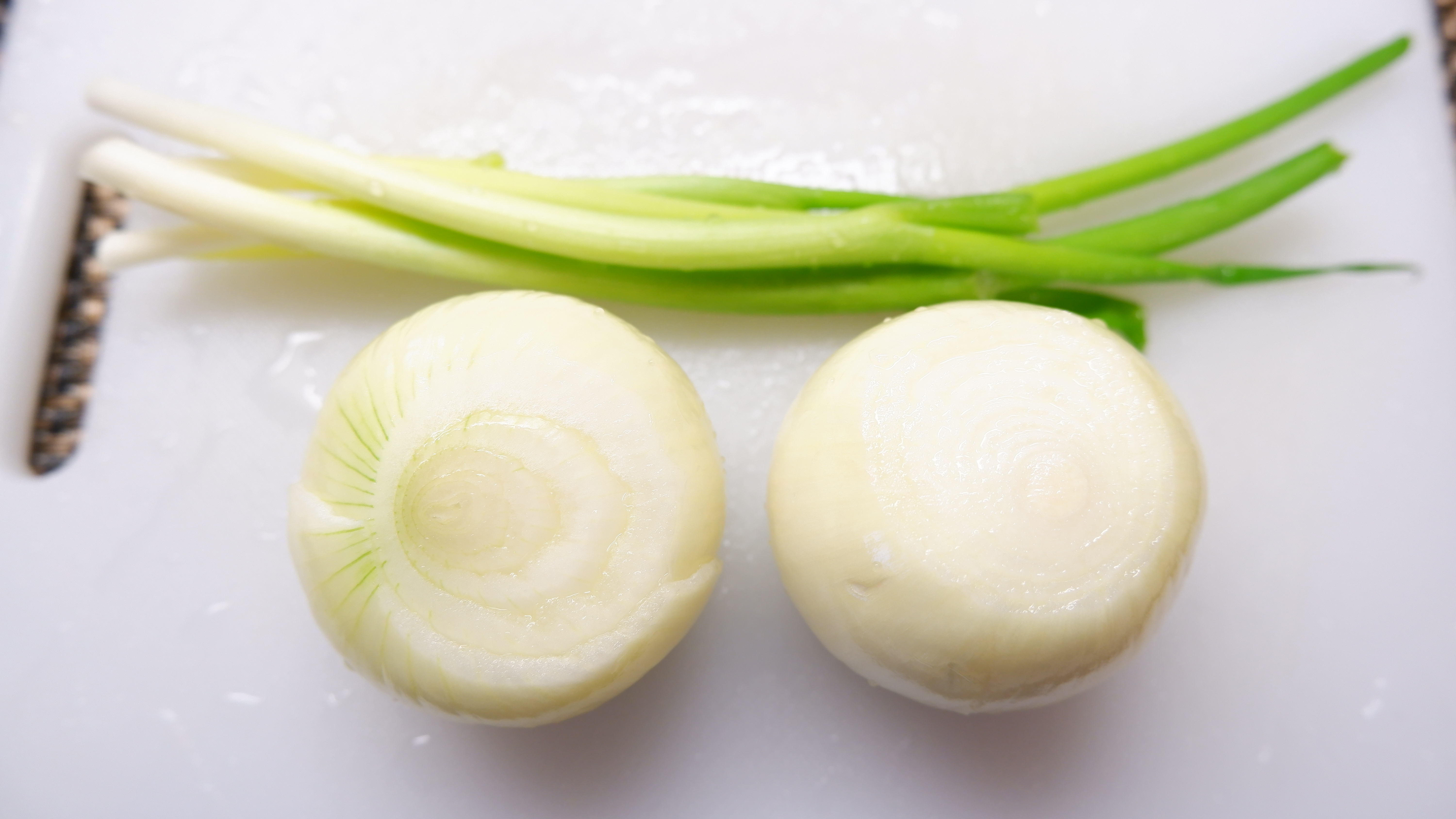 2. 대파(1대)와 양파(큰사이즈 1개)를 손질하고 대파는 큼지막하게 썰어 주고 양파는 채를 썰어 줍니다. (전 파가 얇은 것 밖에 없어서 여러 개 준비를 했고 양파도 작은 사이즈여서 2개를 준비했어요! )