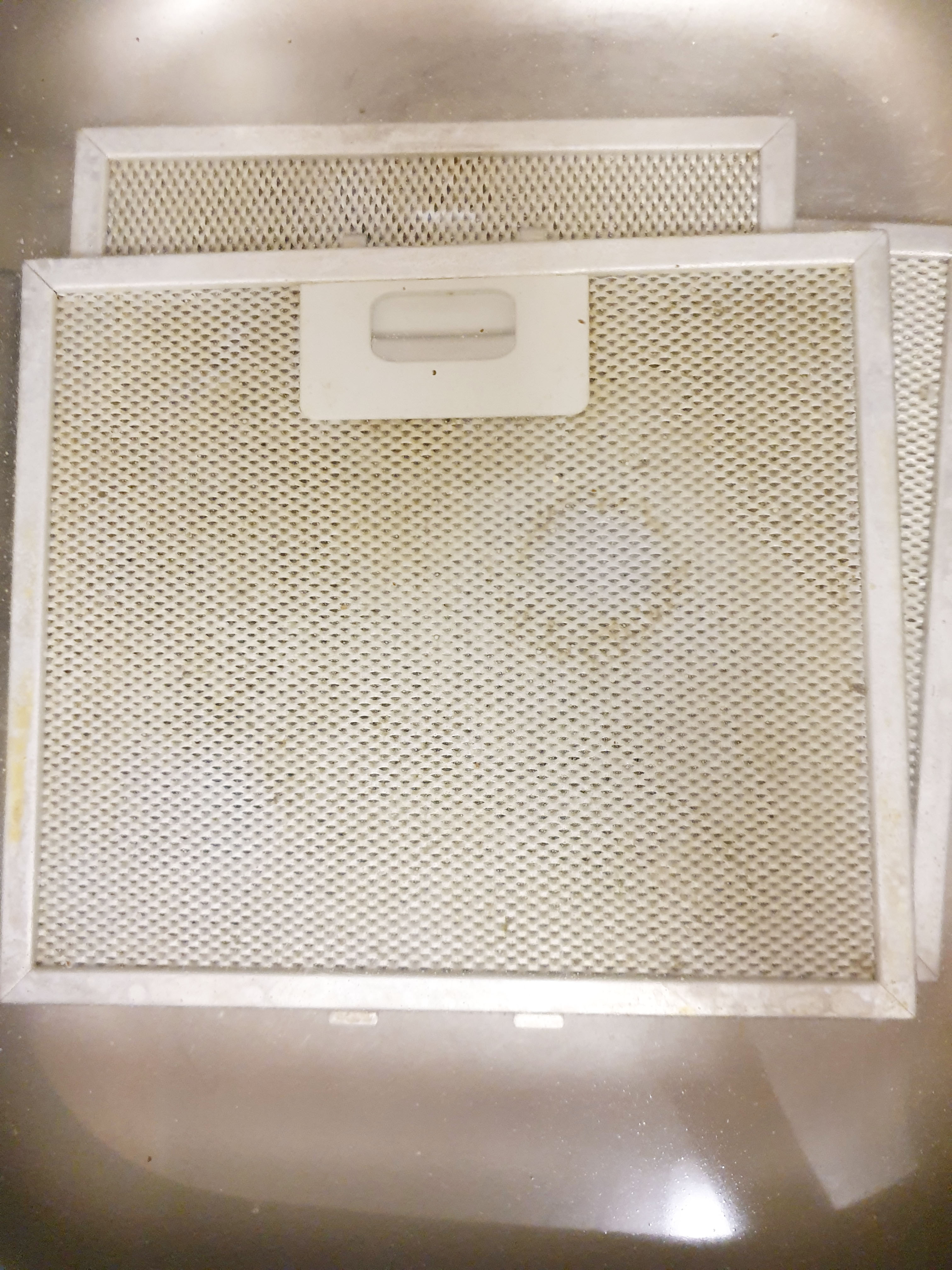 먼저 후드 필터 기름때 청소를 하기 위해서 후드 필터를 제거해줍니다. (후드 조명?이 노래서 이렇게 까지 기름때가 잔뜩 낀 줄 몰랐는데.. 민망할 정도로 너무 더럽네요 >. < )