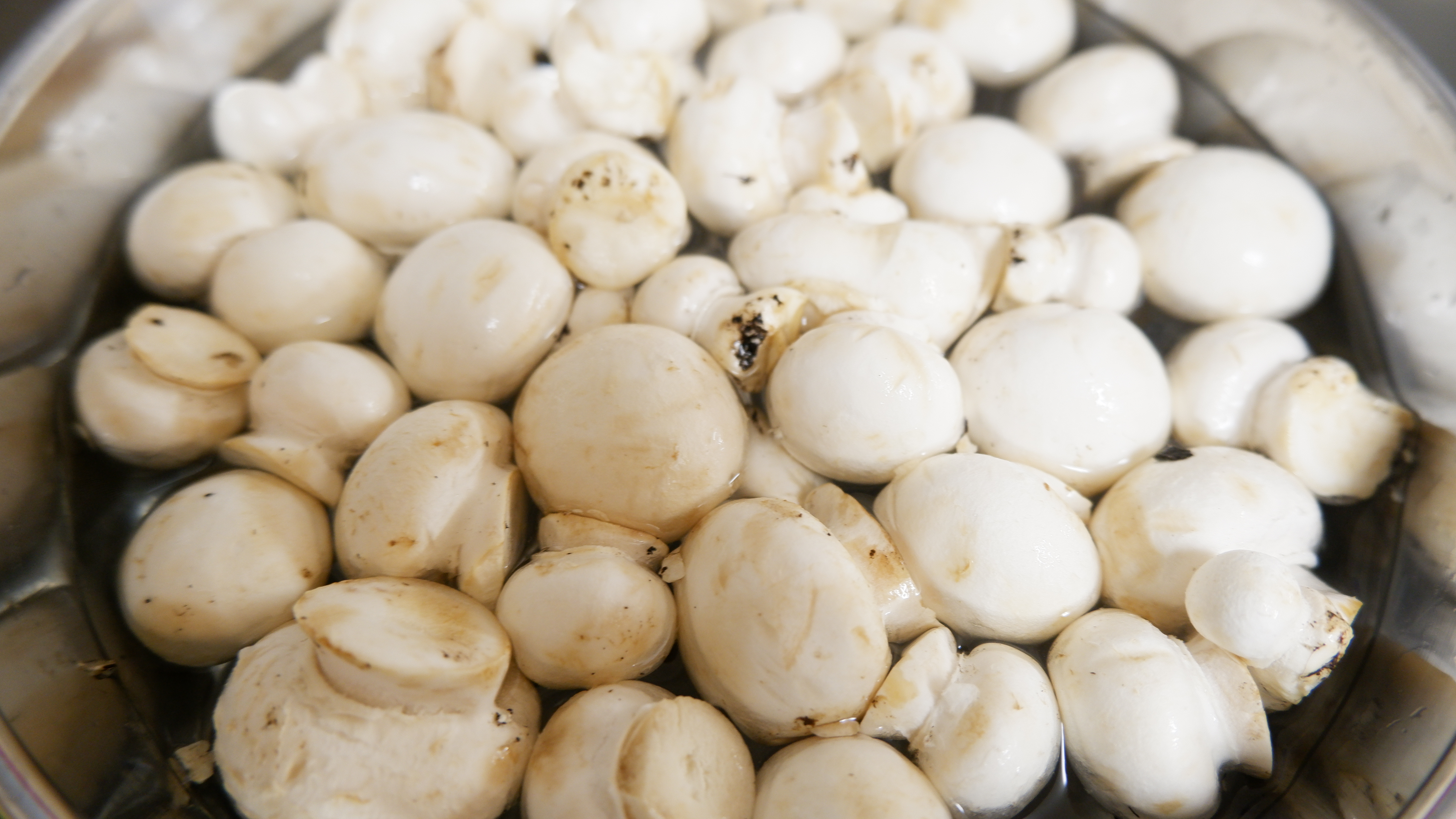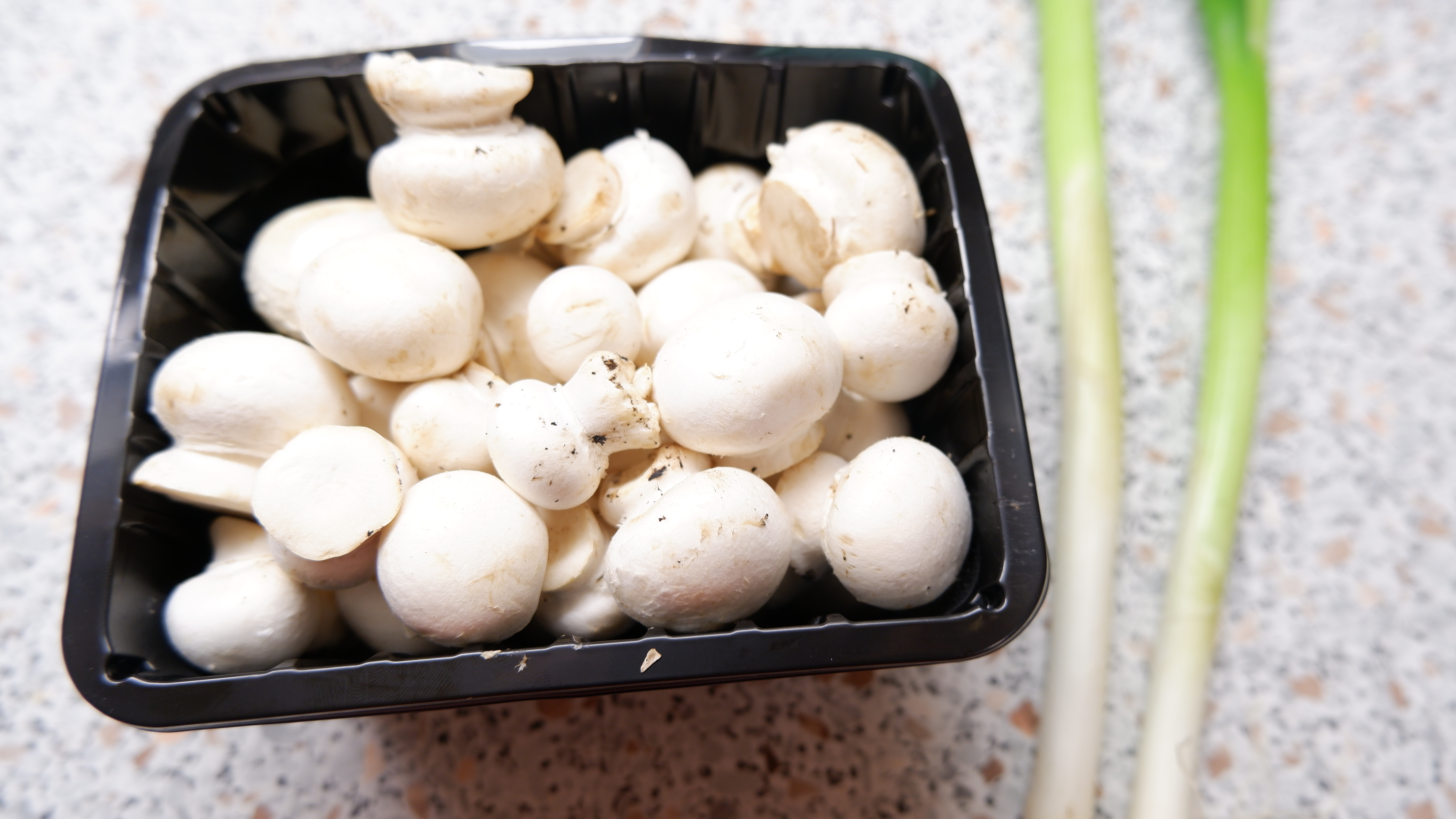 1. 먼저 양송이버섯을 손질해주세요! 전 양송이버섯에 흙이 많이 붙어있어서 흐르는 물에 씻어주고 물기를 쫙 빼줬습니다.