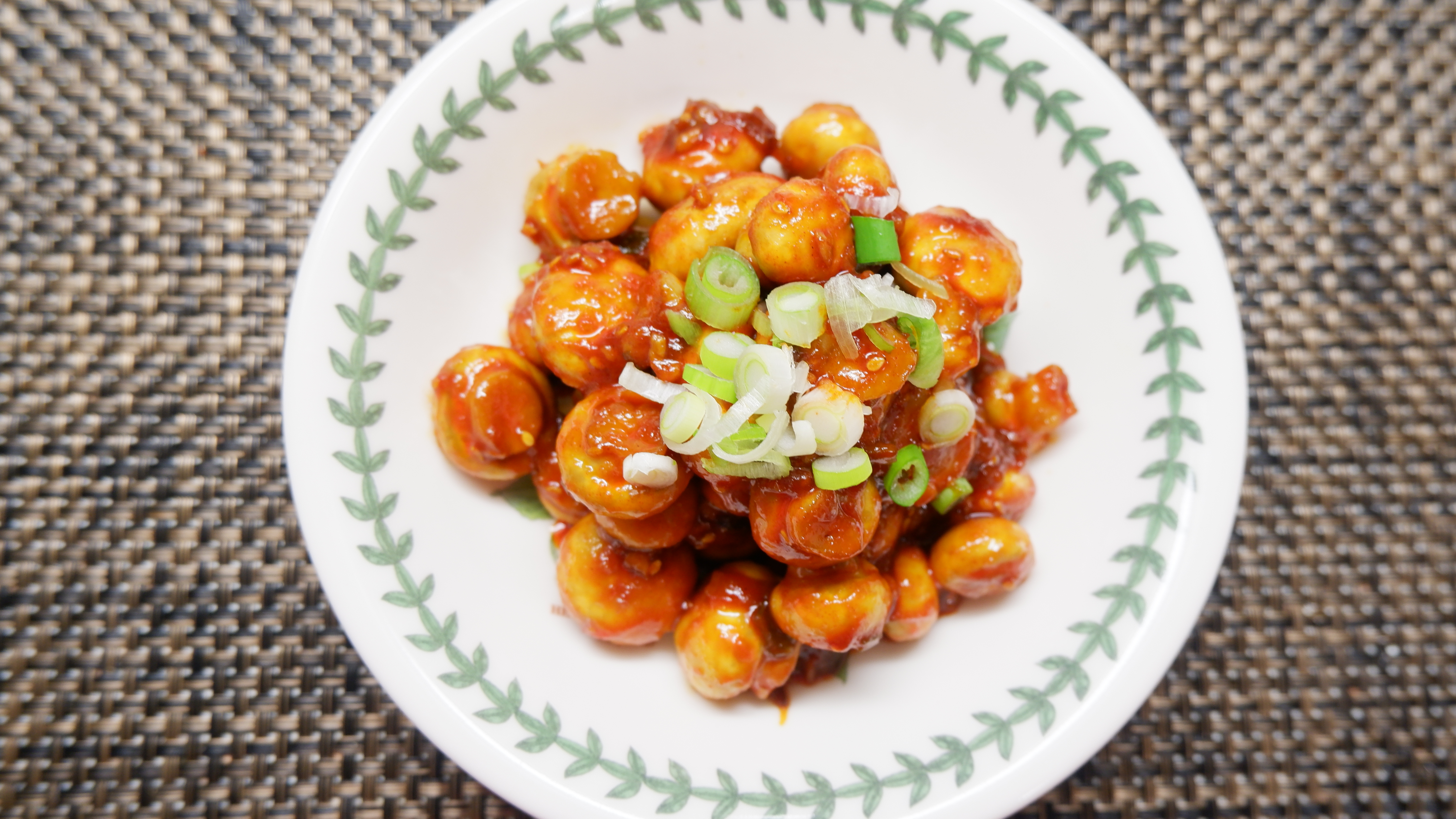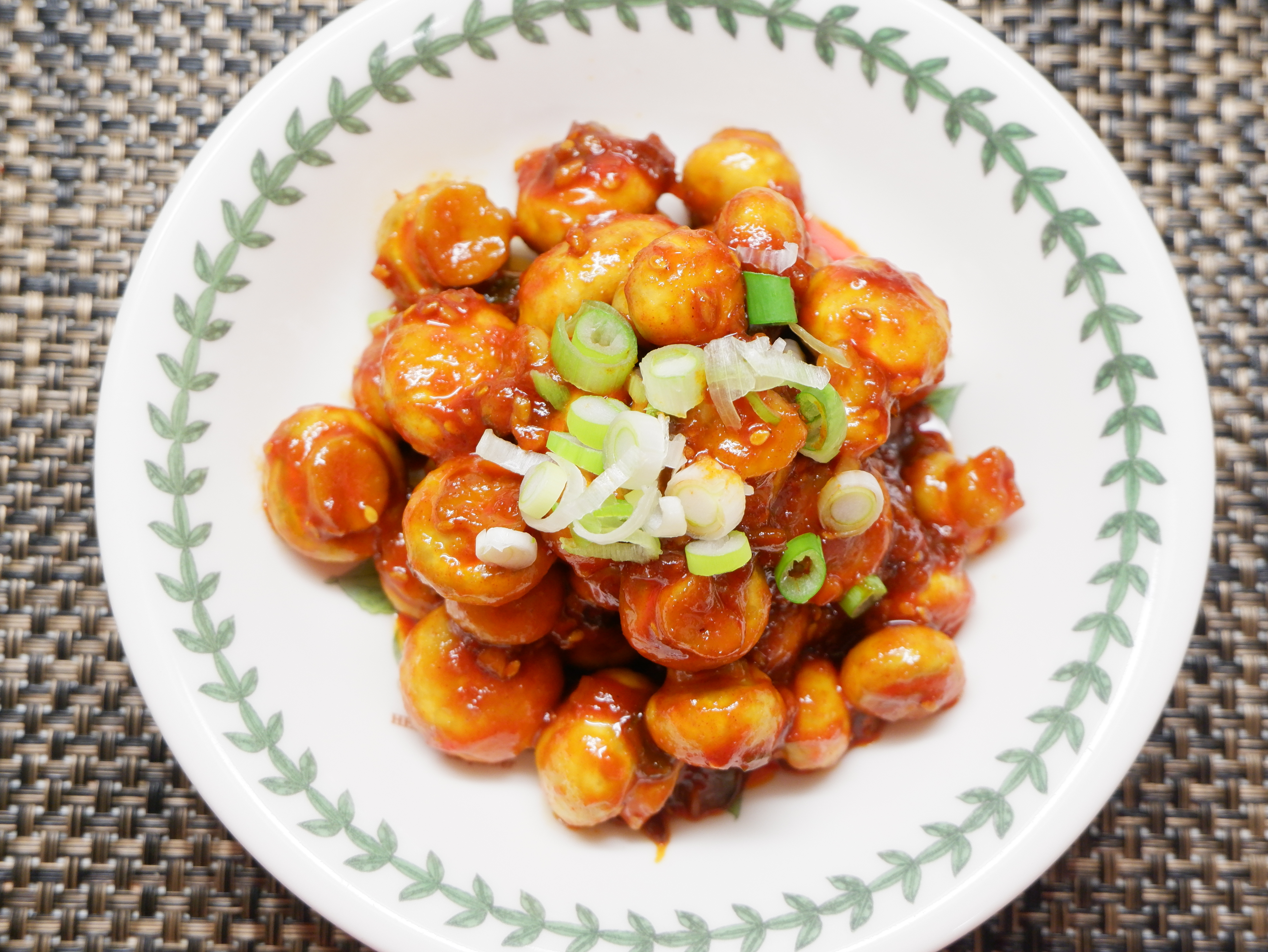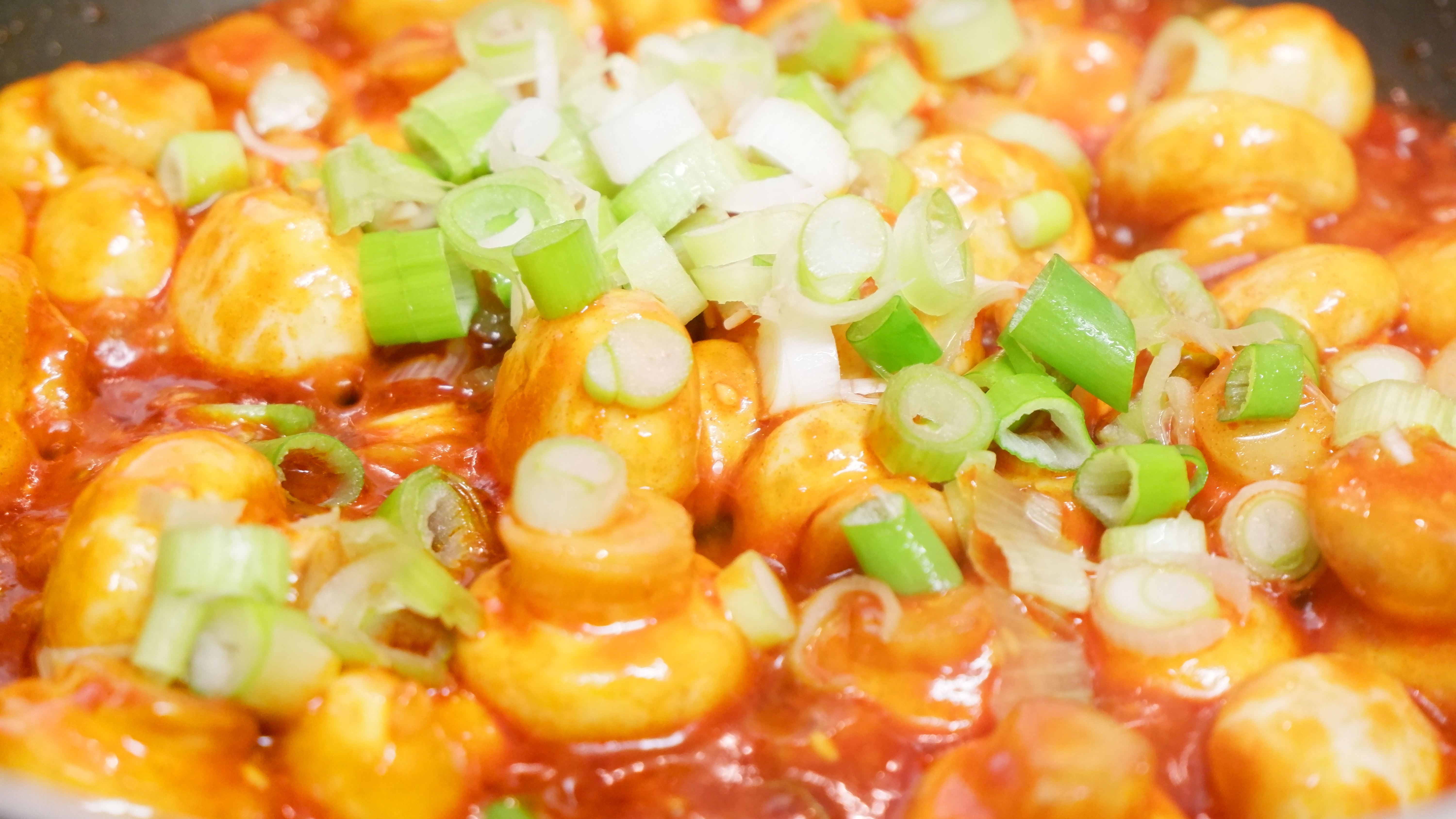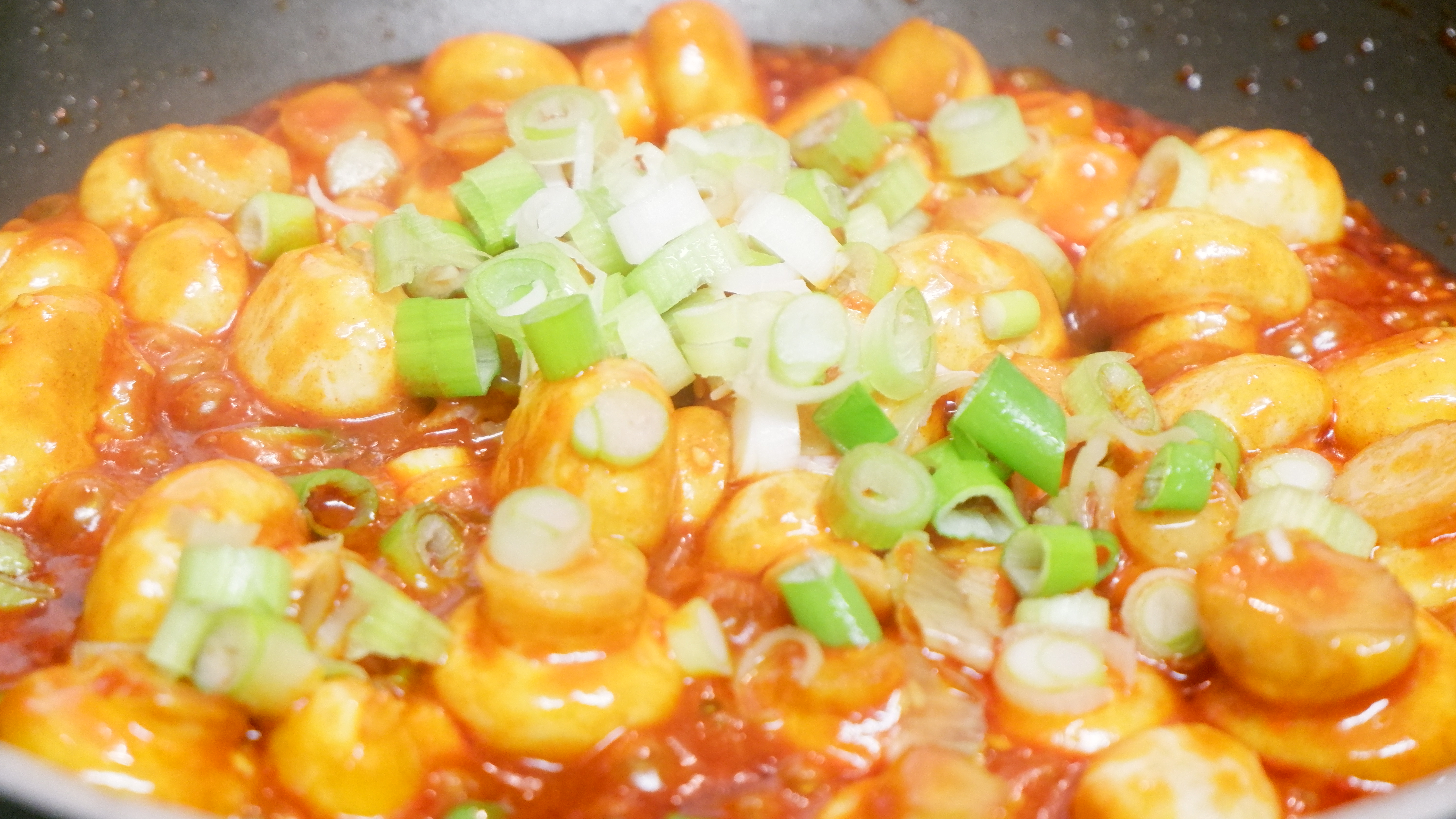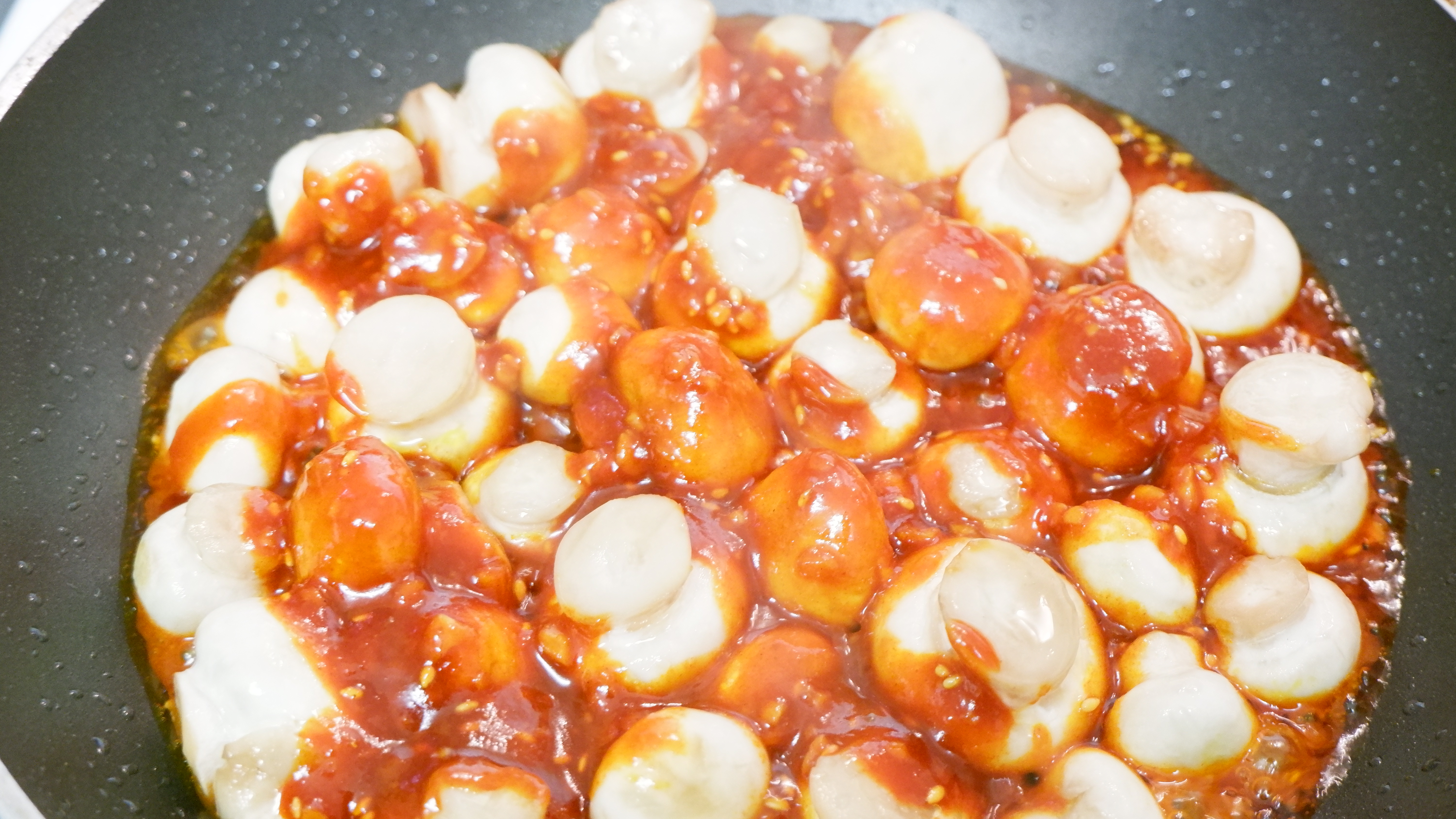 매콤한 양념으로 만든 양송이버섯 조림이 완성됐어요!