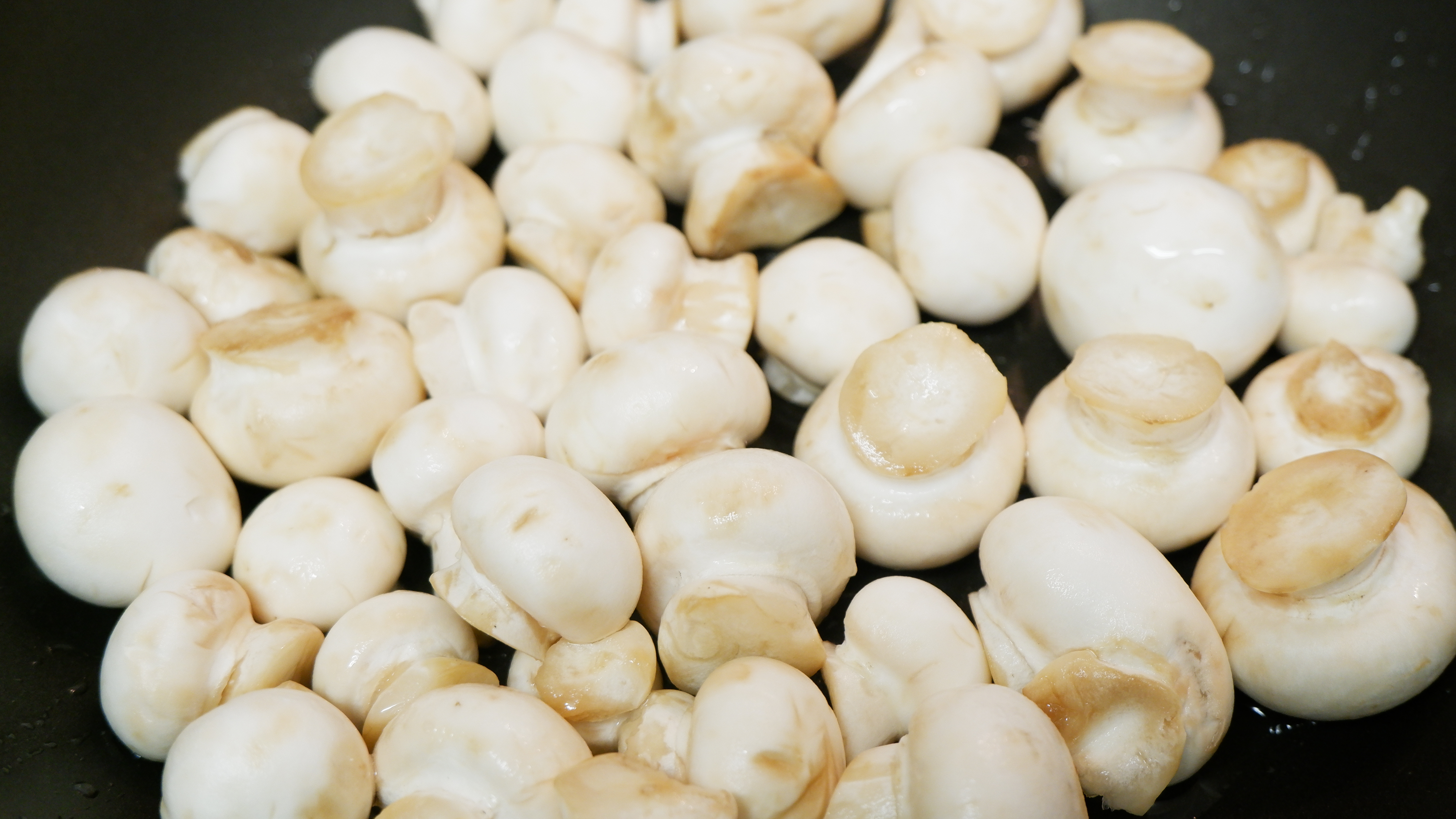 5. 기름이 달궈졌으면 양송이버섯을 넣고 3분간 볶아줍니다.