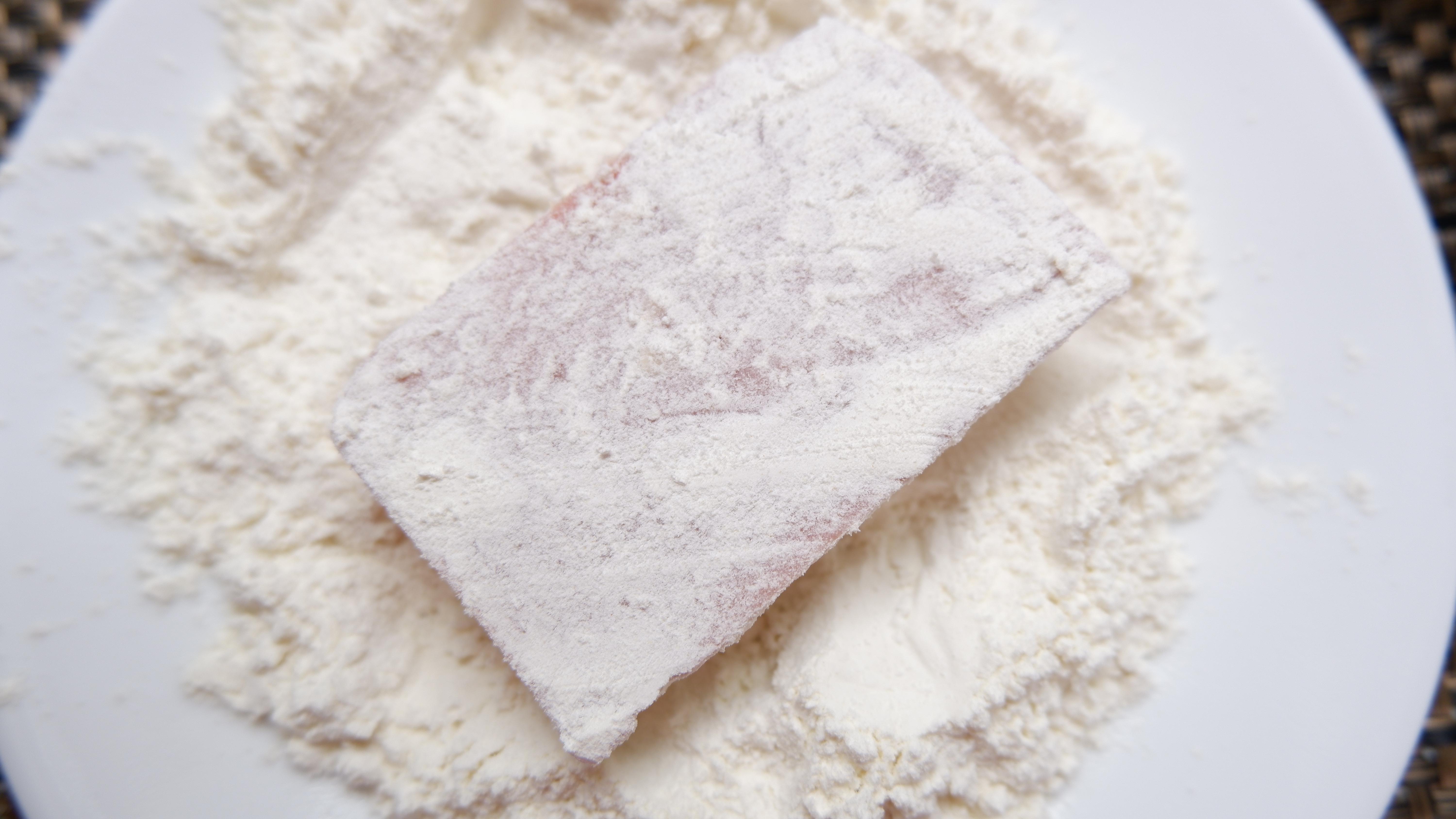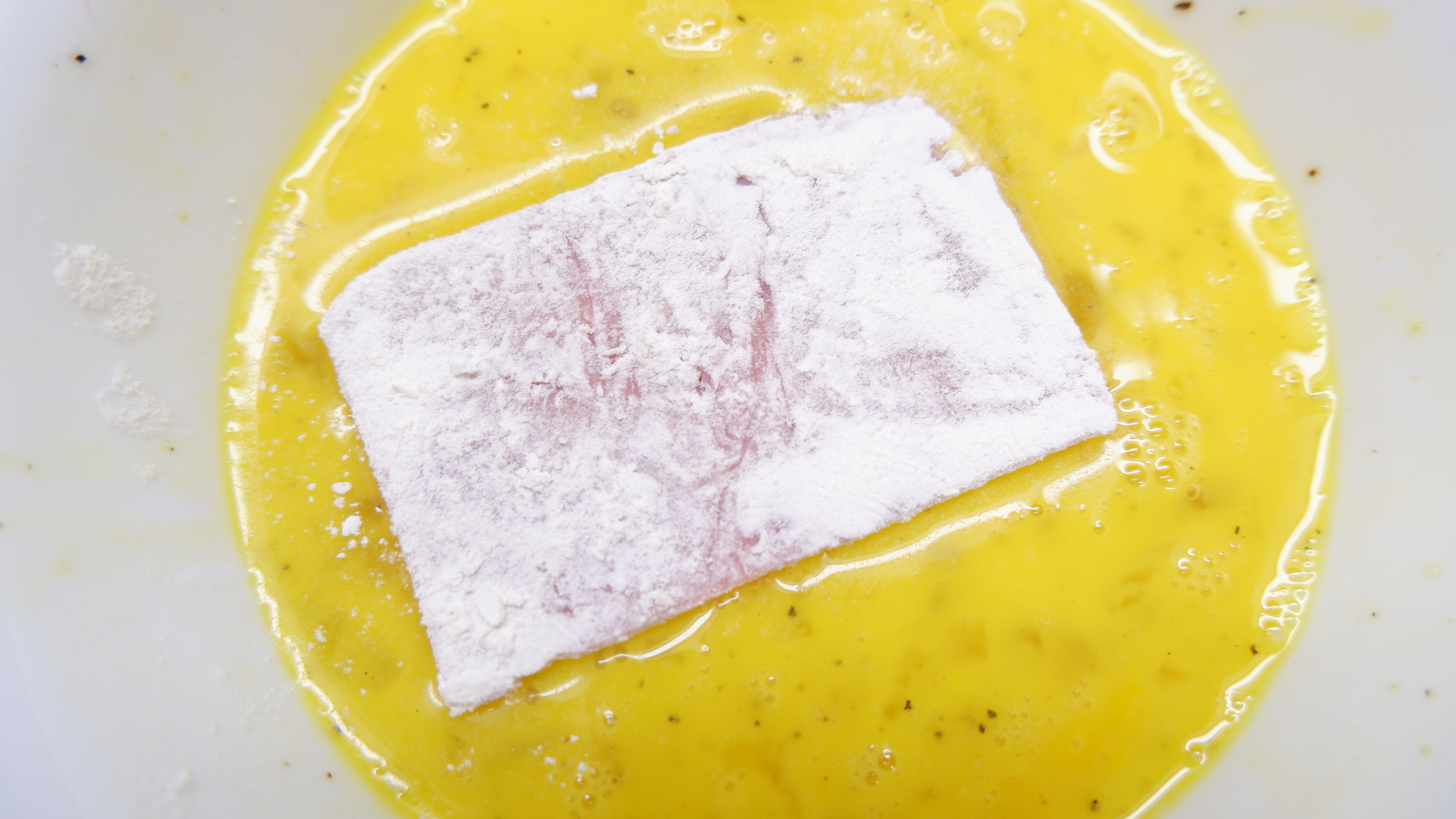 4. 스팸에 튀김옷을 입힐 차례인데 밀가루를 묻히고