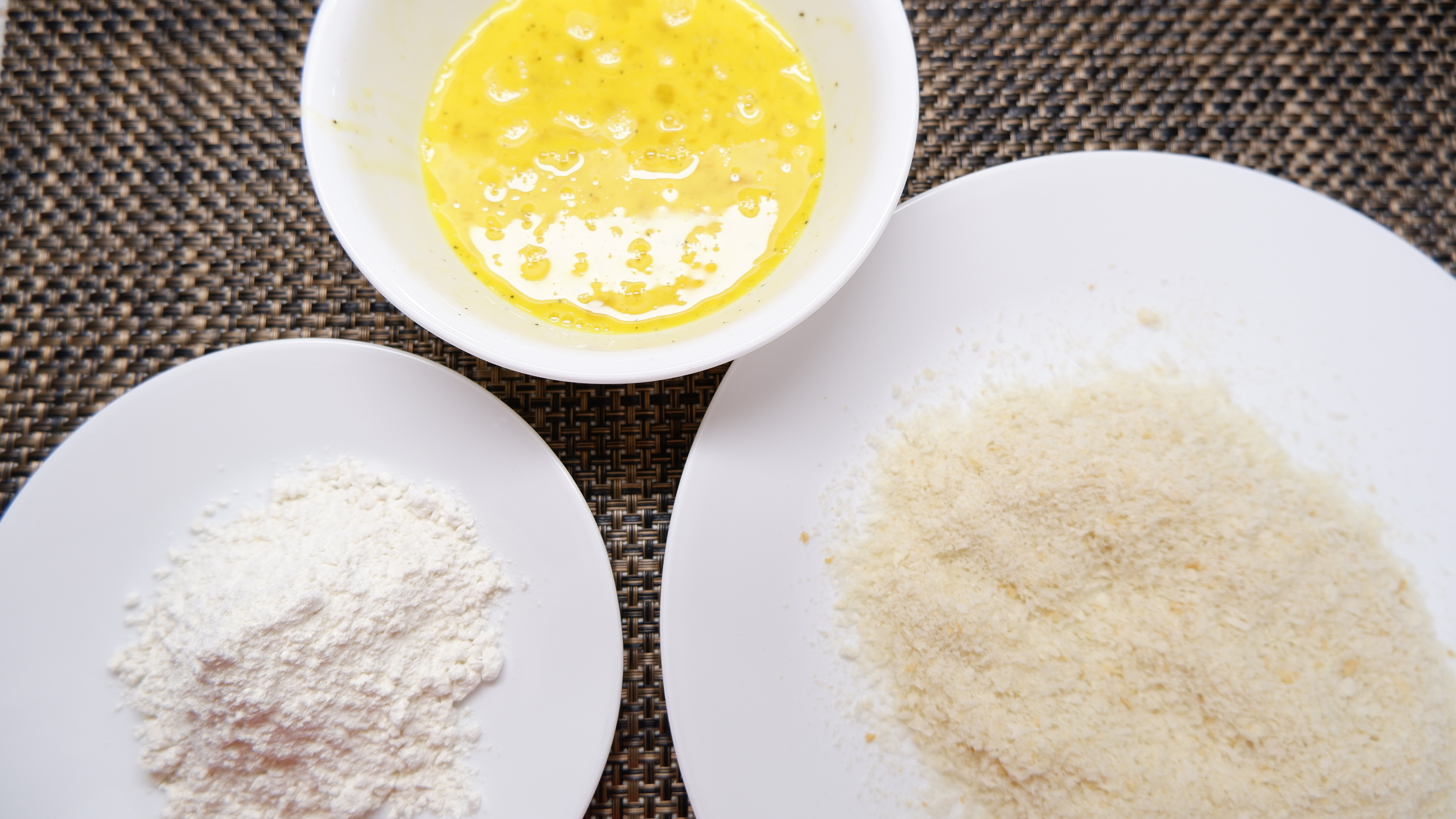 3. 그다음 빵가루와 밀가루를 각 접시에 두고 넓게 펴서 준비해주세요!