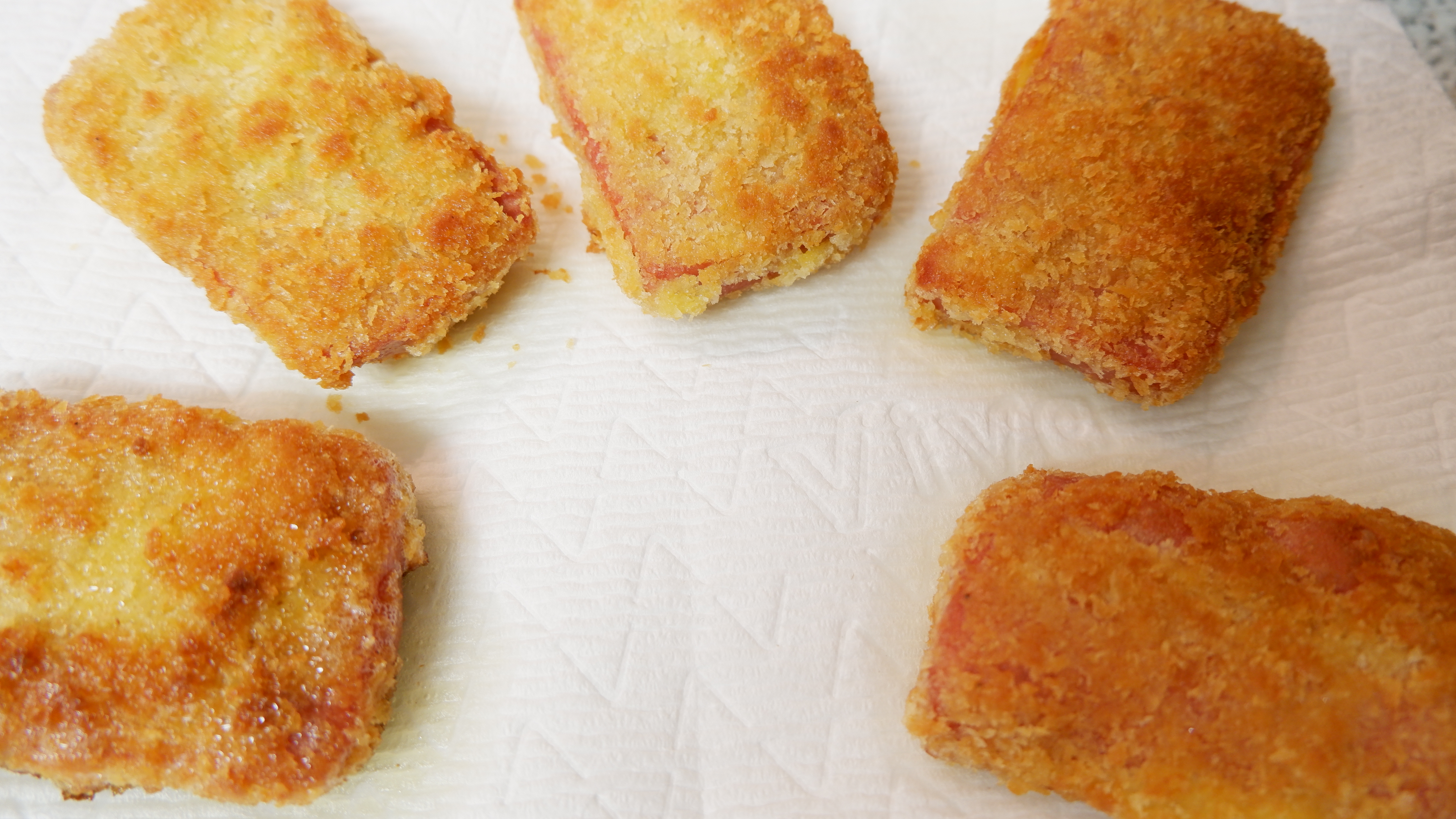 완성 된 스팸 튀김은 키친타올에 올려 기름기를 빼주면 끝! 아주 쉽죠?