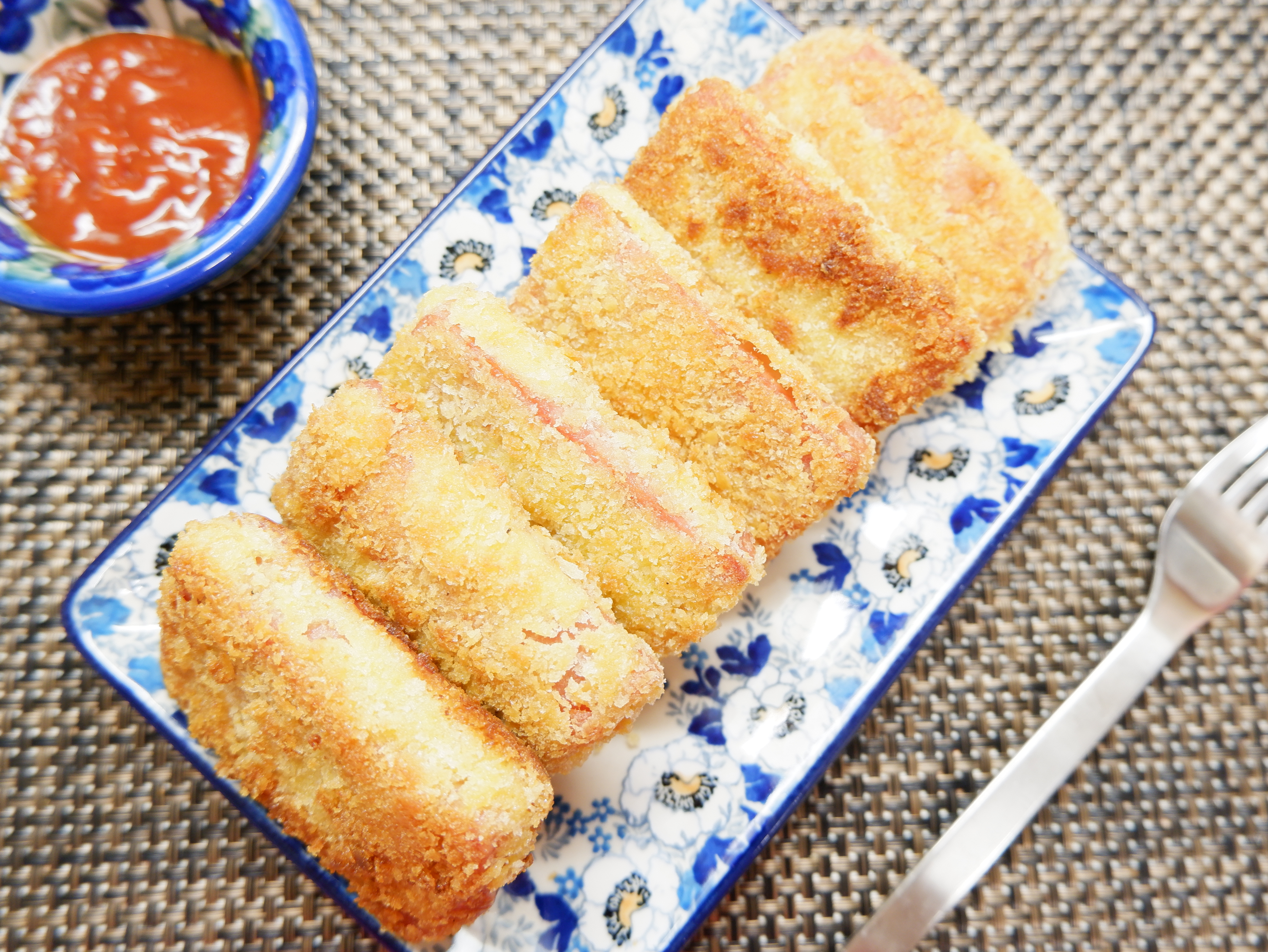 스팸 튀김은 그냥 먹어도 맛있지만 케첩이나 돈가스 소스와 같이 먹어도 궁합이 아주 좋아요!