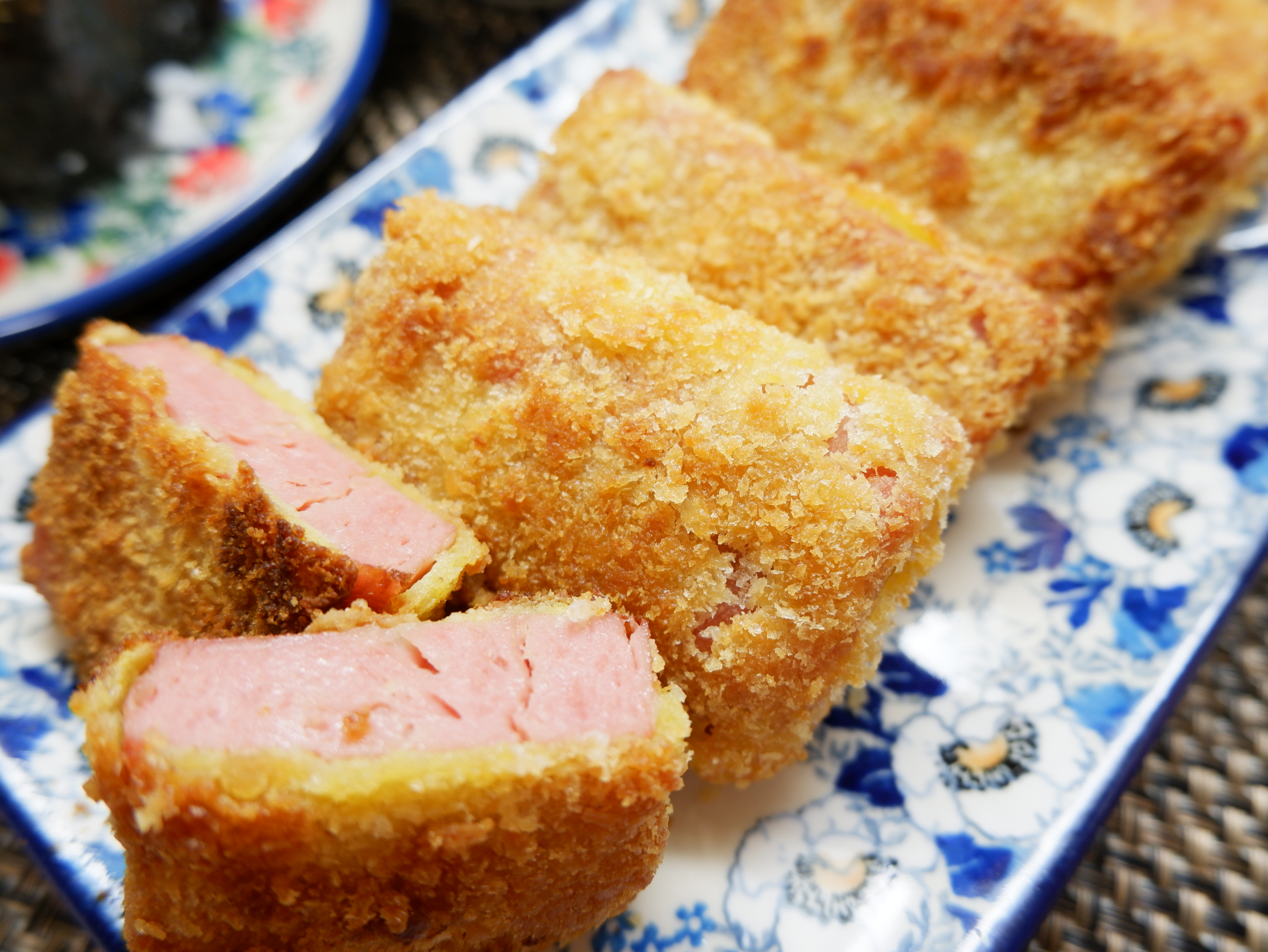 생고기를 튀겼을 때는 안이 익었는지 안 익었는지 몰라 시간을 맞추는데 어려움이 있지만 스팸은 안이 익었는지 걱정할 필요가 없죠~!
