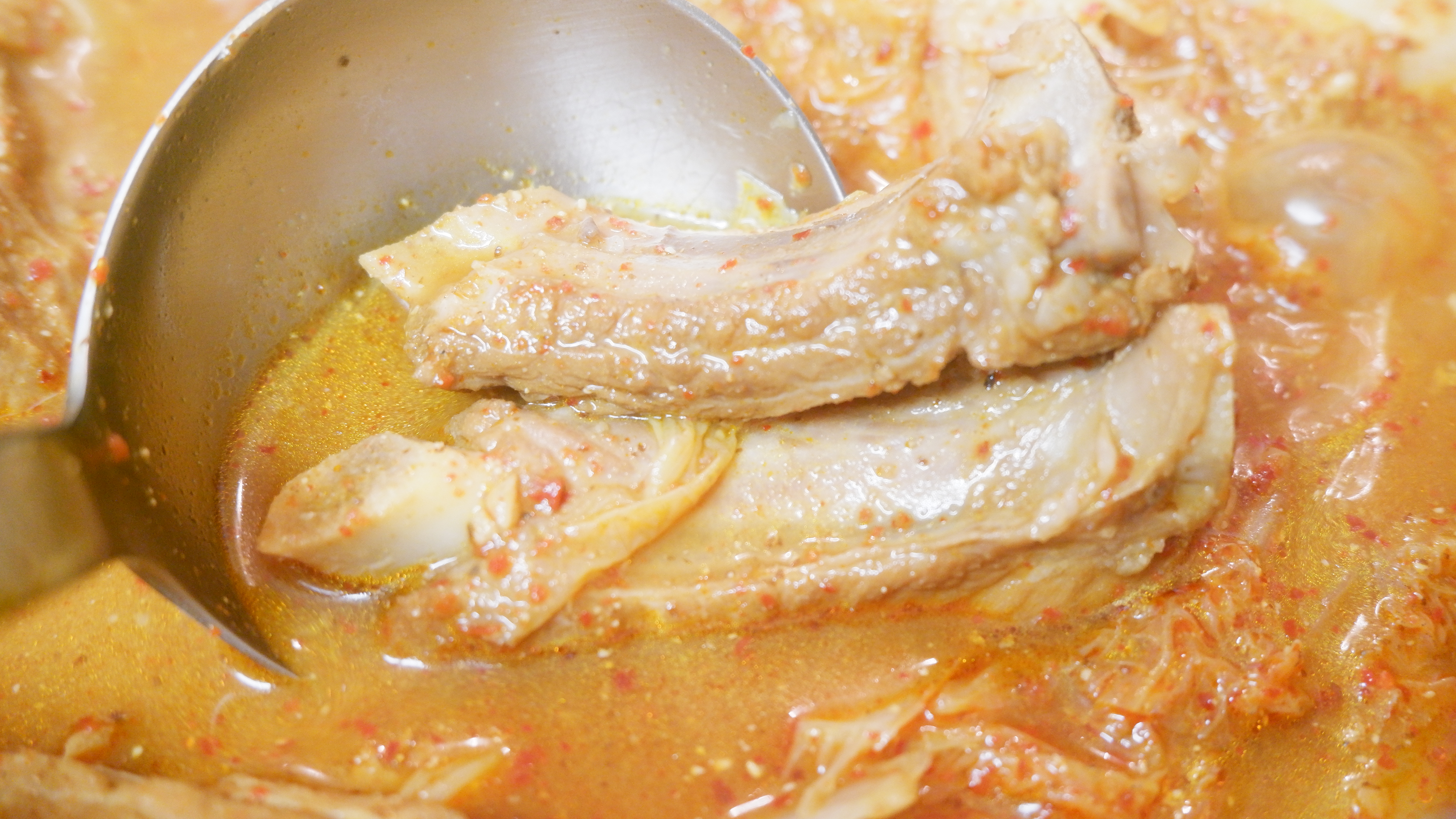 감자를 넣지 않고 등갈비와 배추만 넣었는데도 맛은 담백한 감자탕 맛 ><