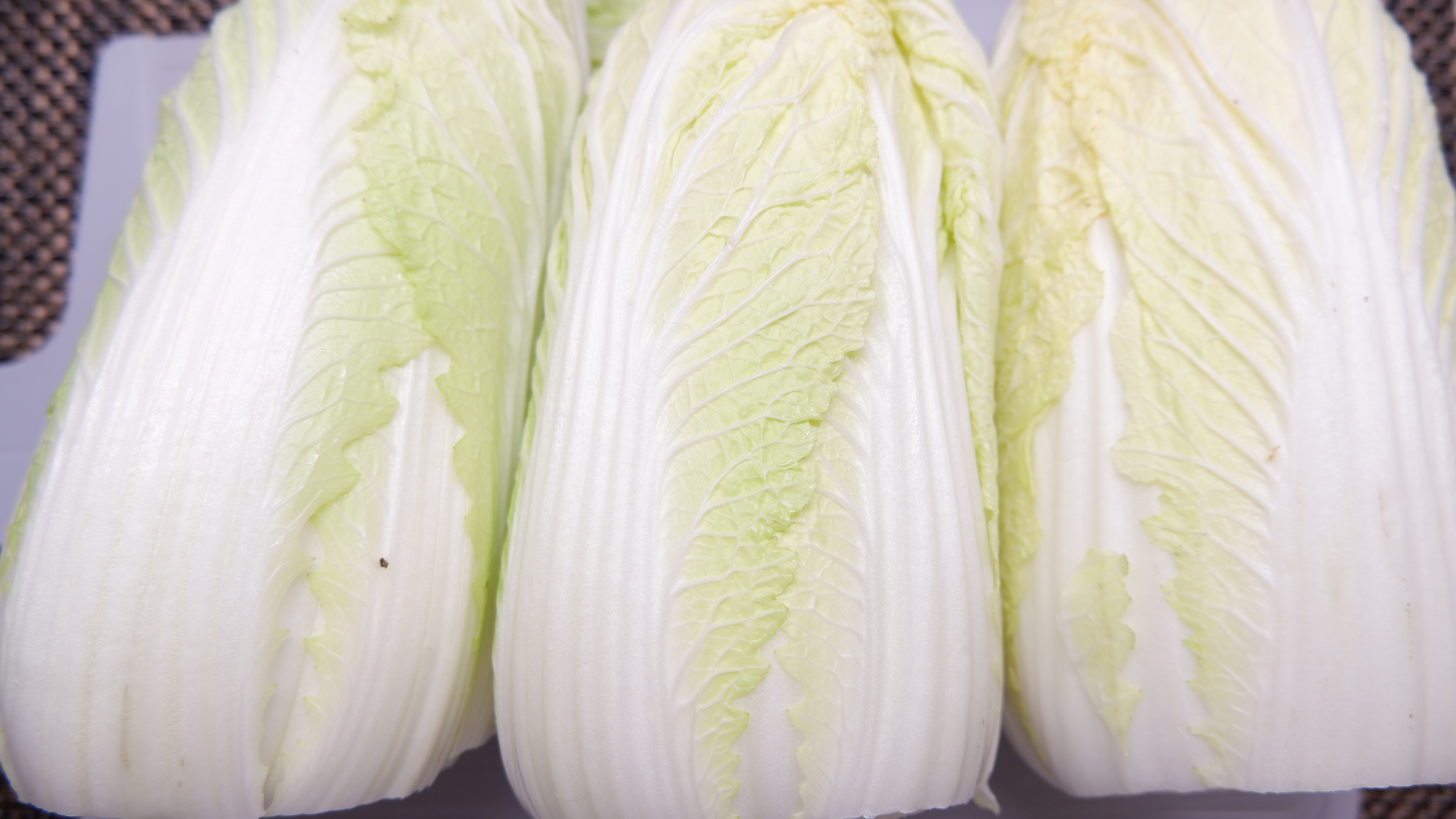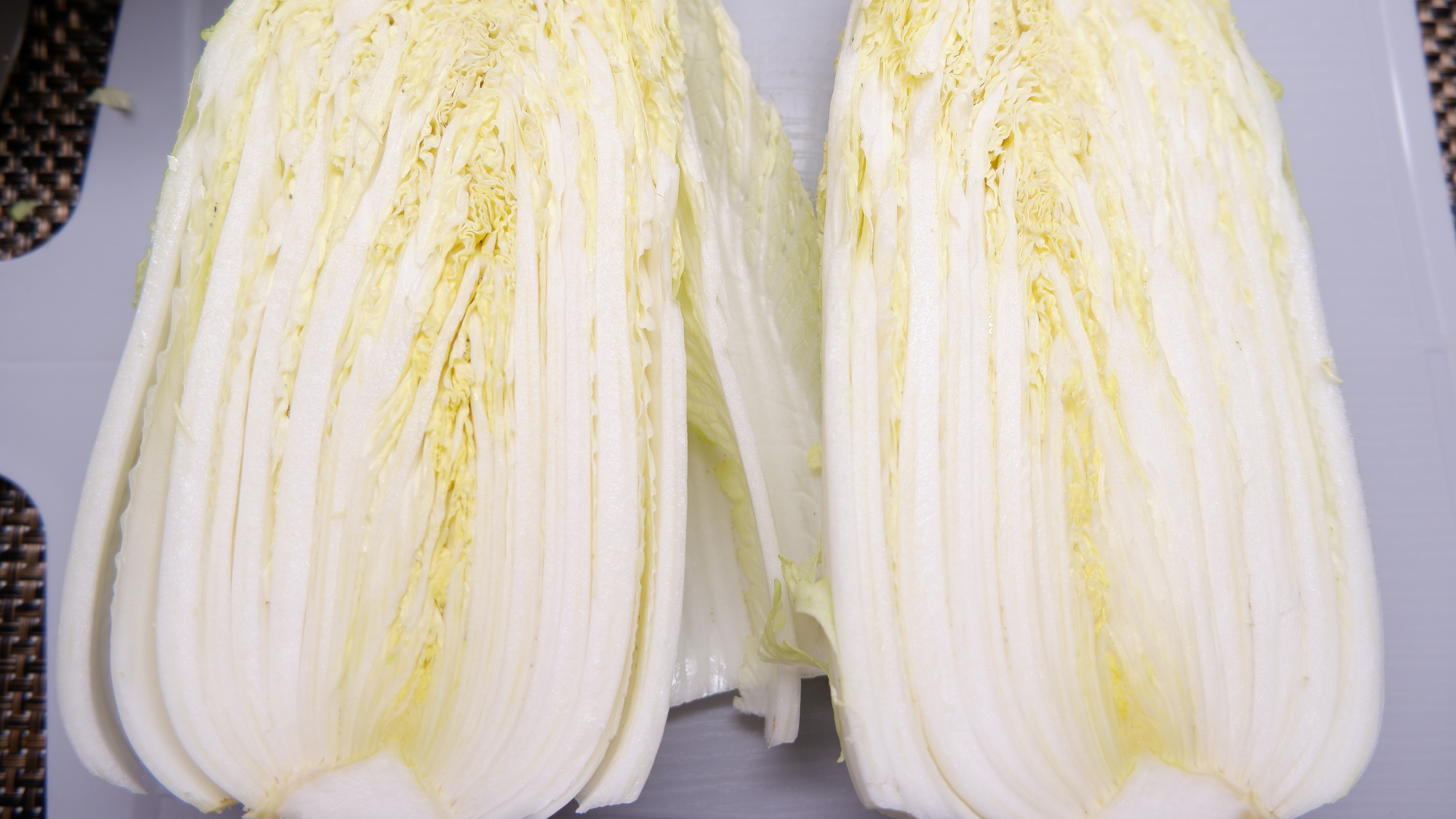 4. 배추를 반으로 자른 다음 흐르는 물에 씻어 내고 배추 꽁다리를 잘라내주세요! (전 배추 3통을 준비했지만 크기가 작고 상태 안 좋은 부분이 많아서 많이 잘라 냈기 때문에 배추 큰 사이즈로 한통 준비해주시면 될 것 같아요~)