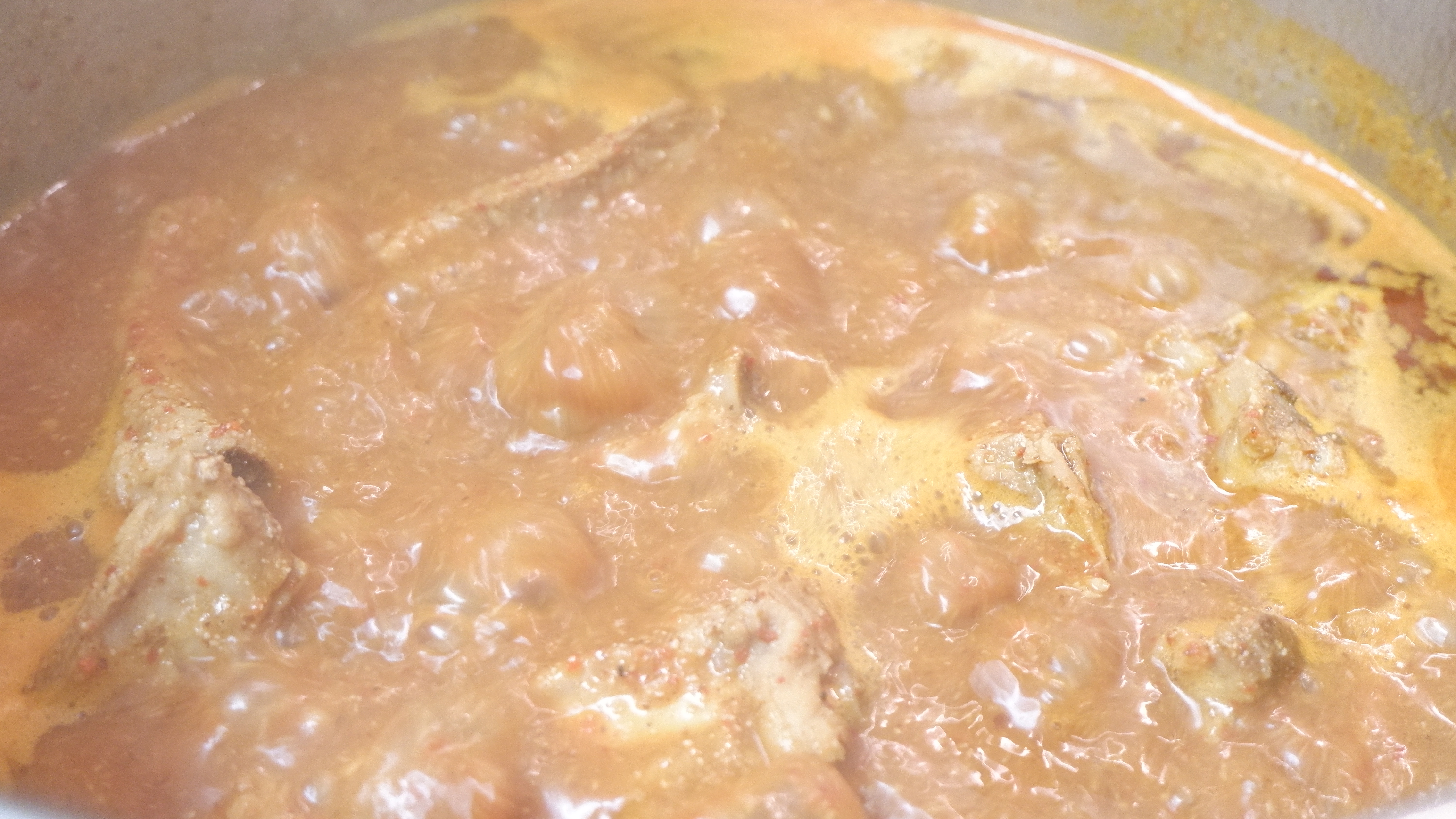 6. 팔팔 끓기 시작하면 불을 중불로 줄이고 간장 2큰술 , 고춧가루 4큰술, 고추장 3큰술 , 된장 3큰술 , 설탕 1큰술 , 후춧가루 , 생강가루 또는 다진 생강 1큰술, 들깻가루 5큰술을 넣고 양념을 잘 풀어주고 뚜껑을 닫은 뒤 10분간 끓여주세요~!