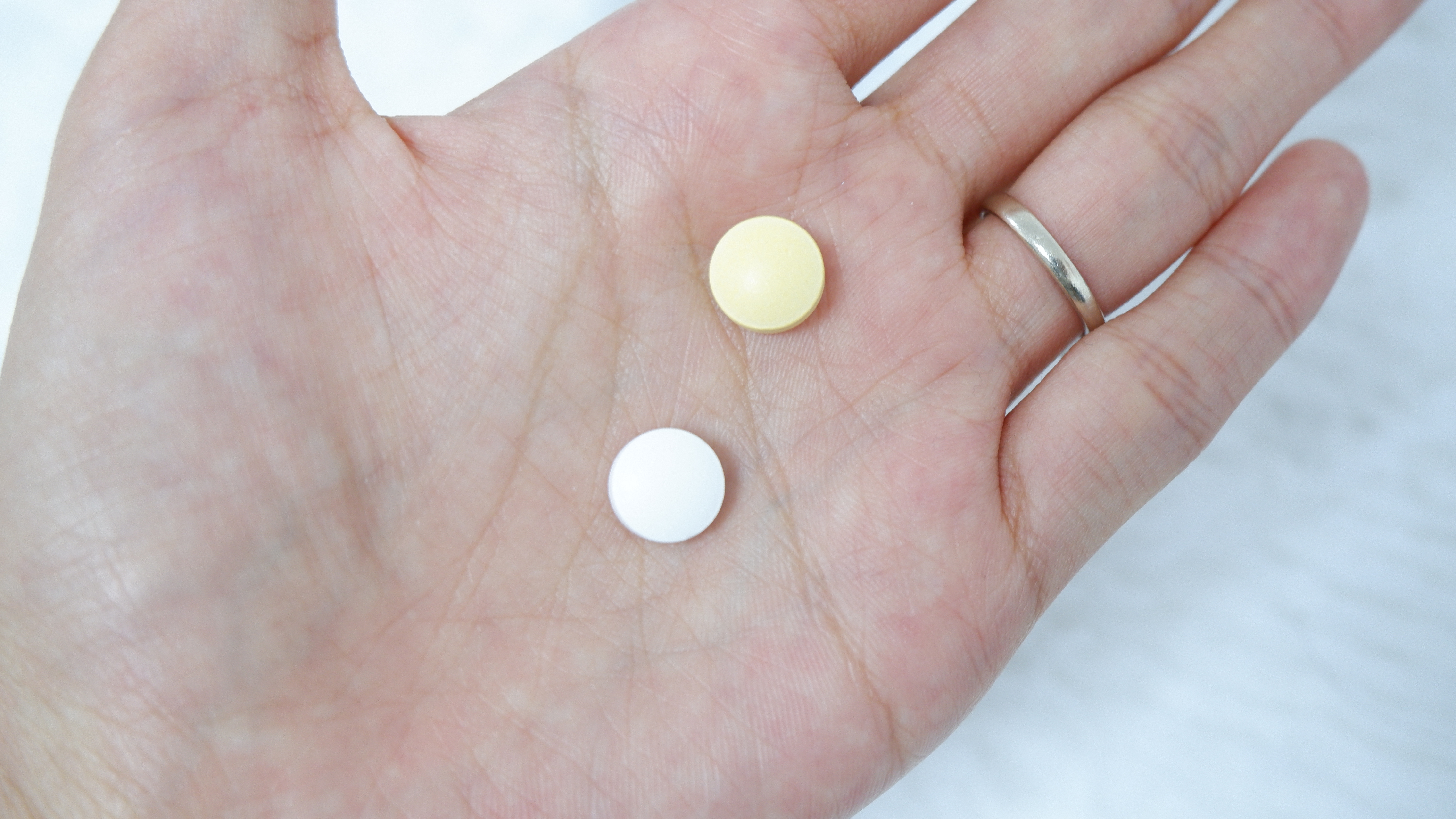 플라스틱으로 된 뚜껑 부분엔 노란색 정제와 흰색 정제가 있는데 노란색은 엽산이고 흰색은 요오드예요! 복용 방법은 1일 1회 액상을 섭취 전 충분히 흔들어 준 후 정제와 함께 드시면 되고 식중 또는 식후에 섭취를 해주면 됩니다.