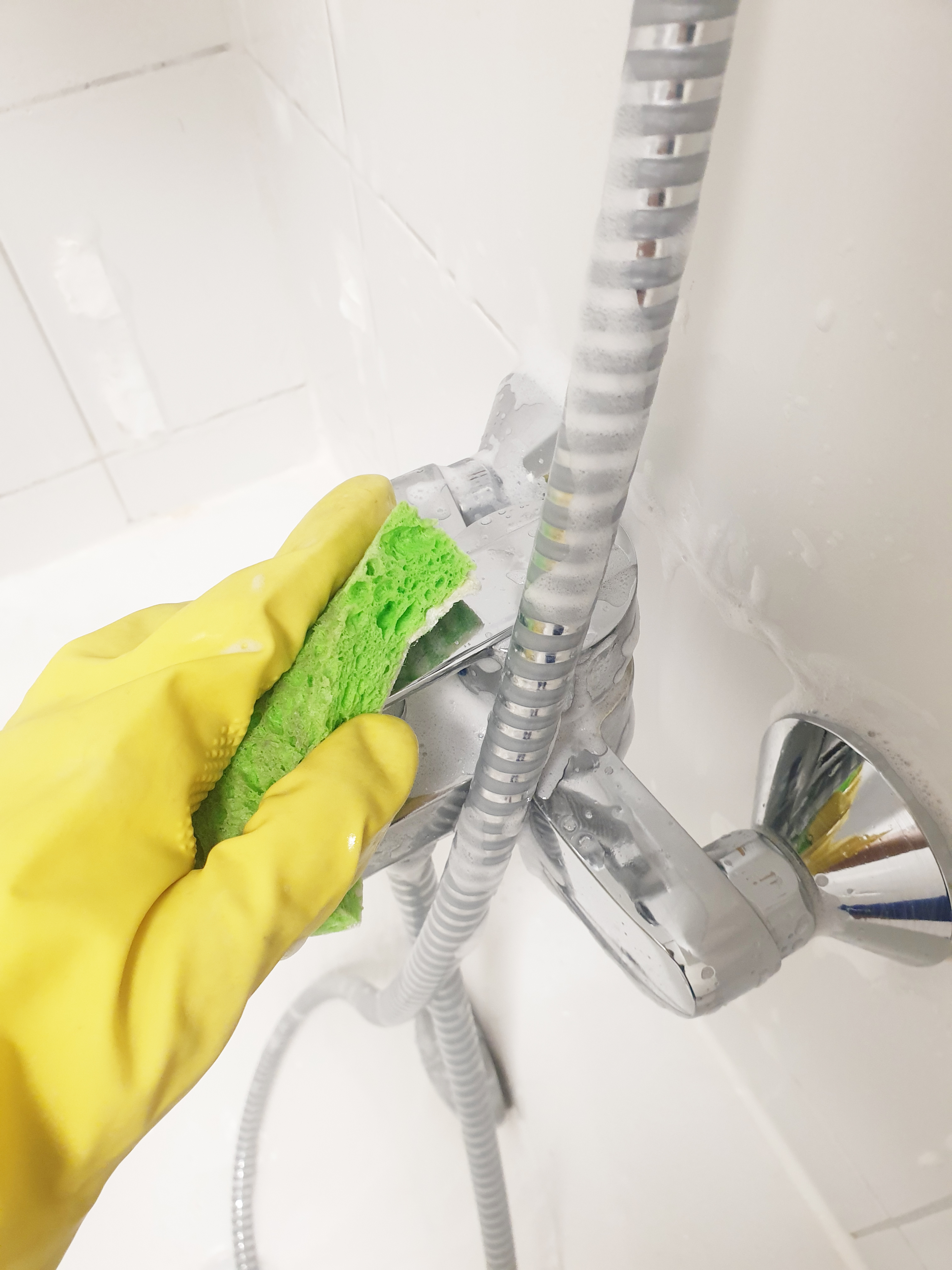 라임 어웨이만 분사하면 힘을 많이 쓰지 않고 살살 문지르기만 해도 너무 깨끗하게 청소가 돼서 청소하는 재미가 있었어요~ 욕조와 샤워기 , 타일도 깨끗하게 ~