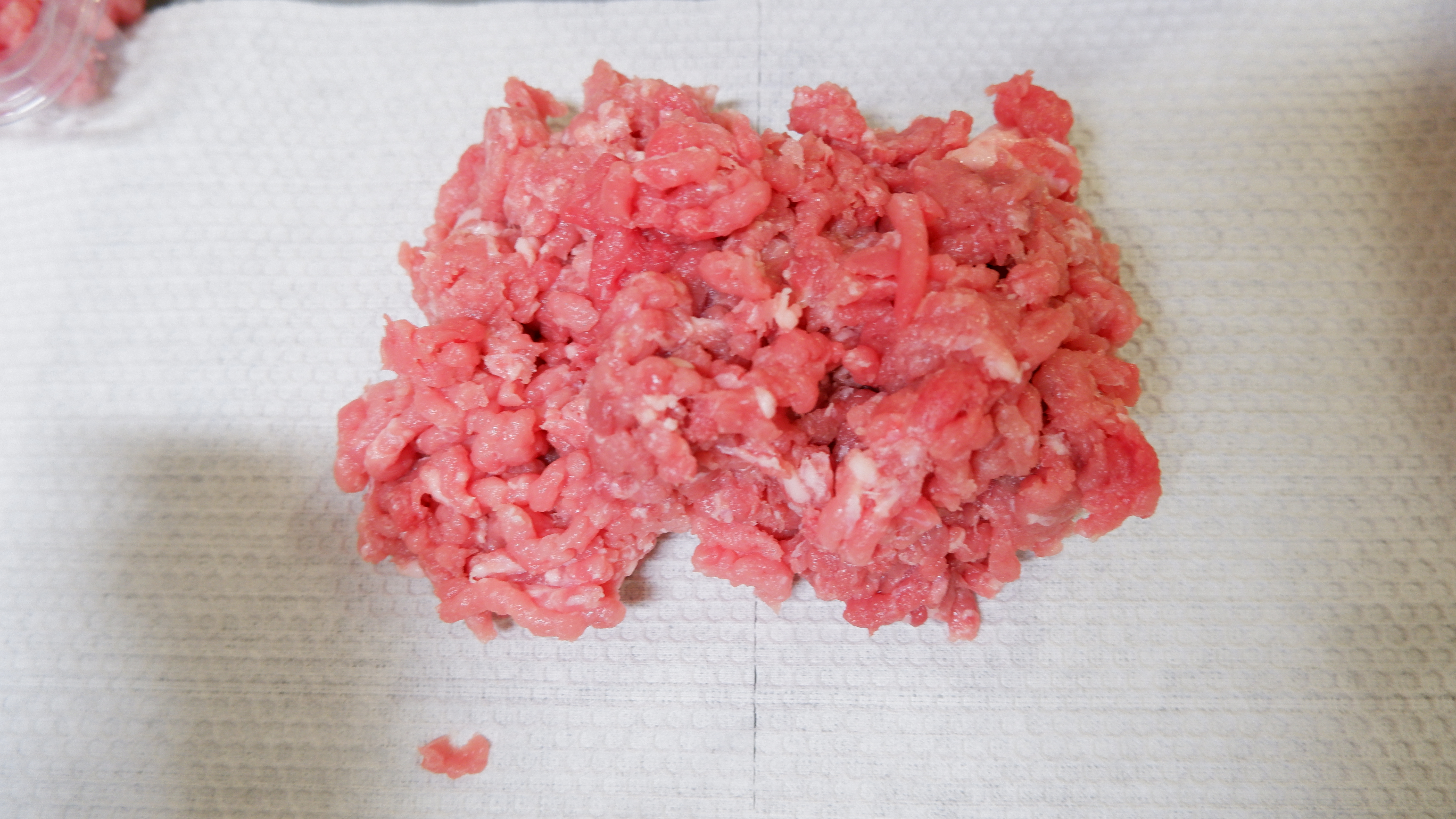 6. 다짐육은 키친 타월을 이용해서 물기를 제거해주면 재료 준비 끝!