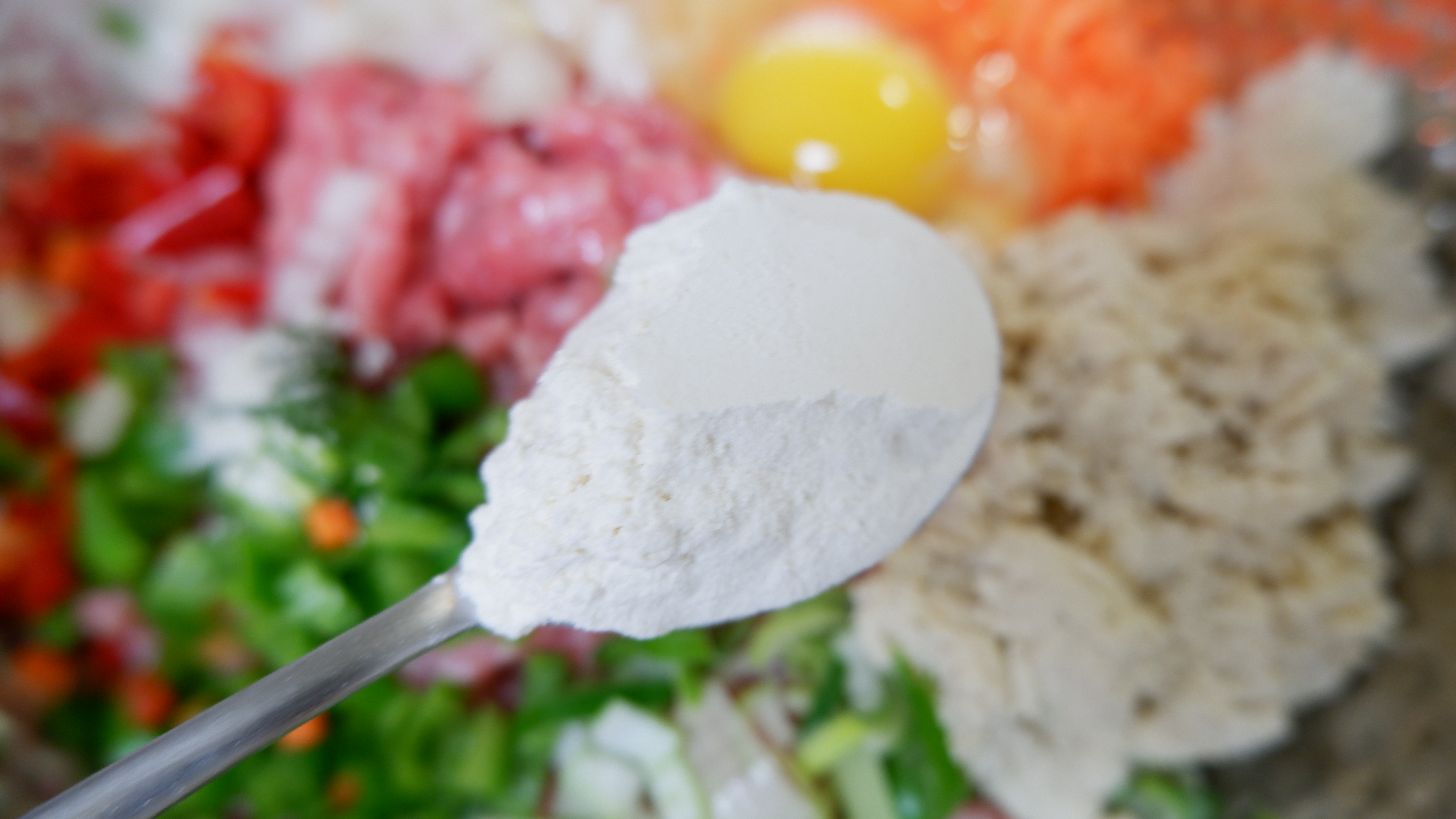 필요한 조미료 : 부침가루 2큰술 , 소금 반 큰 술 , 후춧가루 1 티스푼 , 참기름 1큰술 , 다진 마늘 1큰술