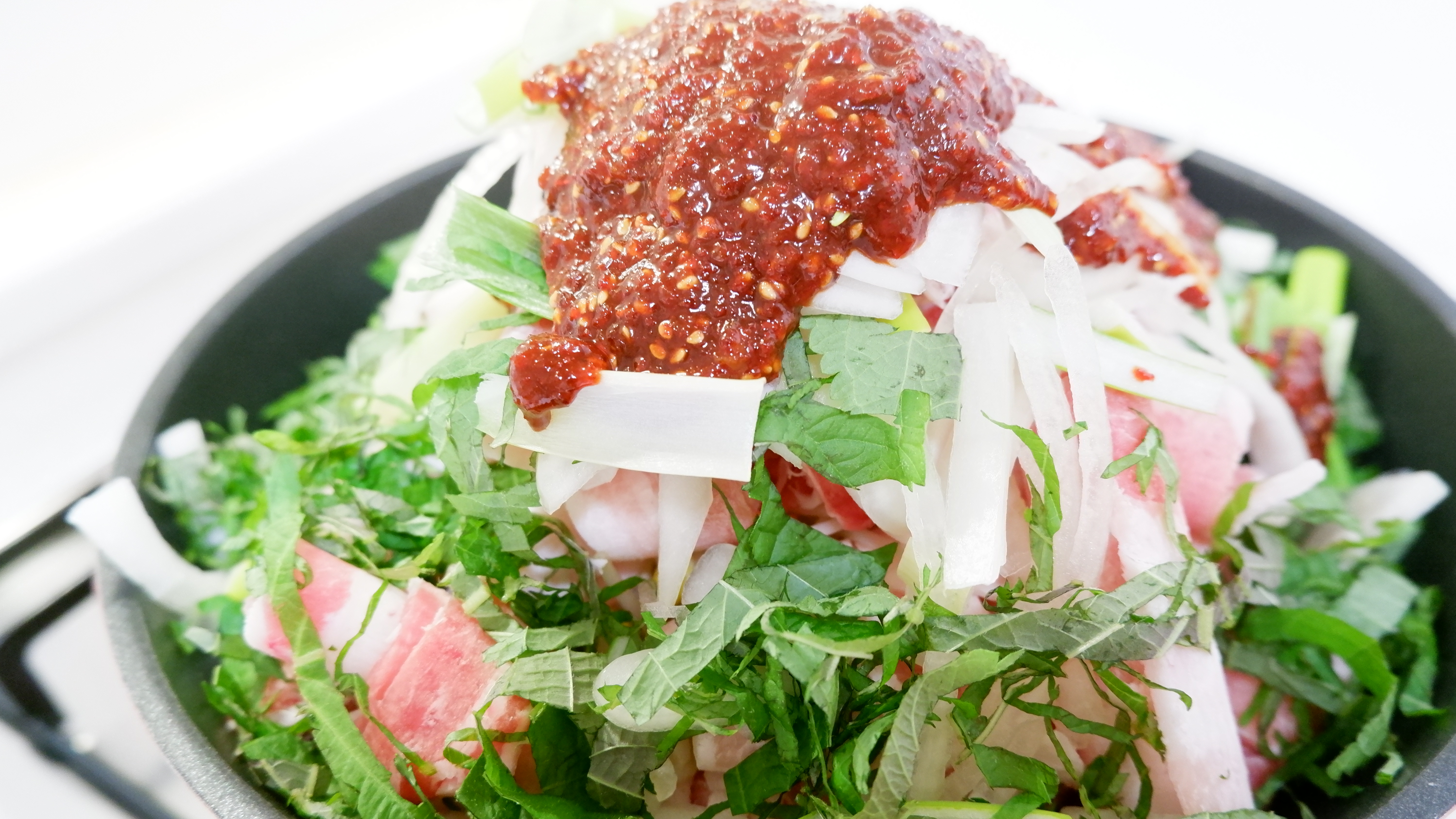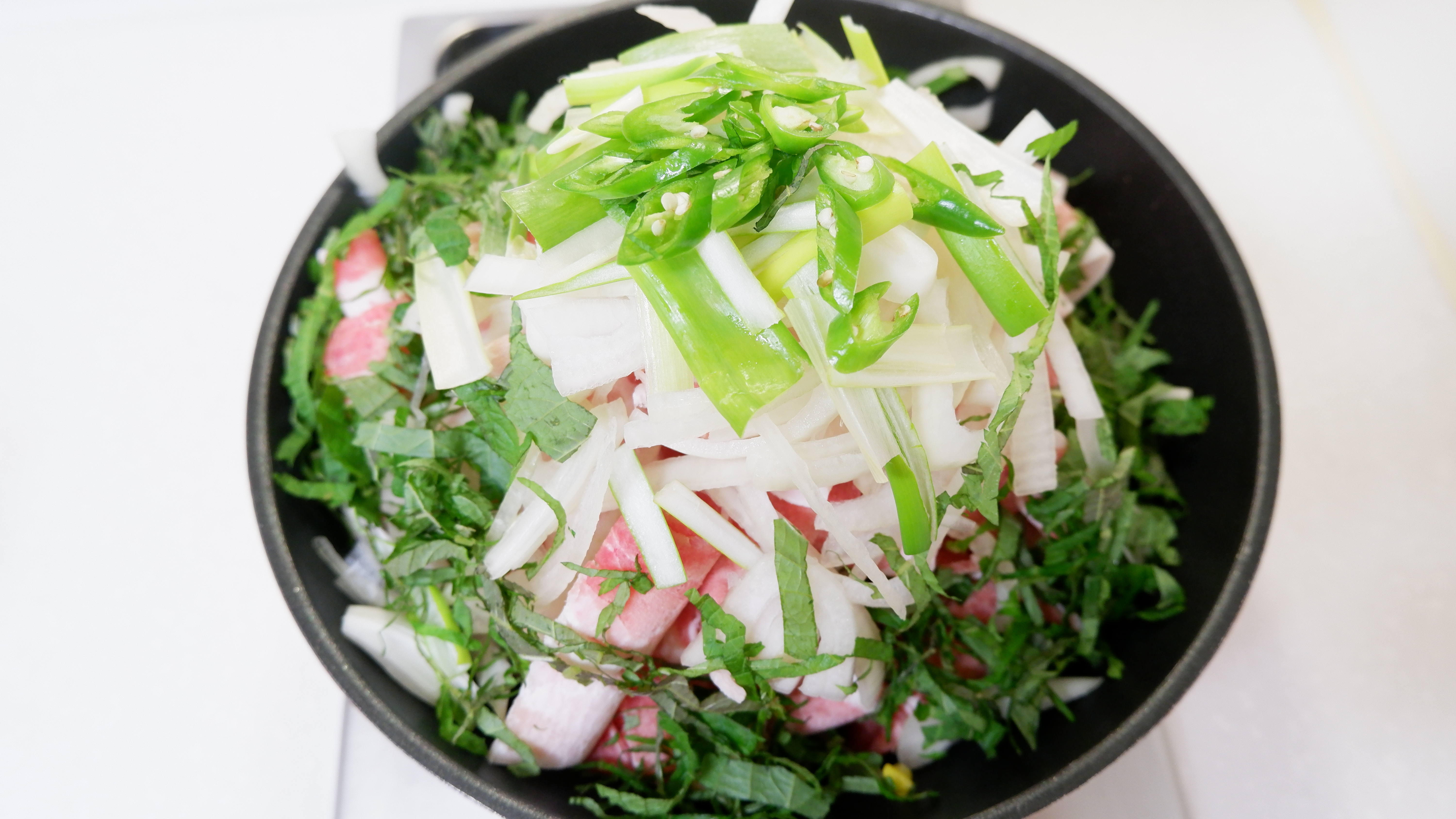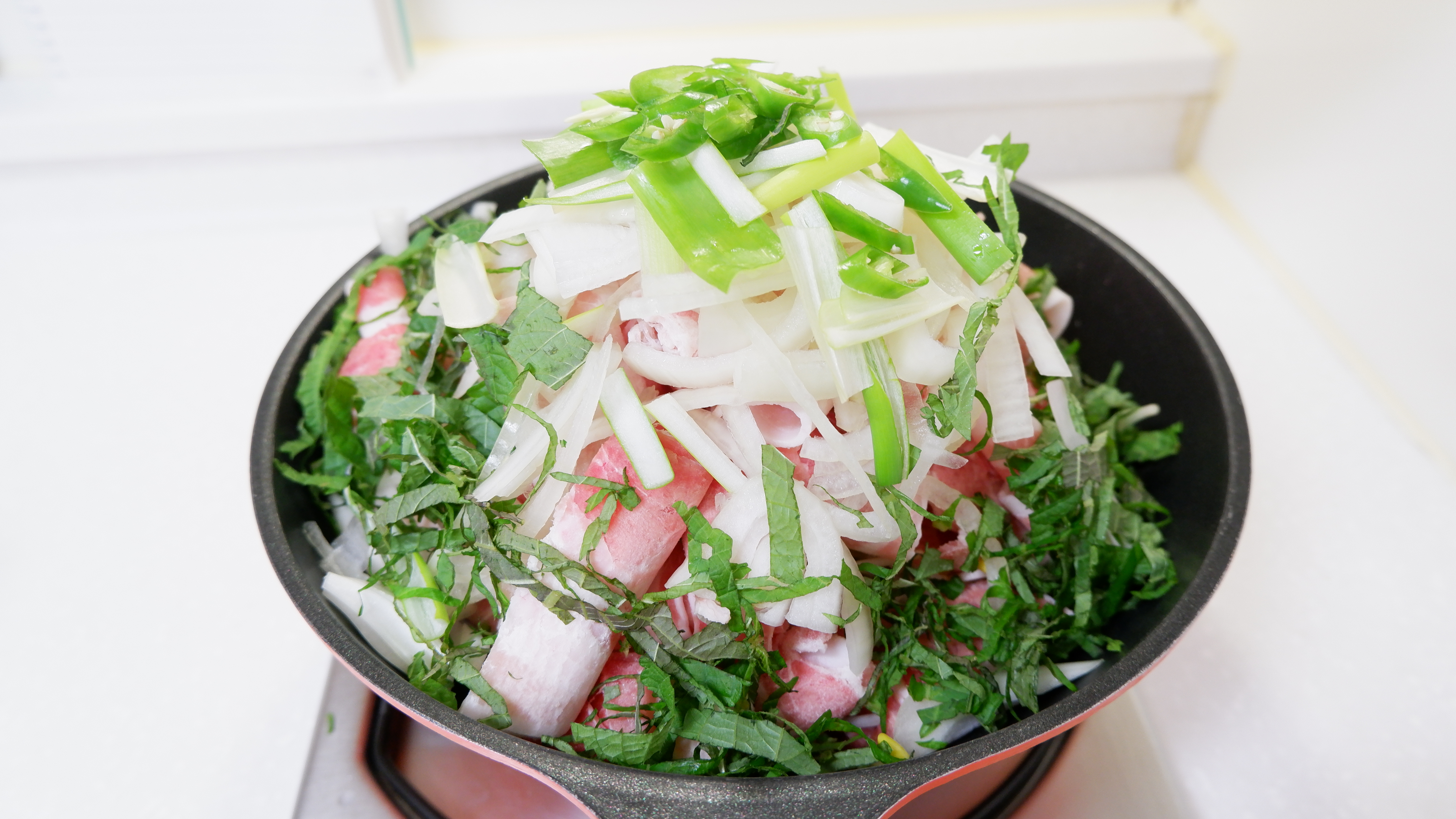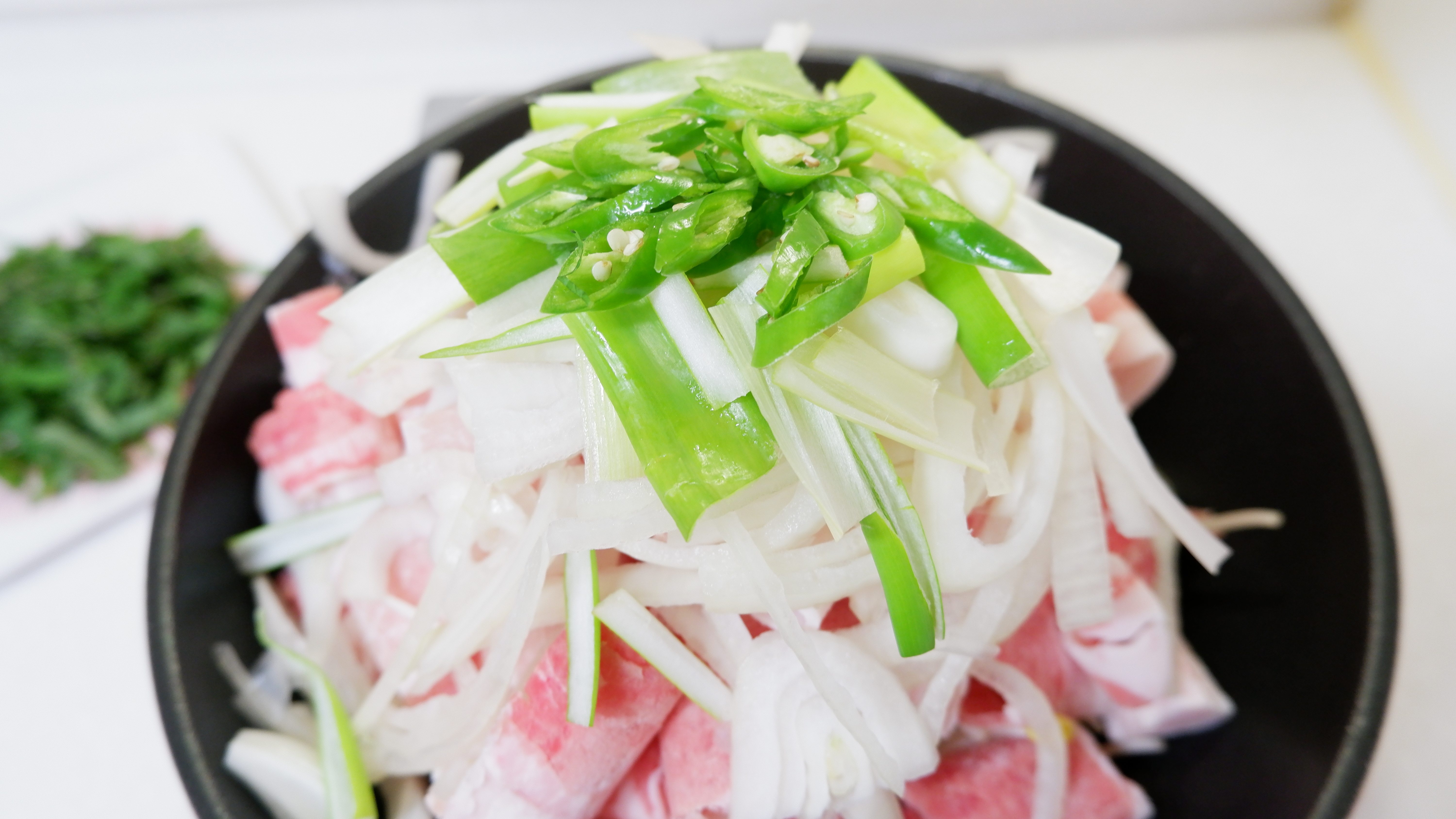 올린 순서 : 콩나물 -> 대패 삼겹살 -> 양파 -> 대파 -> 청양 고추 -> 깻잎