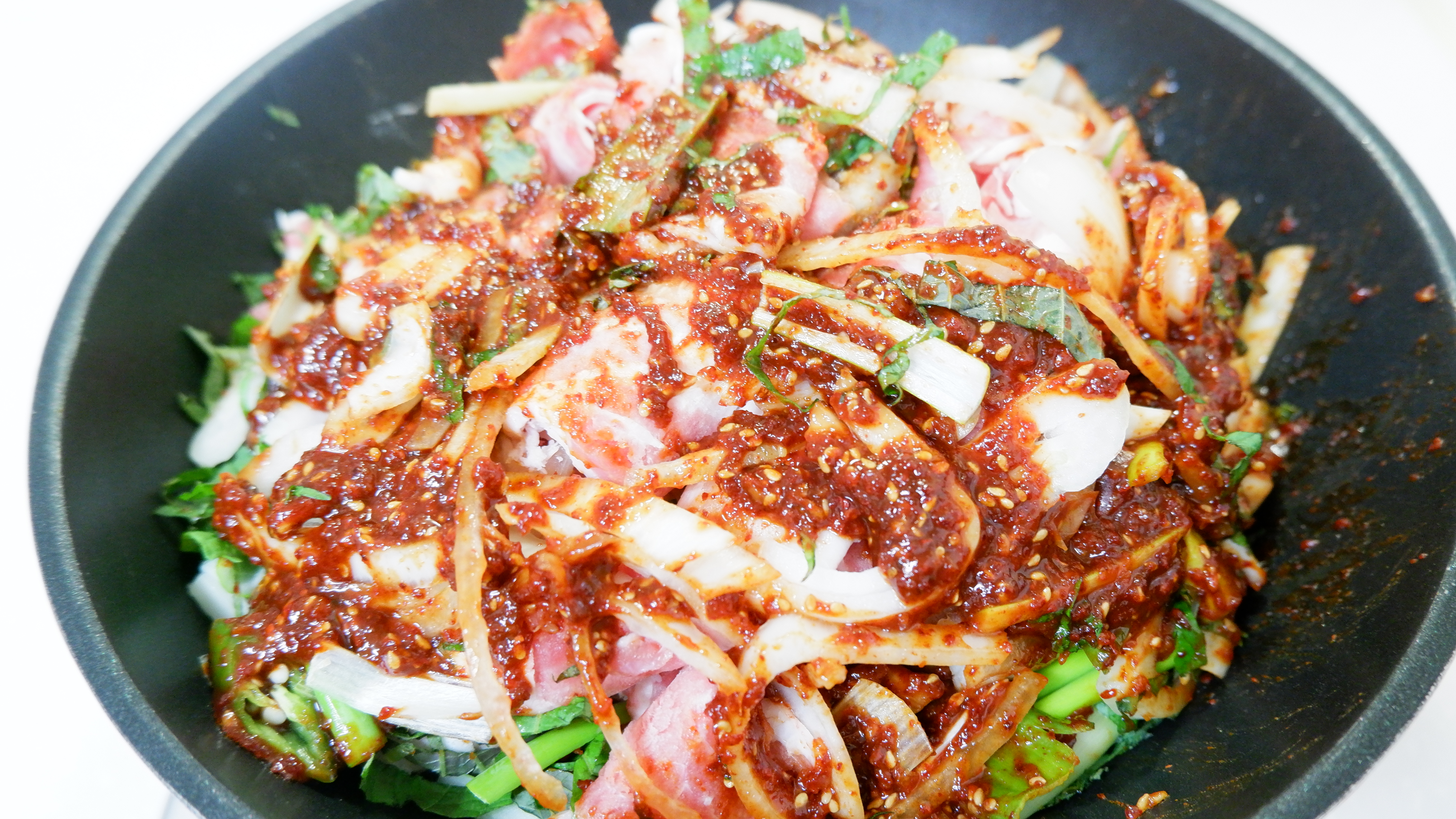이번엔 김치를 넣고 돼지고기 두루치기를 만들어 봤어요~ 그냥 만들었을 때보다 김치를 넣고 만들면 감칠맛이 두배 더 좋아져서 밥 2그릇 이상 먹을 수 있을 정도로 밥이 술술 들어가요~ 양념장
