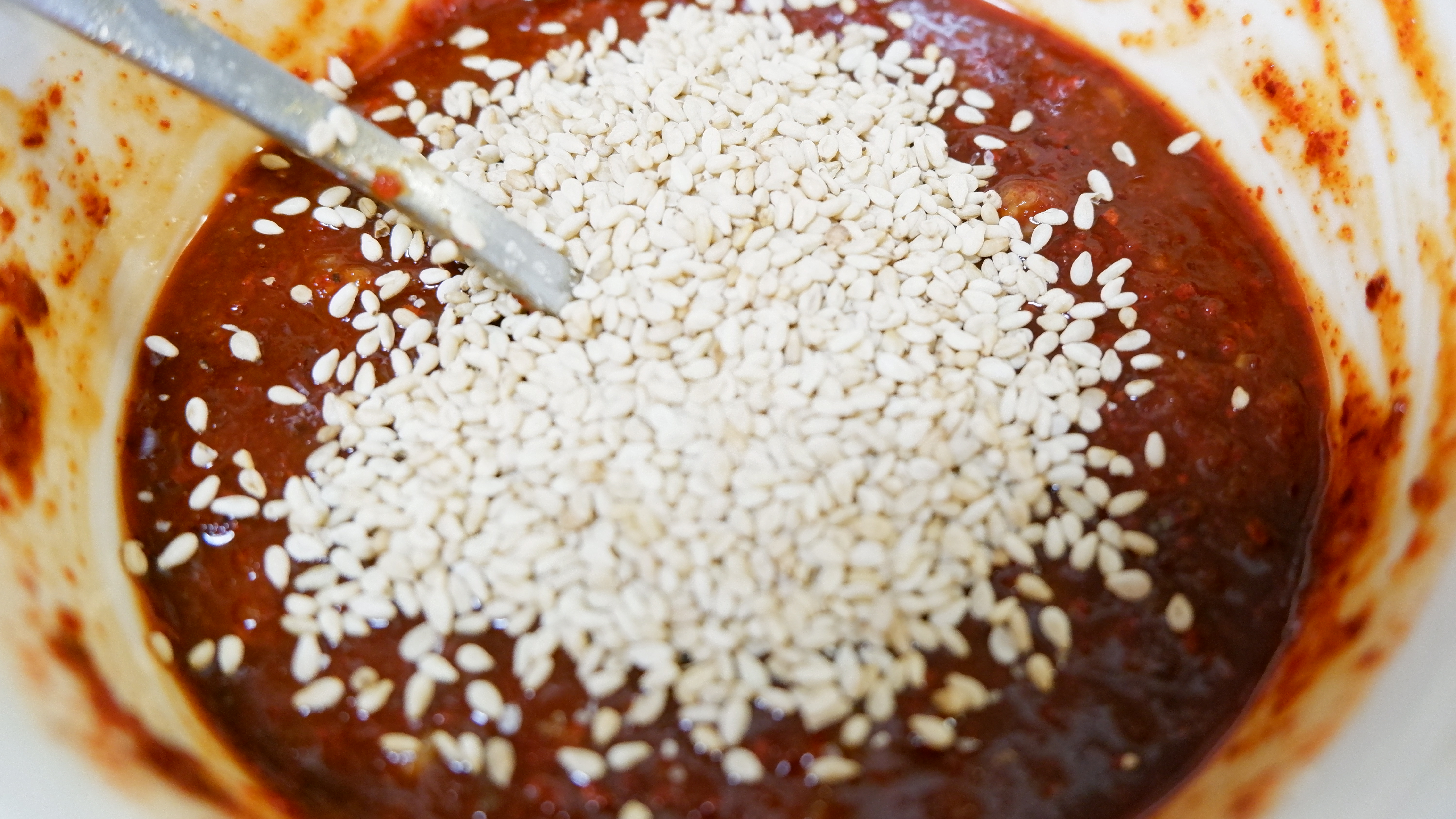 백종원님은 조미료를 컵에 1:1:1:1:1:1로 맞췄지만 조미료 하나하나 컵에 넣어 계량하는 게 번거로워서 전 숟가락으로 계량을 해줬어요! 종이컵이 쉬우시면 고춧가루 , 고추장 , 맛술 , 간장 , 간 마늘 , 설탕을 컵에 넣어 부피로 1:1:1:1:1:1을 맞춰 양념장을 만들어 주시면 됩니다.