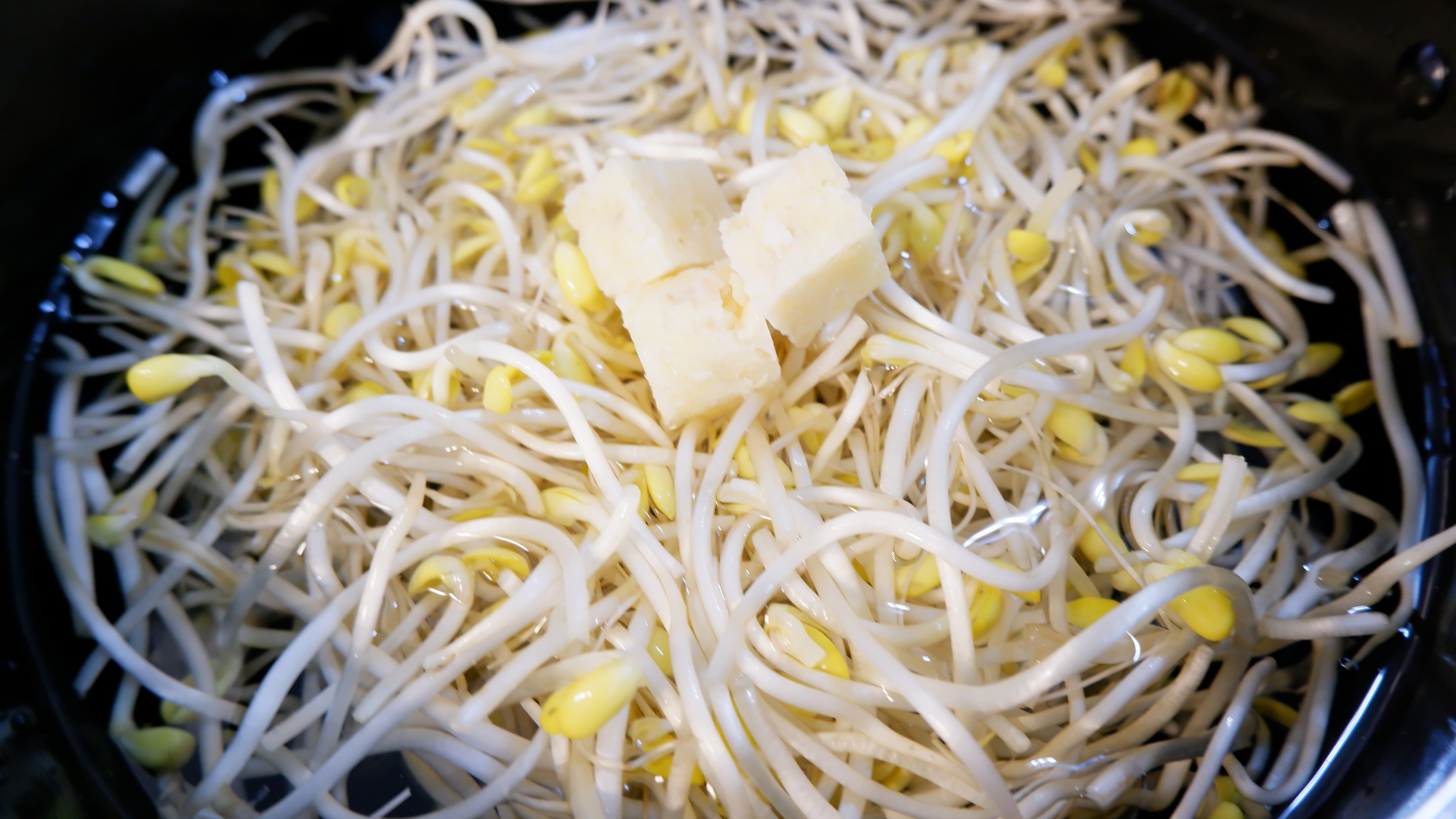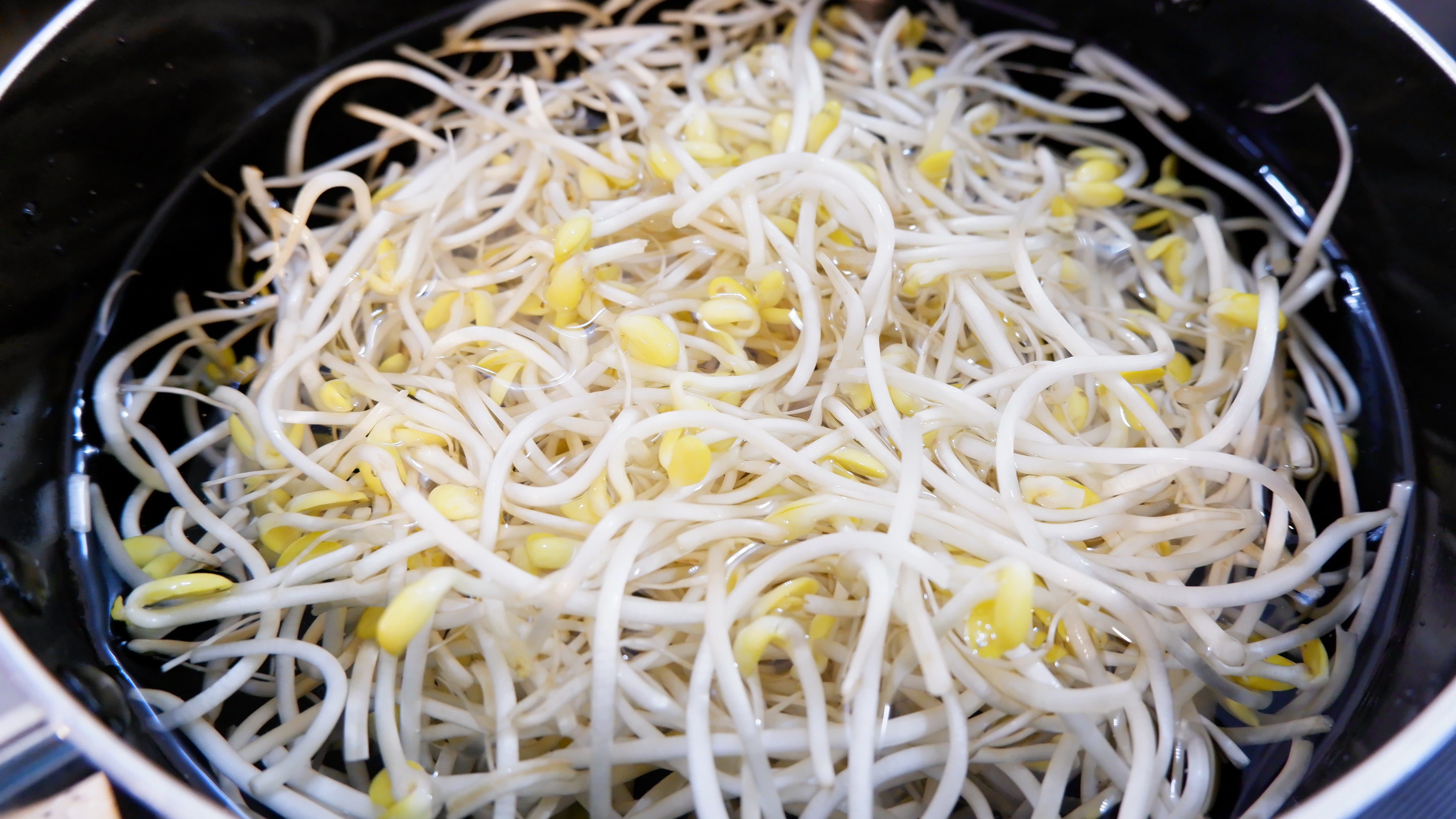 1. 콩나물 300~350g을 준비하고 흐르는 물에 2~3번 정도 헹궈 남아있는 콩껍질이나 검게 상한 부분을 제거하고 물기를 빼줍니다.