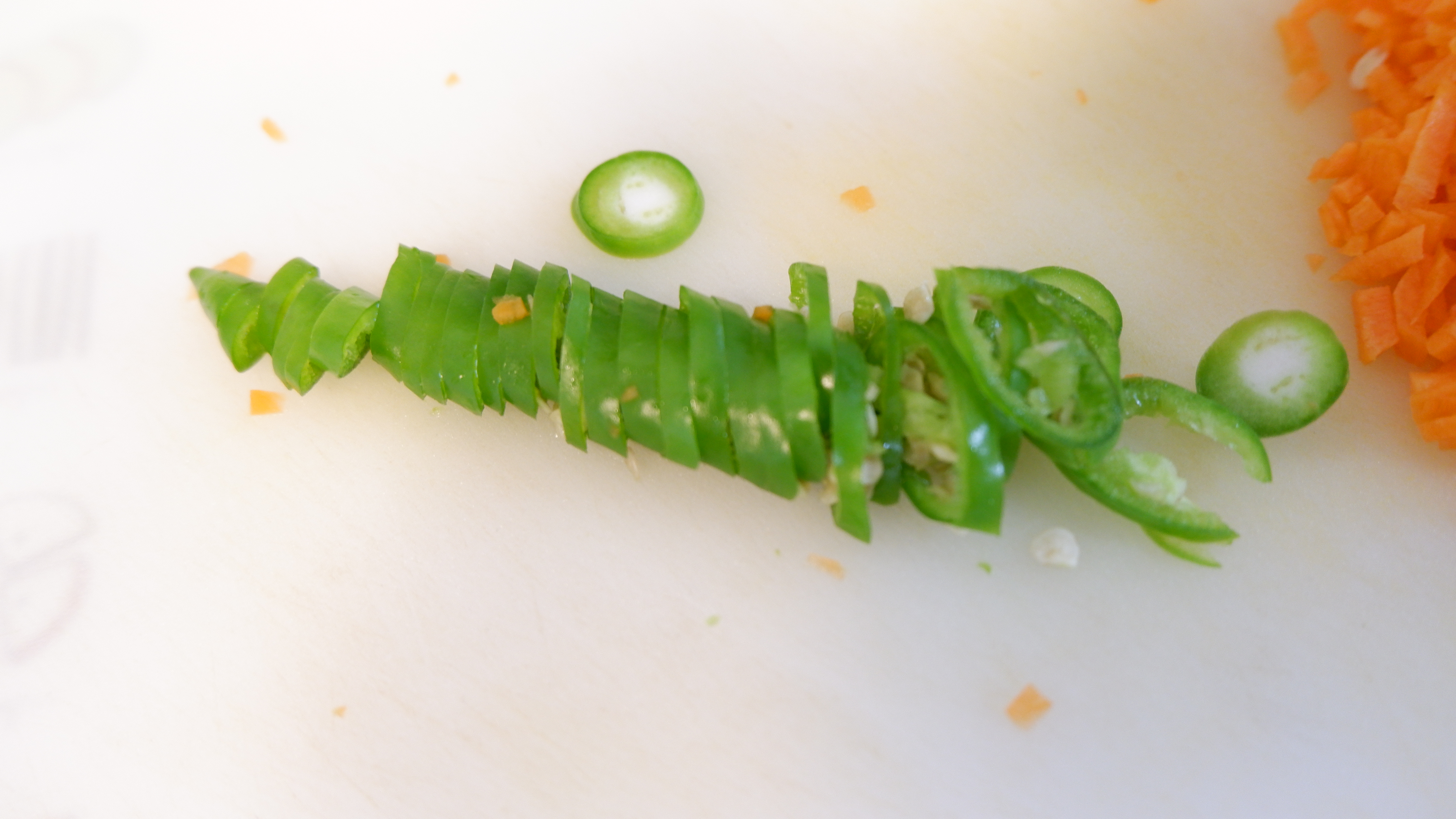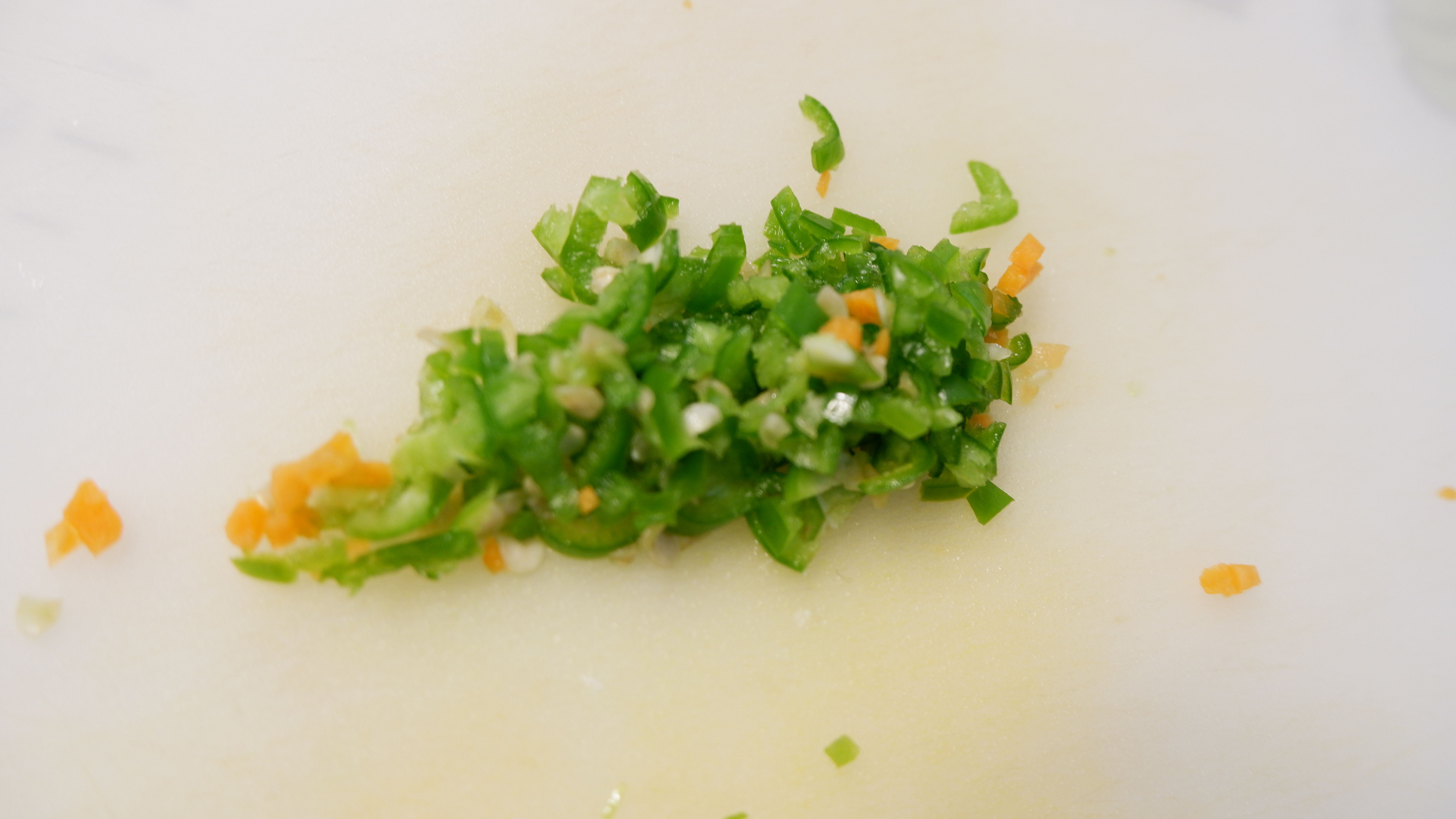 1. 청양고추 1개 , 당근 (한 큰 술 정도의 양) , 대파 ( 한 줌 될 양)를 손질하고 청양고추와 당근은 잘게 썰어 주고 대파는 송송 썰어 준비해줍니다.
