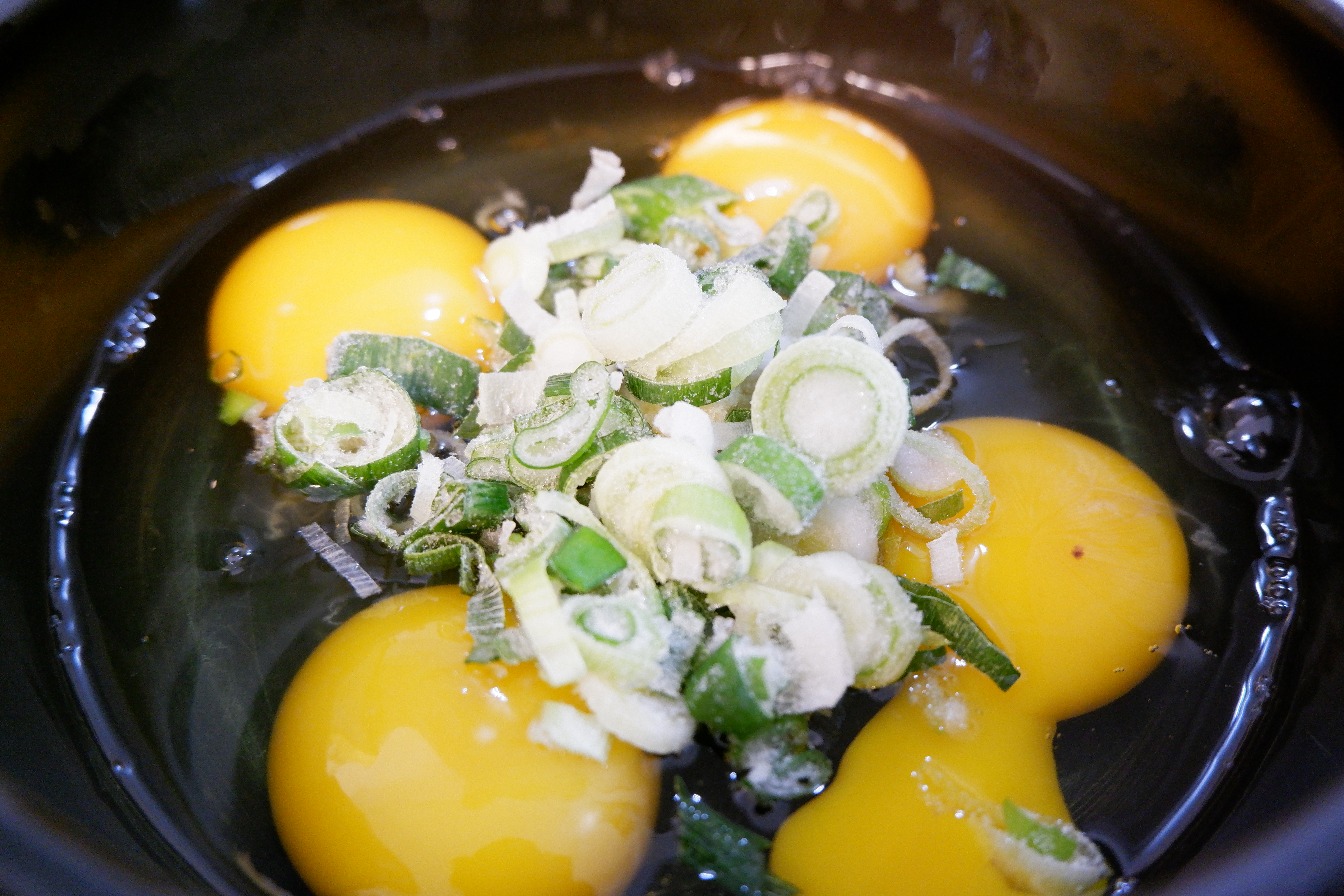 2. 모든 재료가 준비됐다면 뚝배기에 계란 4개 , 다진 마늘 1/2큰술 , 송송 썬 대파 한 줌 , 다진 당근 1큰술 , 다진 청양고추 , 물 300ml를 넣고 계란이 풀어질 때까지 저어주세요!