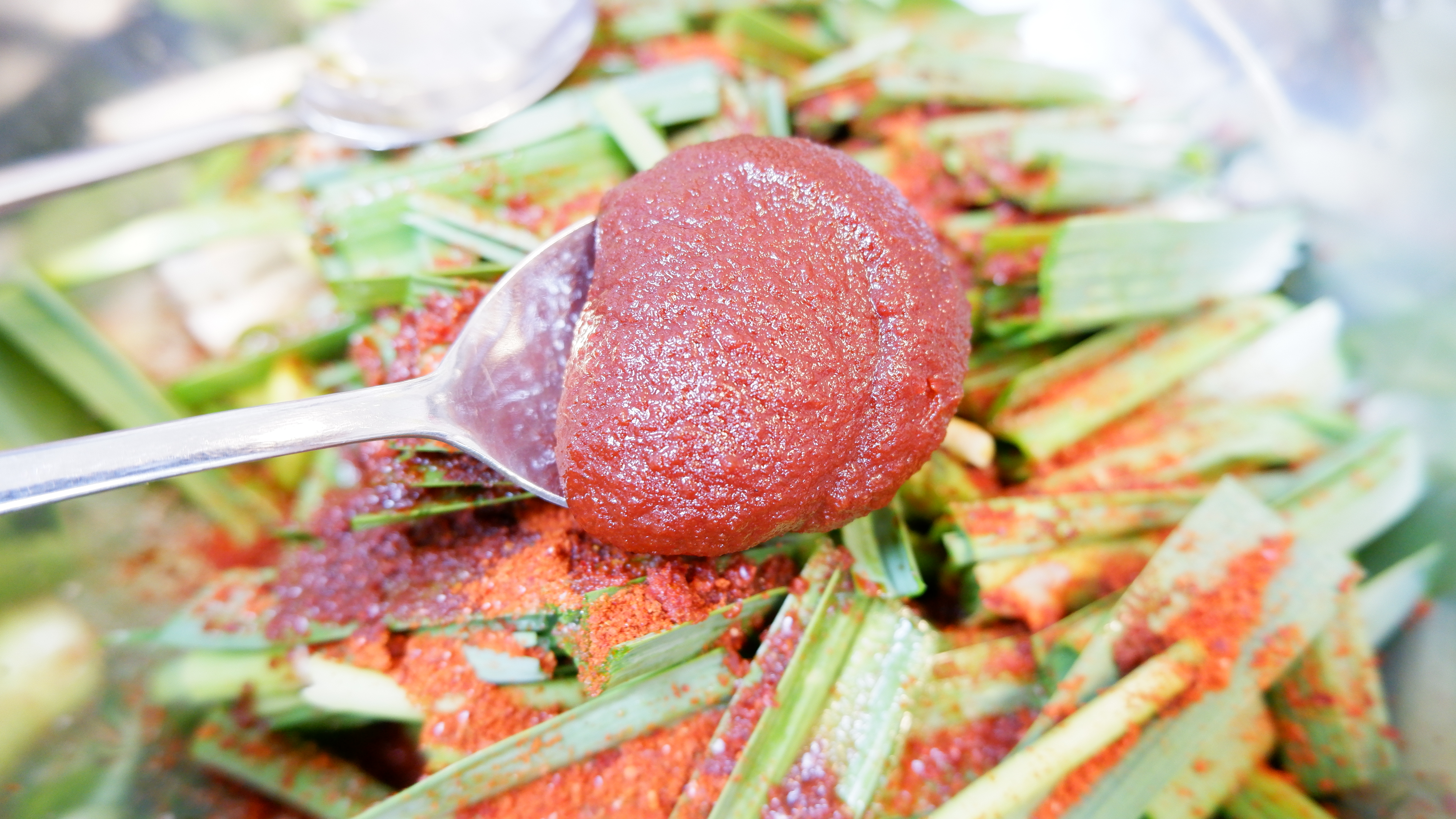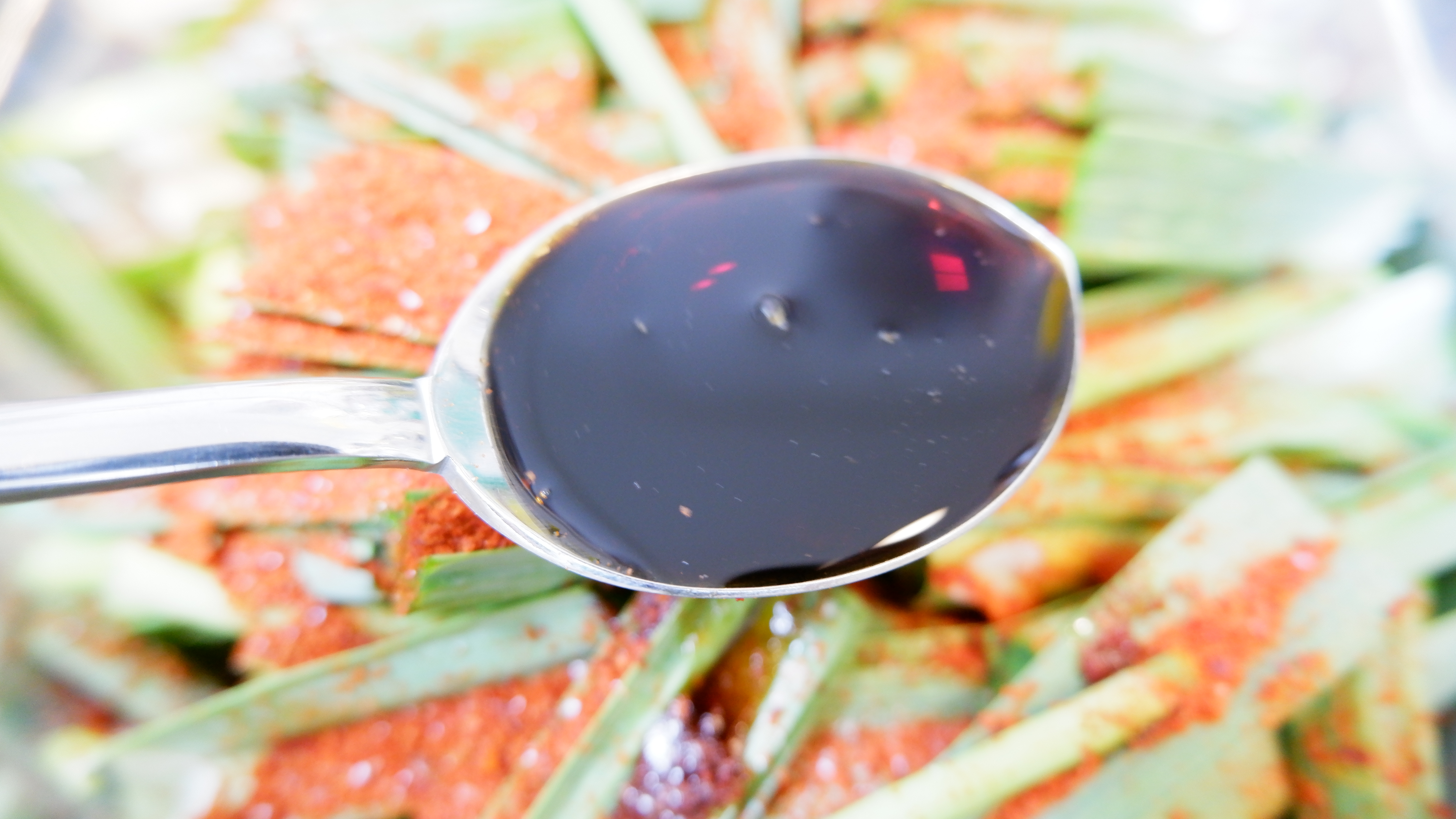 5. 풋마늘이 준비 됬다면 양념을 할 차례인데 풋마늘 무침 양념은 고추장 1큰술 반 , 진간장 2큰술 , 식초 2큰술 , 고춧가루 2큰술 , 들기름 또는 참기름 1큰술 , 설탕 1/2큰술 , 통깨 1큰술을 넣어줍니다.