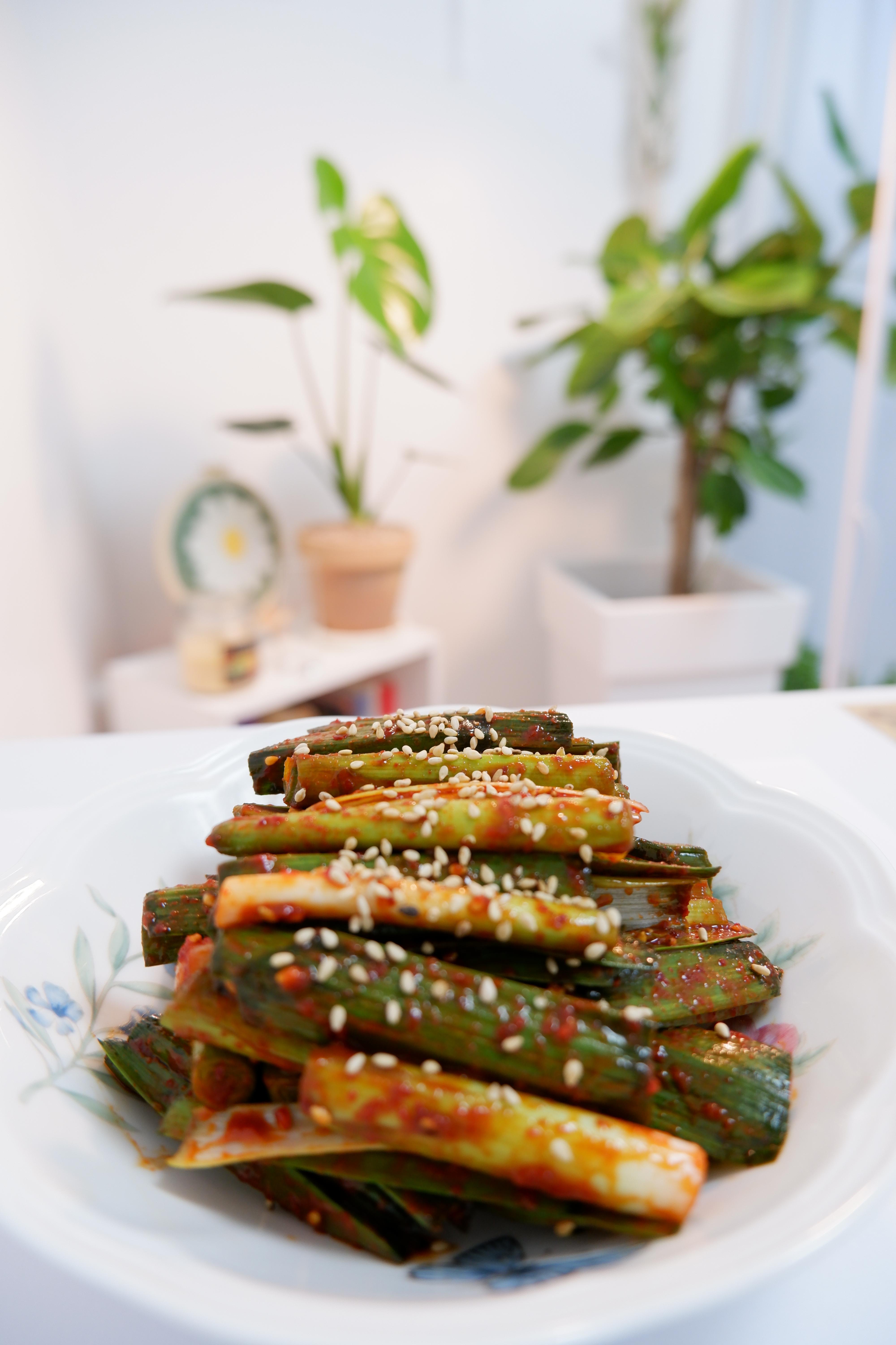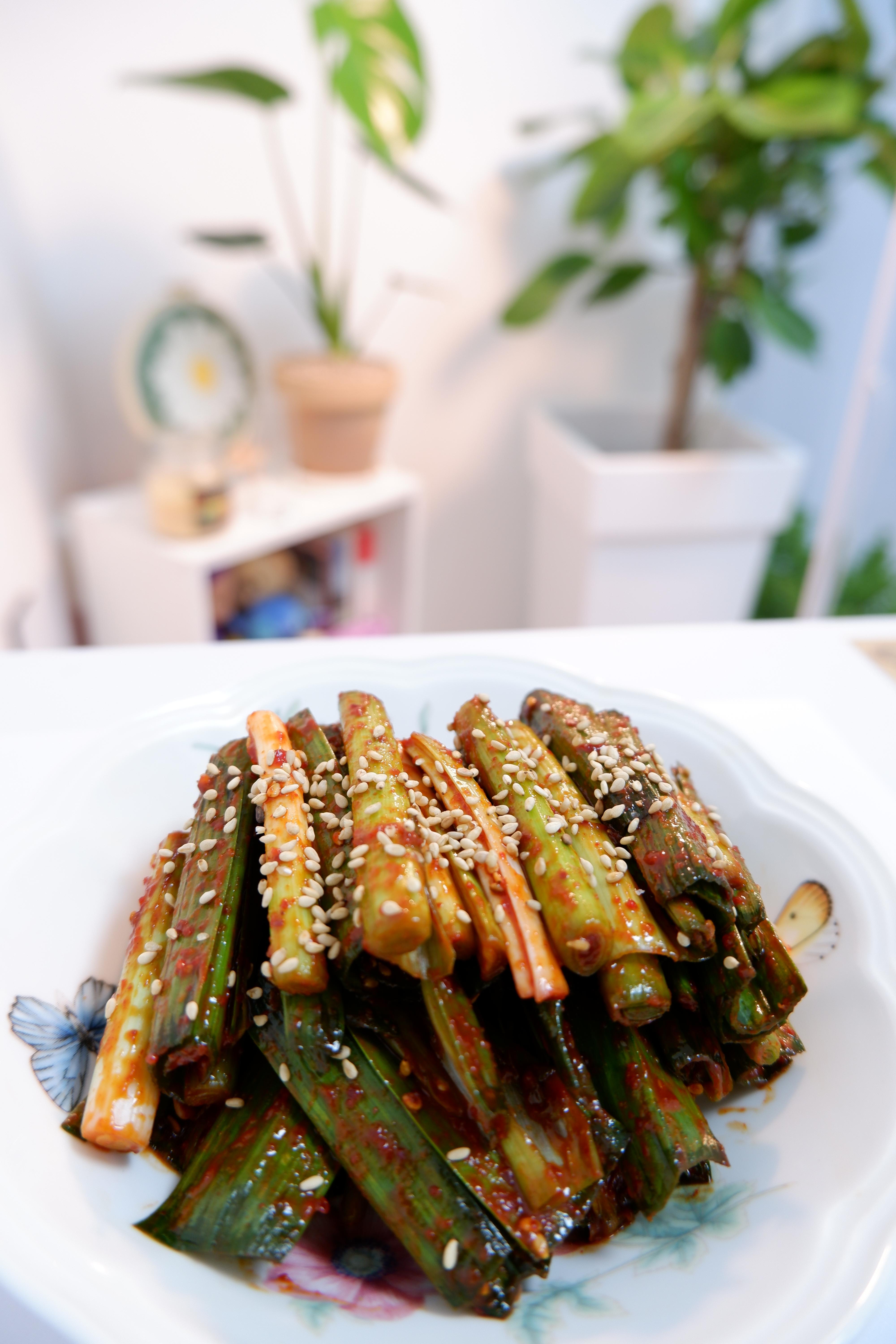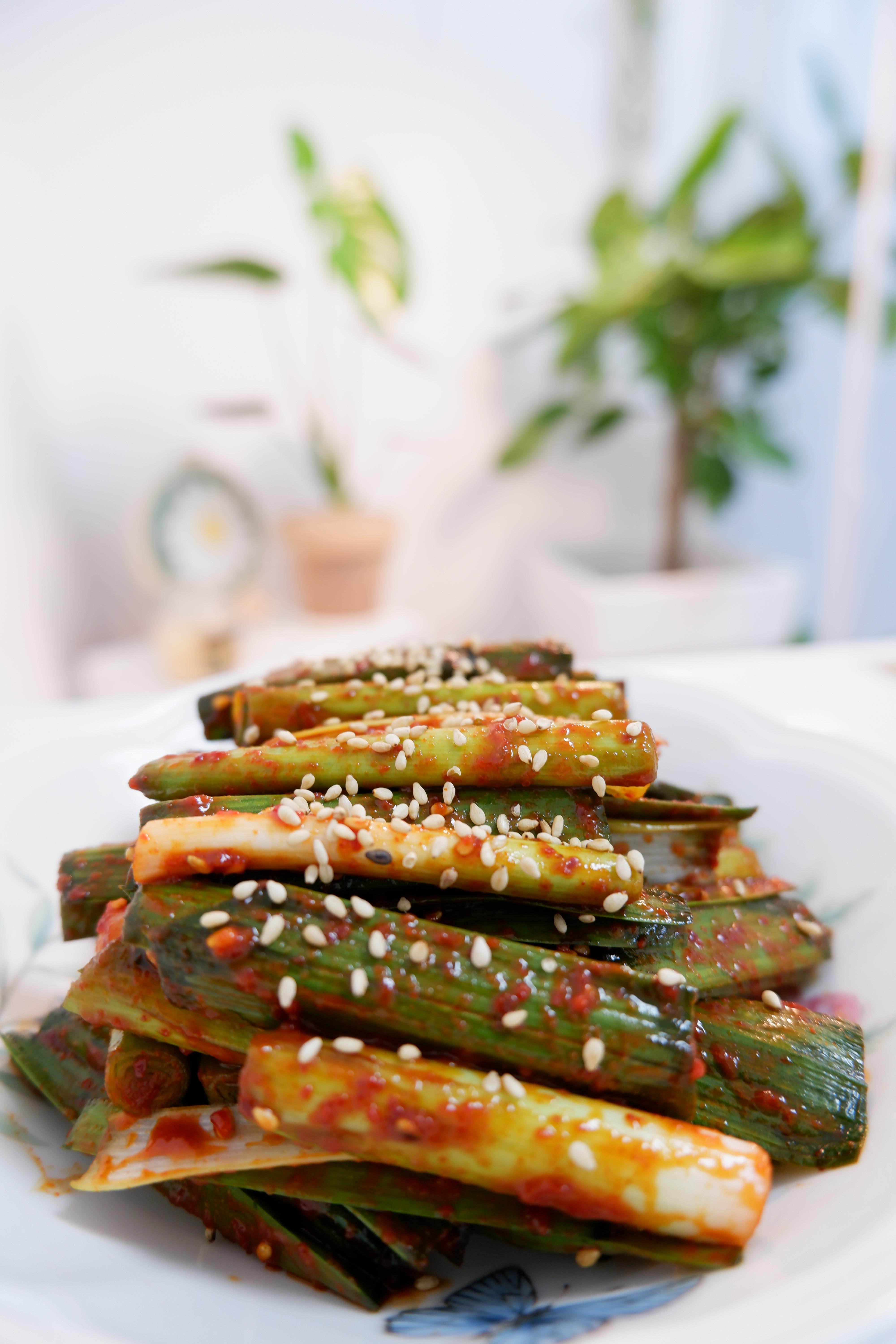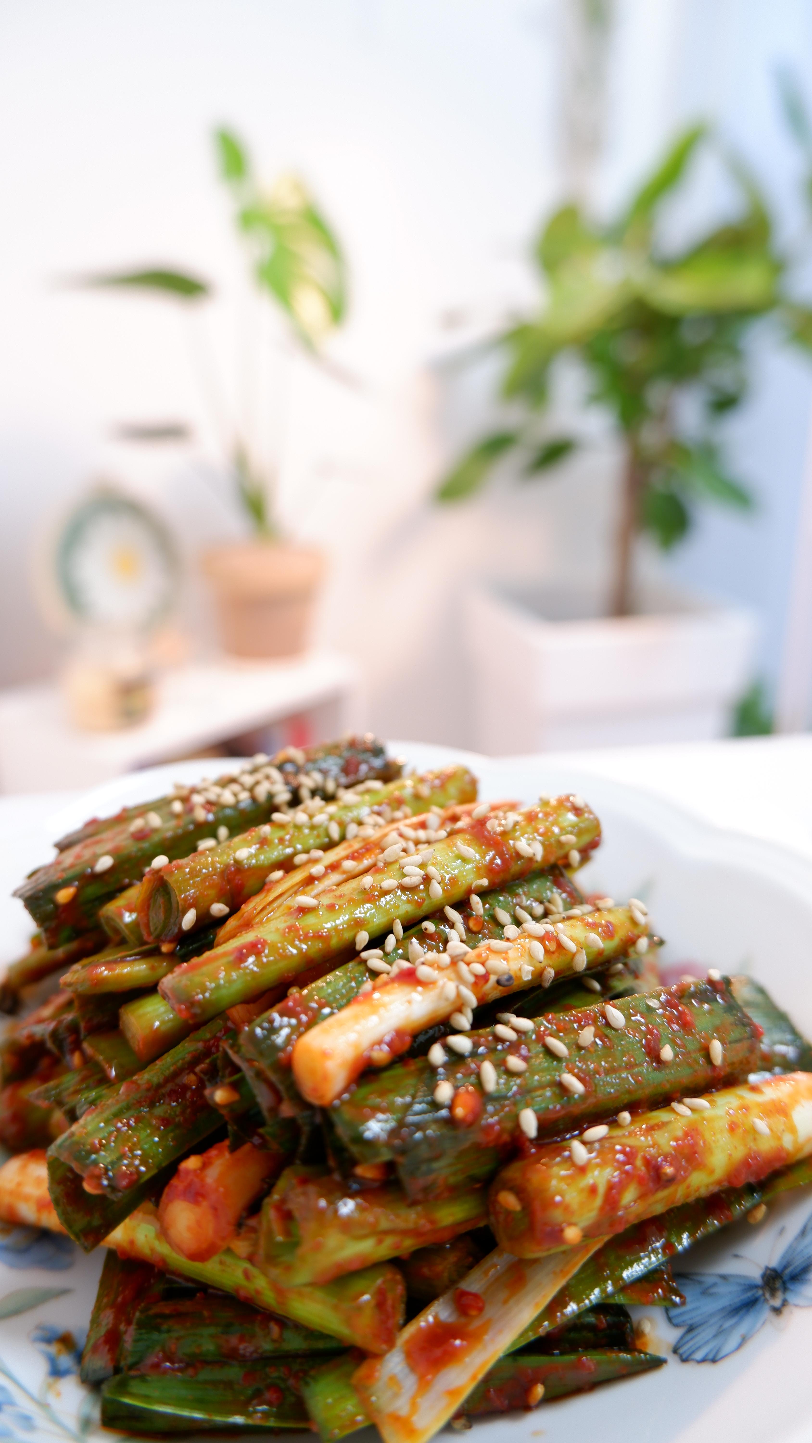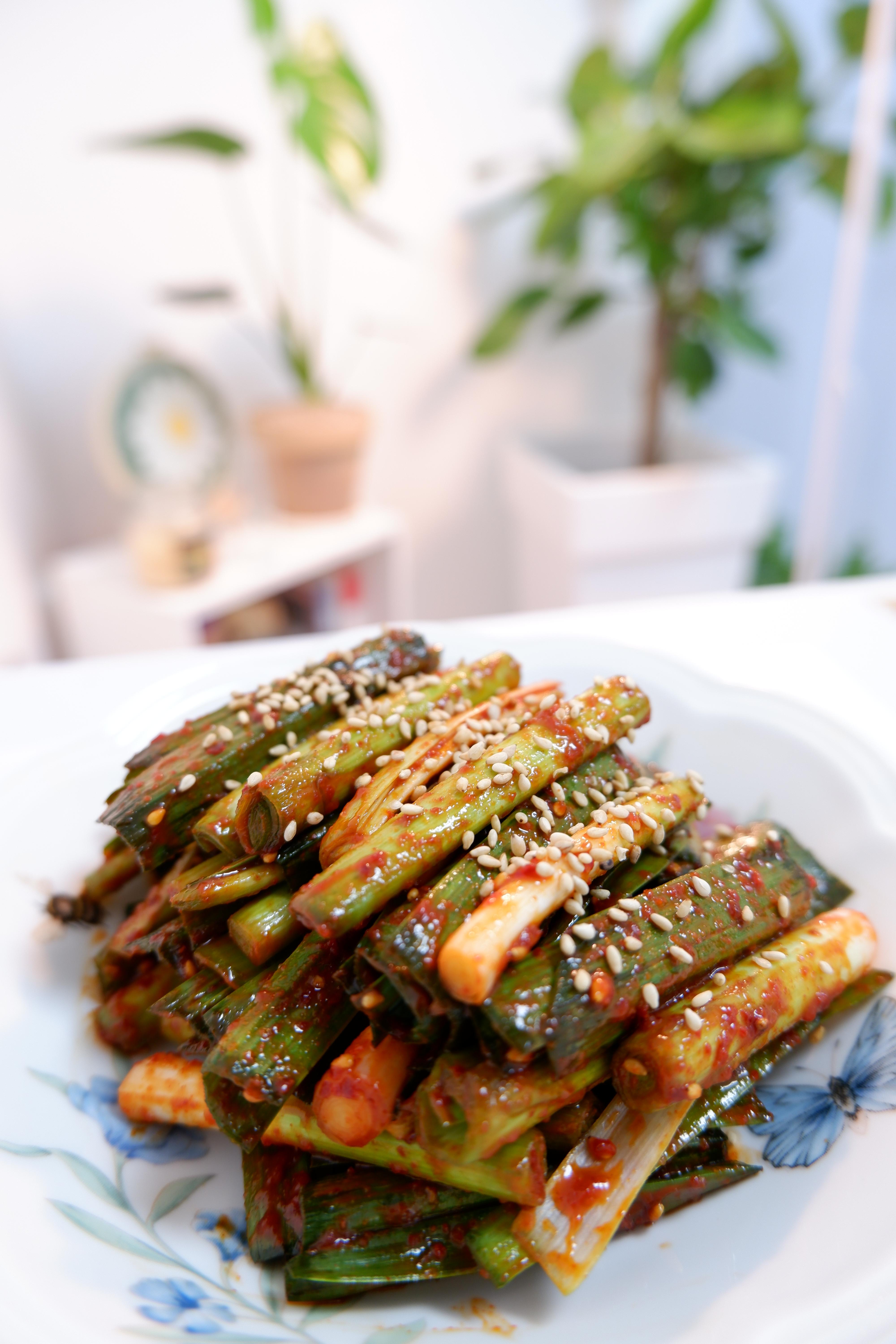 새콤달콤매콤한 풋마늘 무침이 완성됐어요!