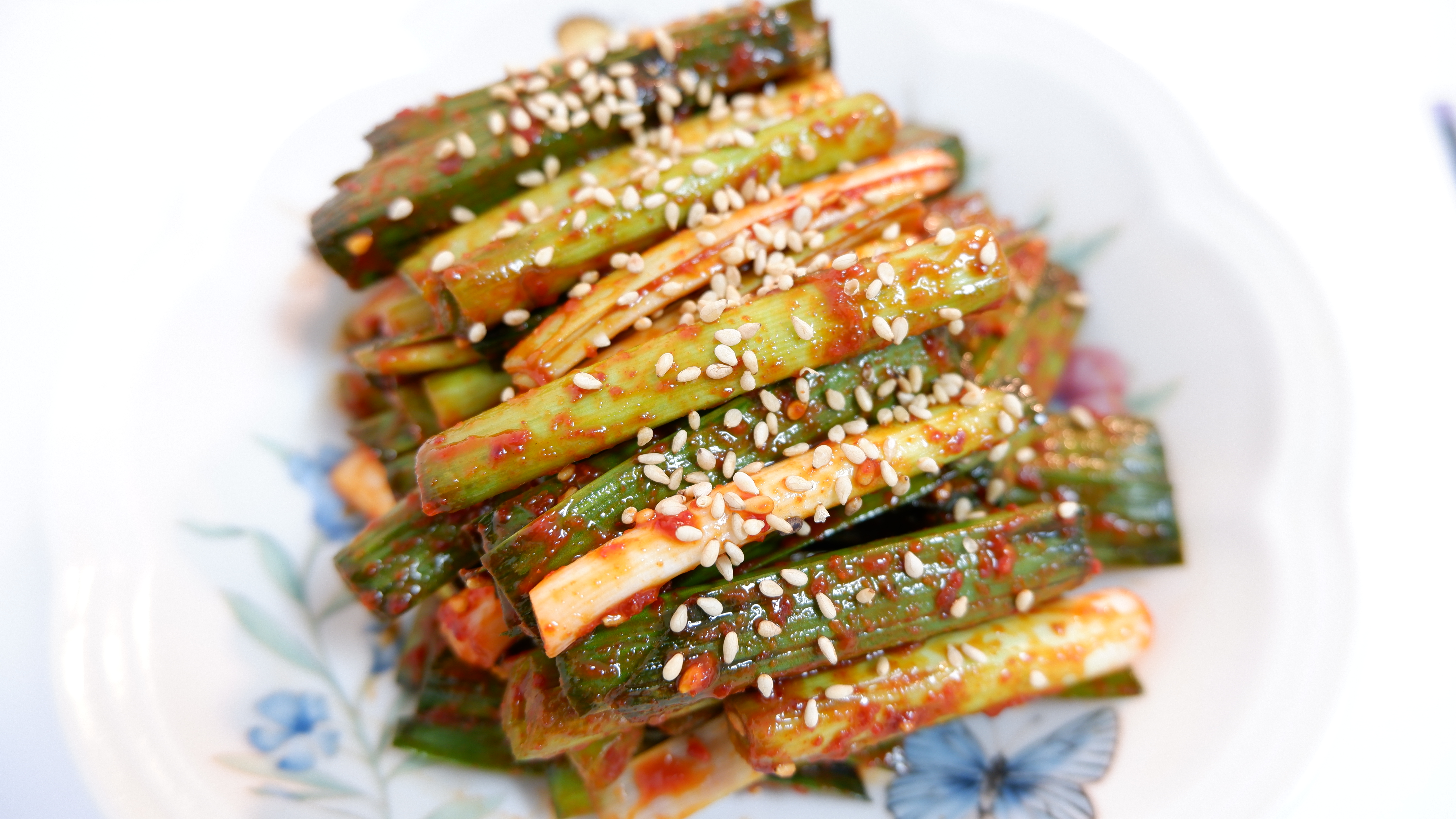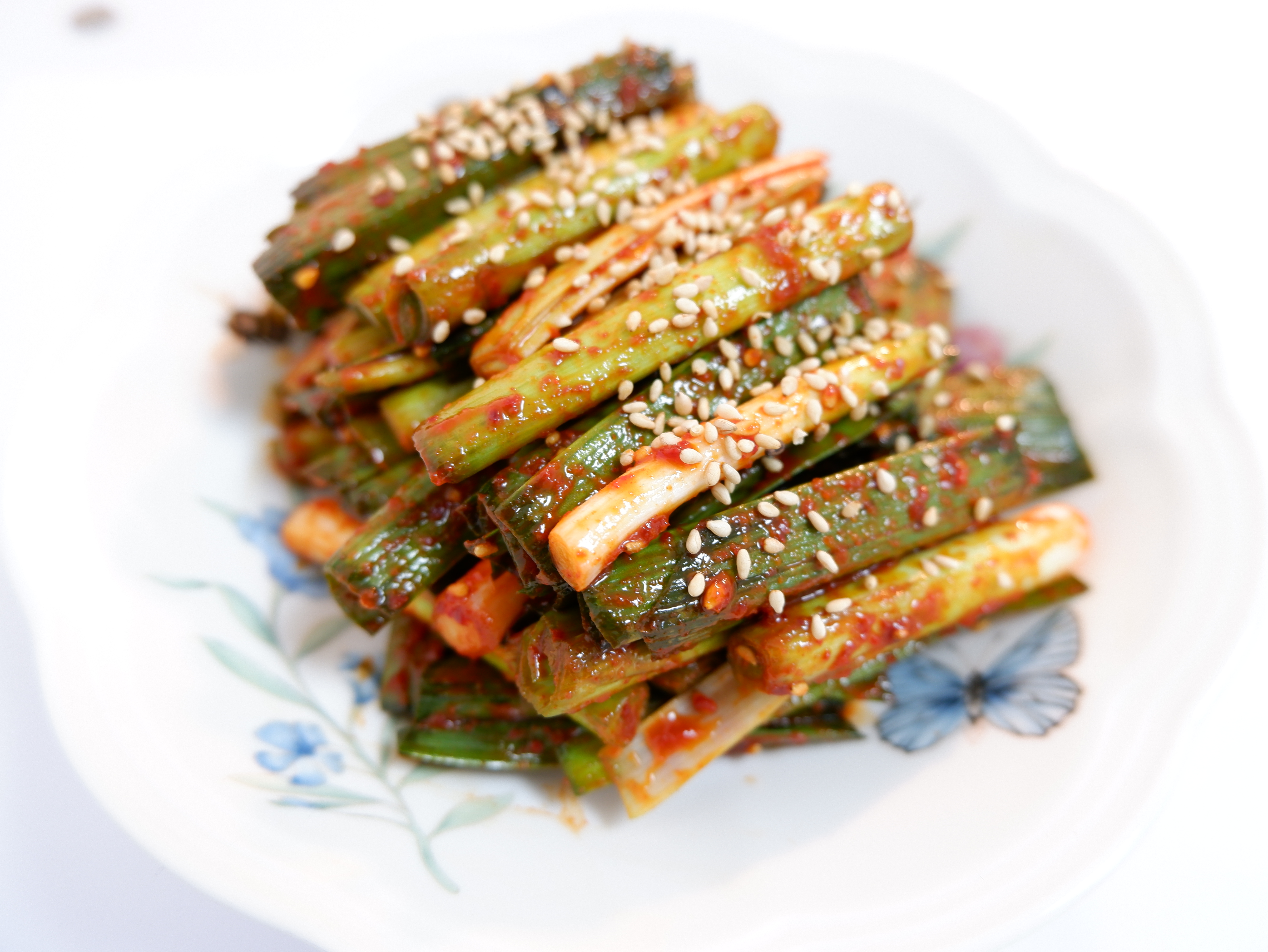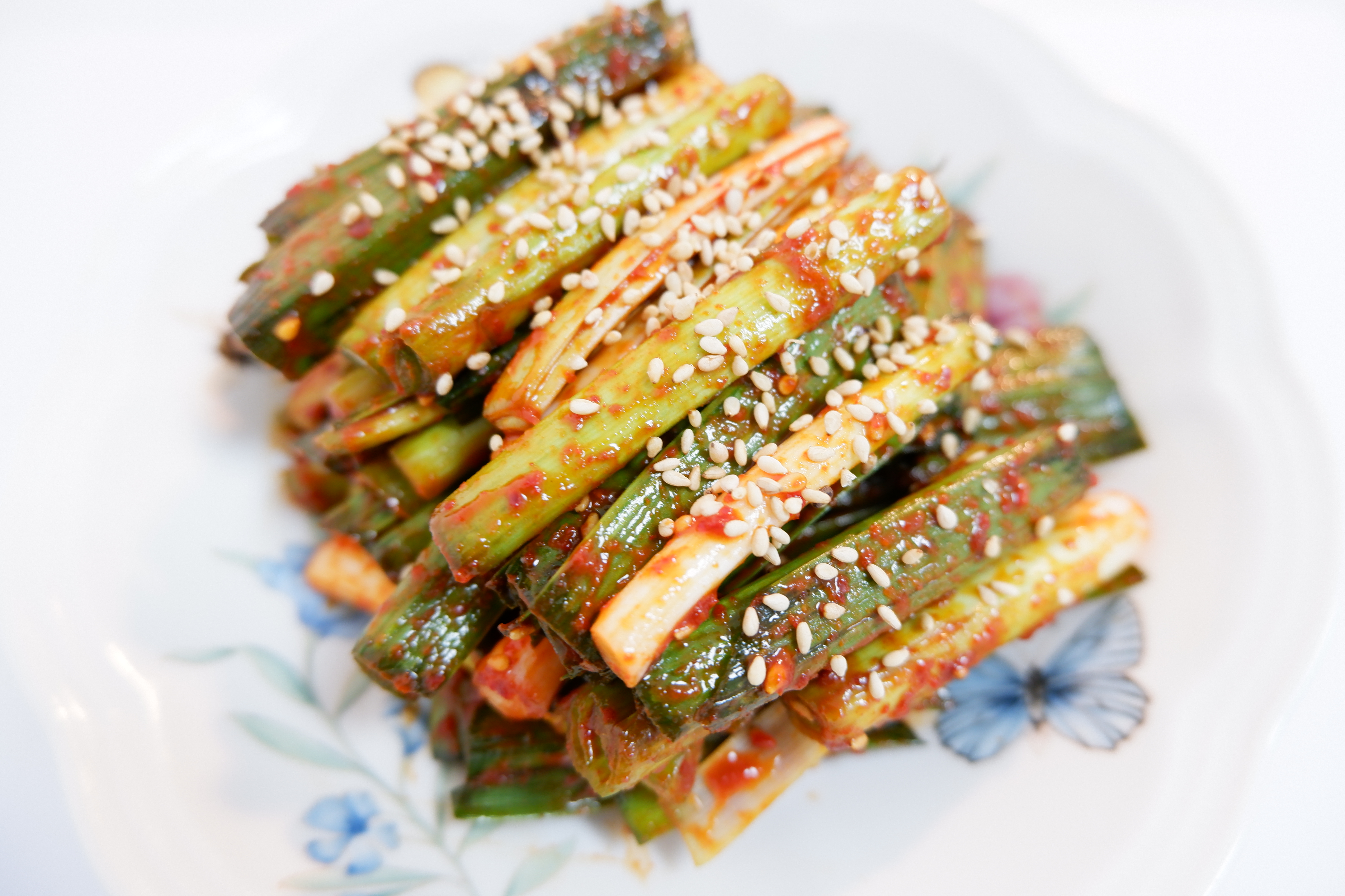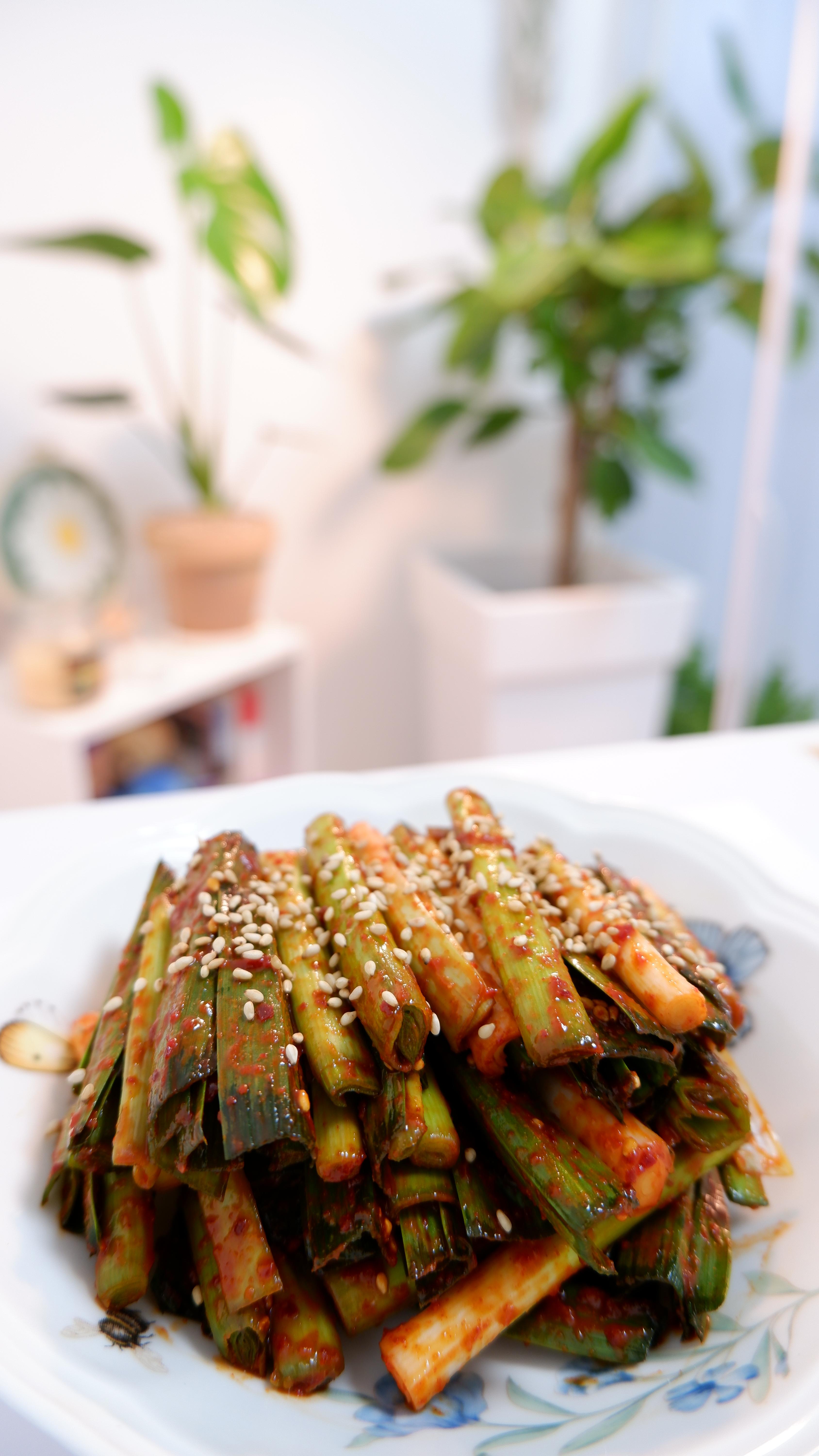 새콤달콤매콤한 풋마늘 무침이 완성됐어요!