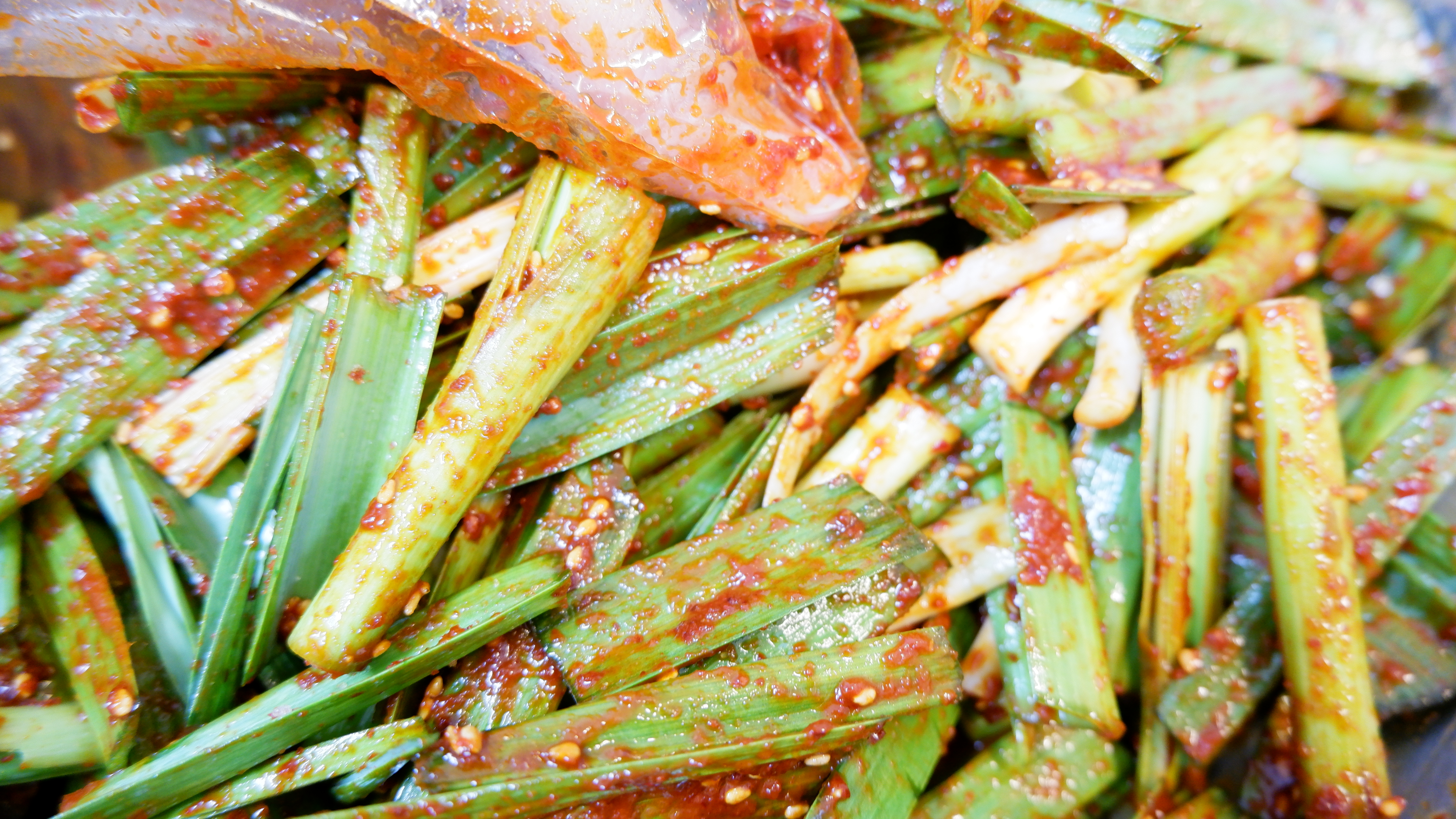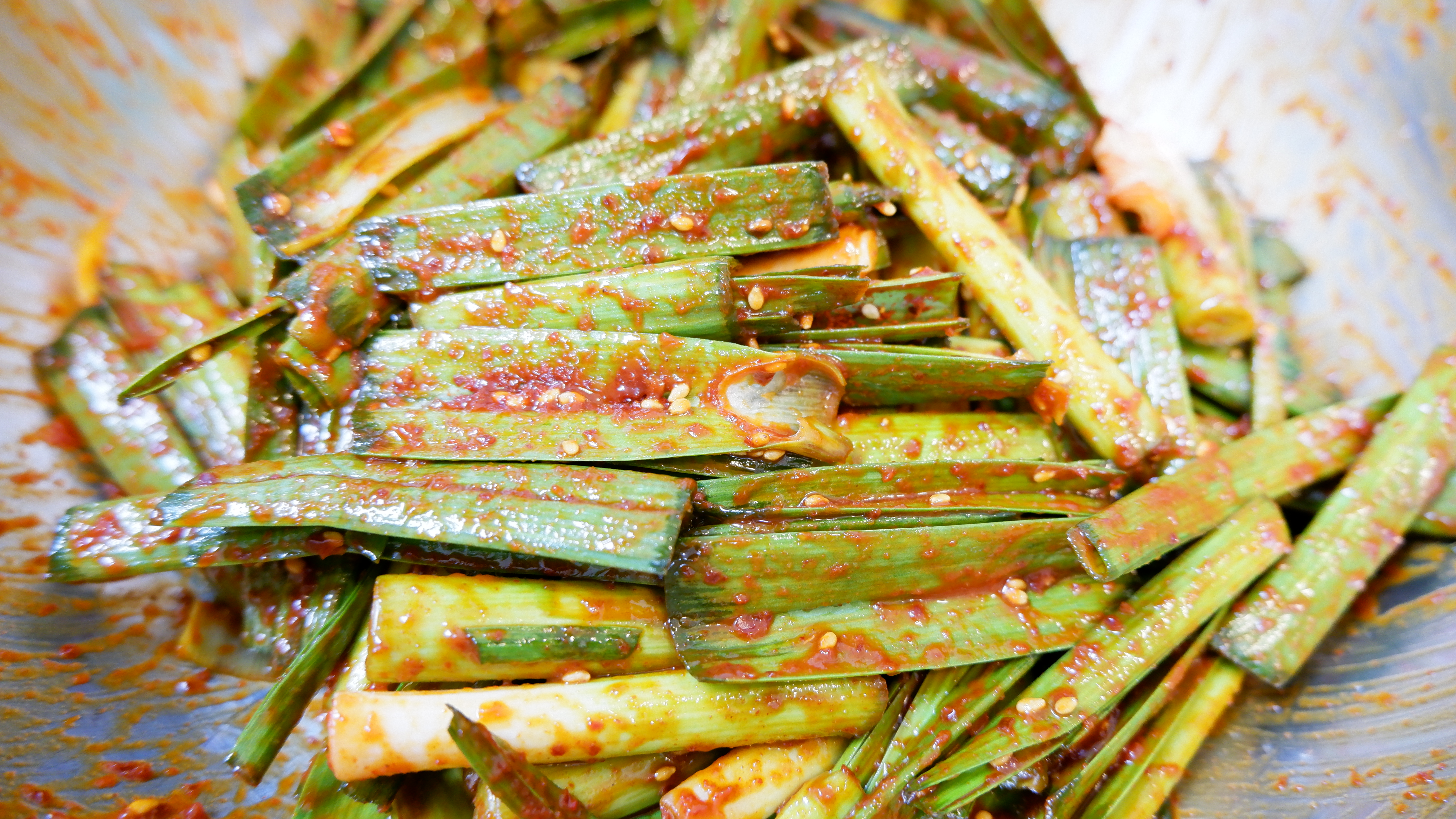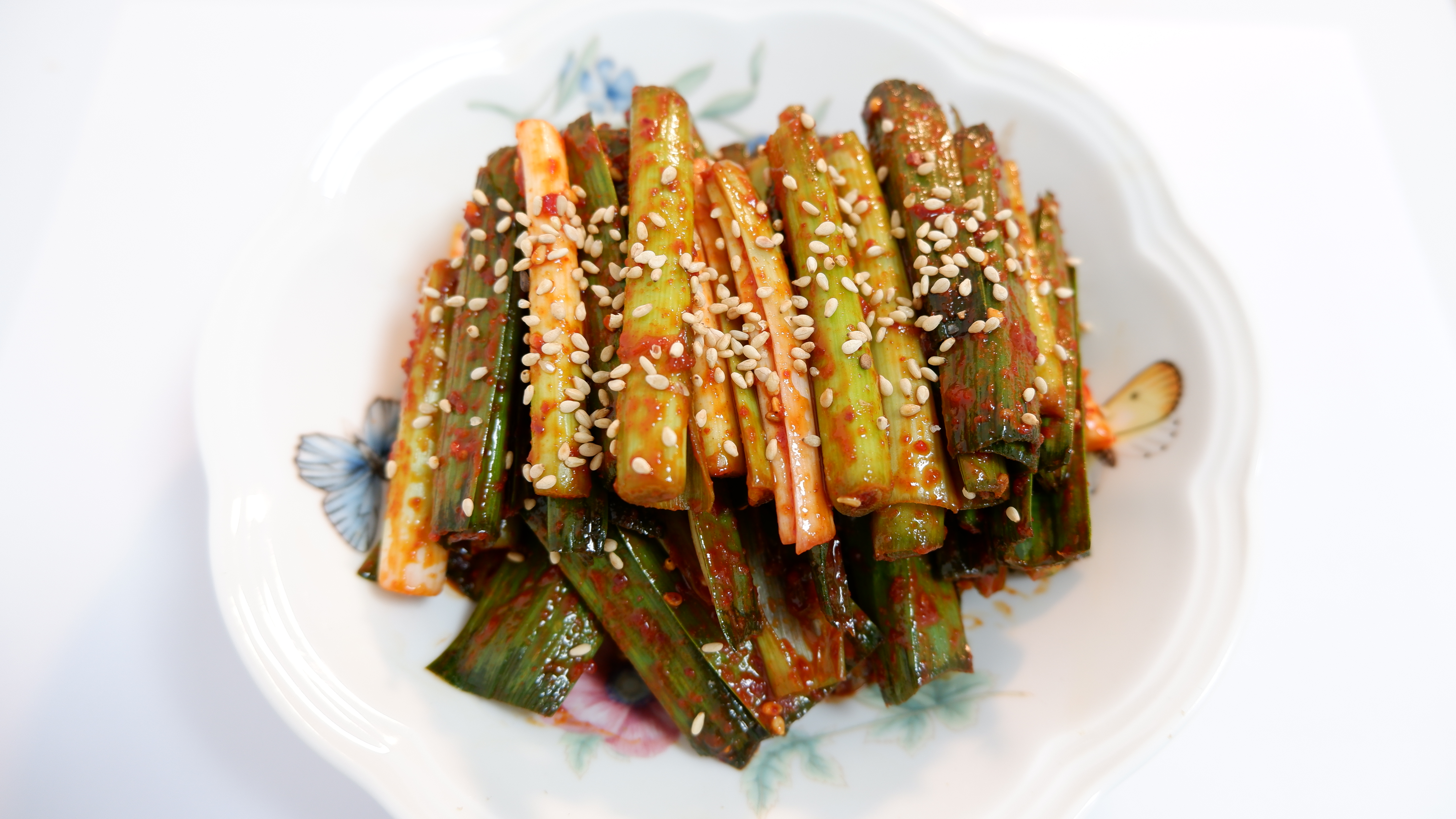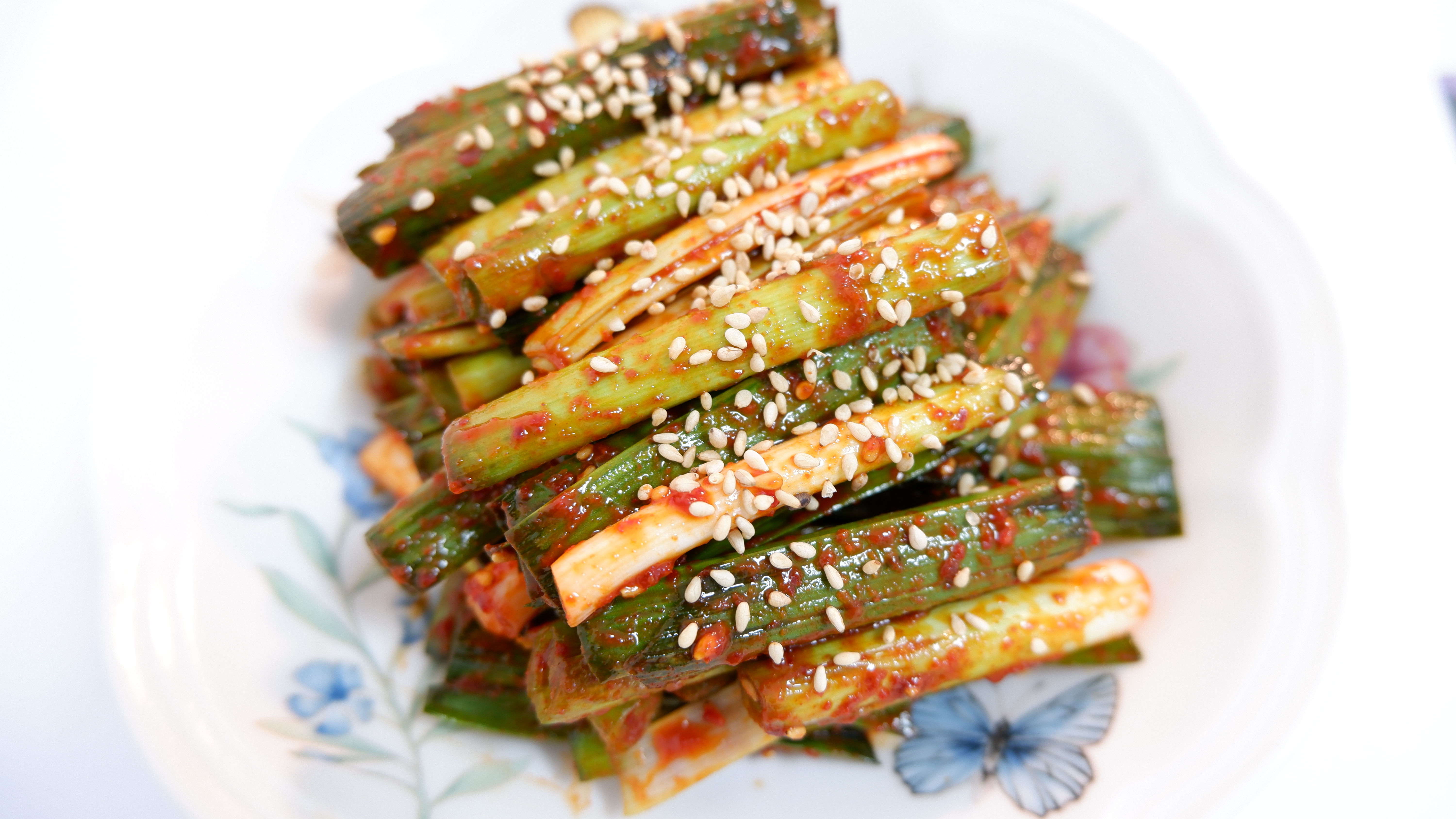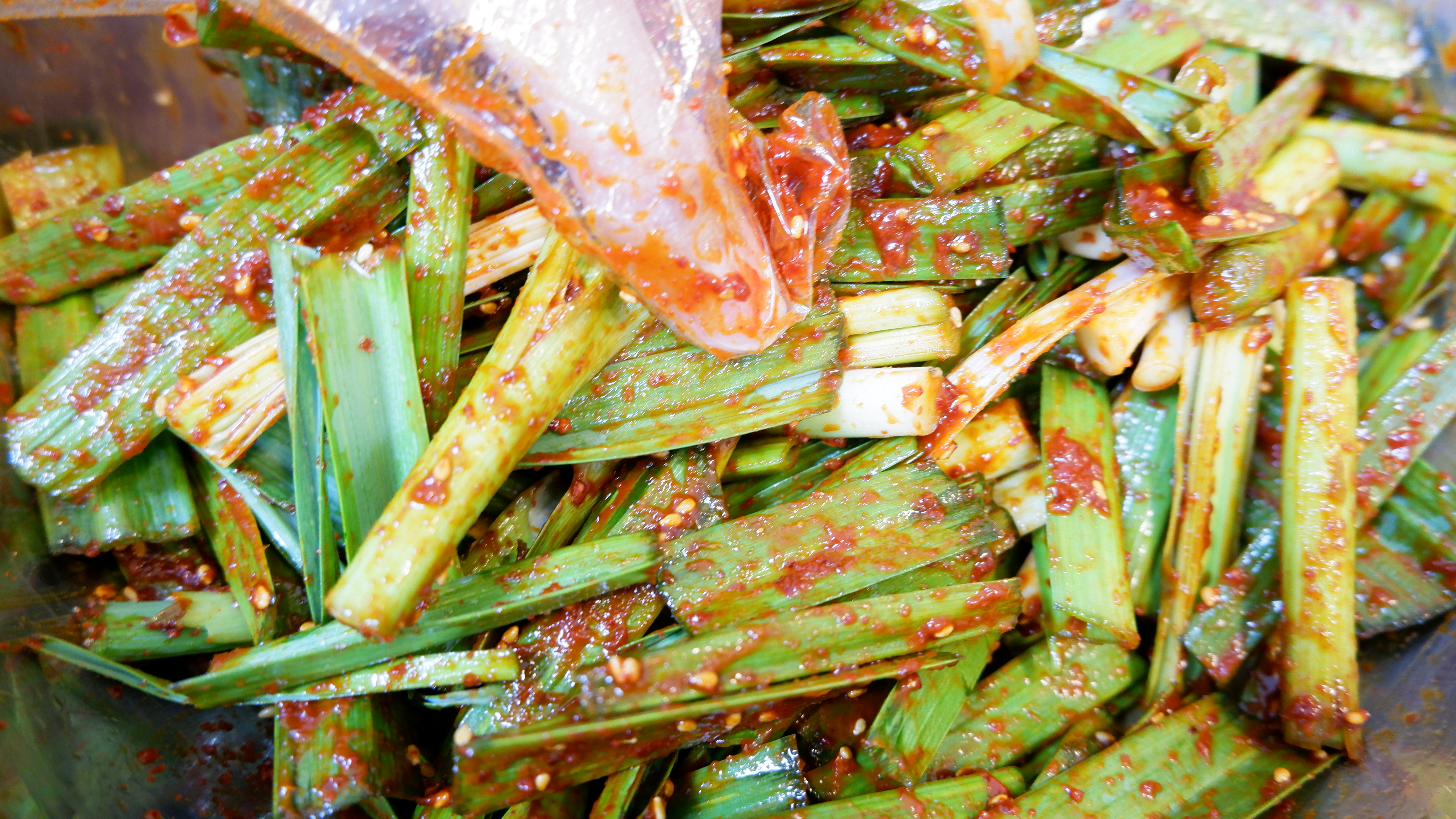 새콤달콤매콤한 풋마늘 무침이 완성됐어요!