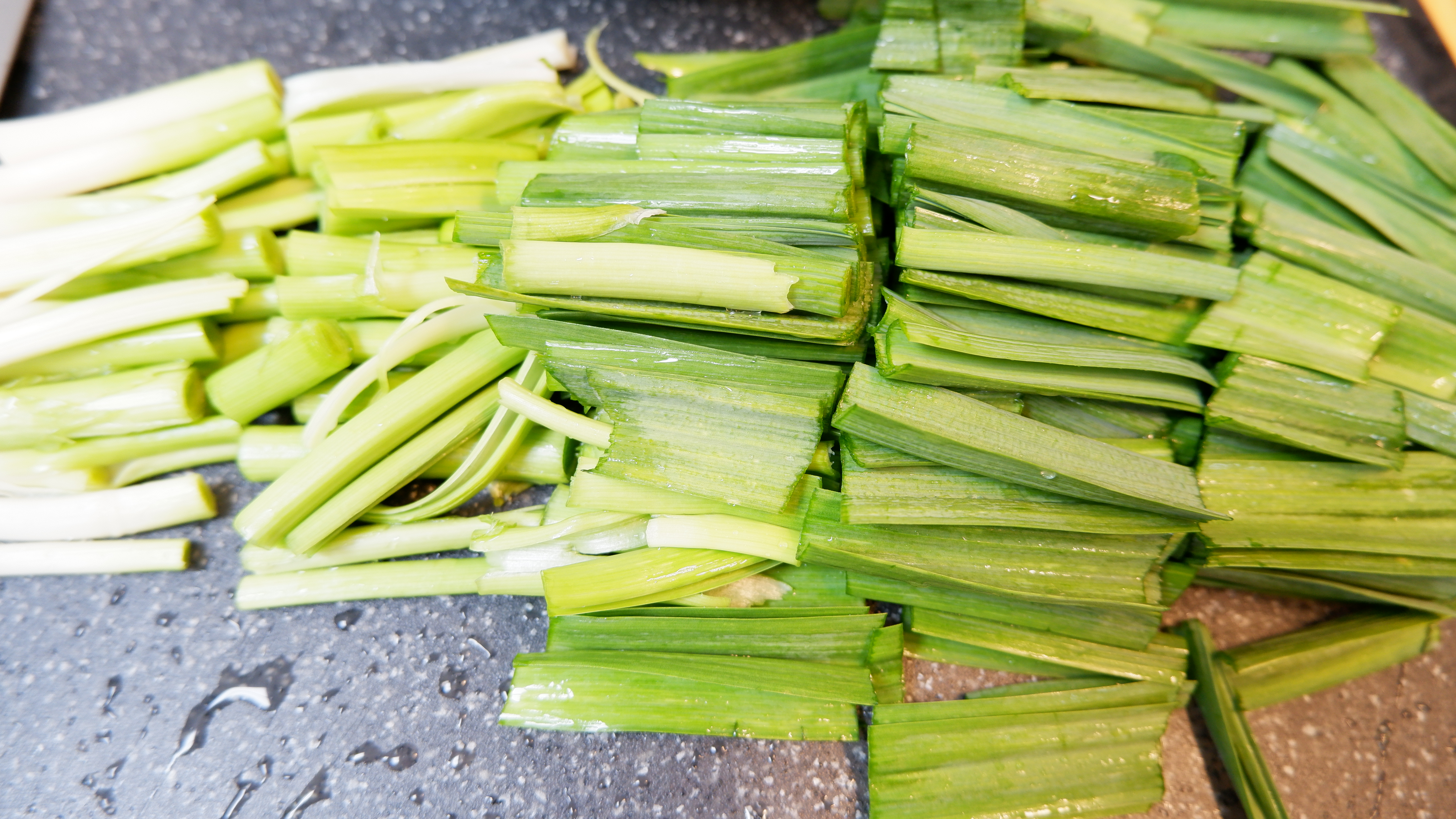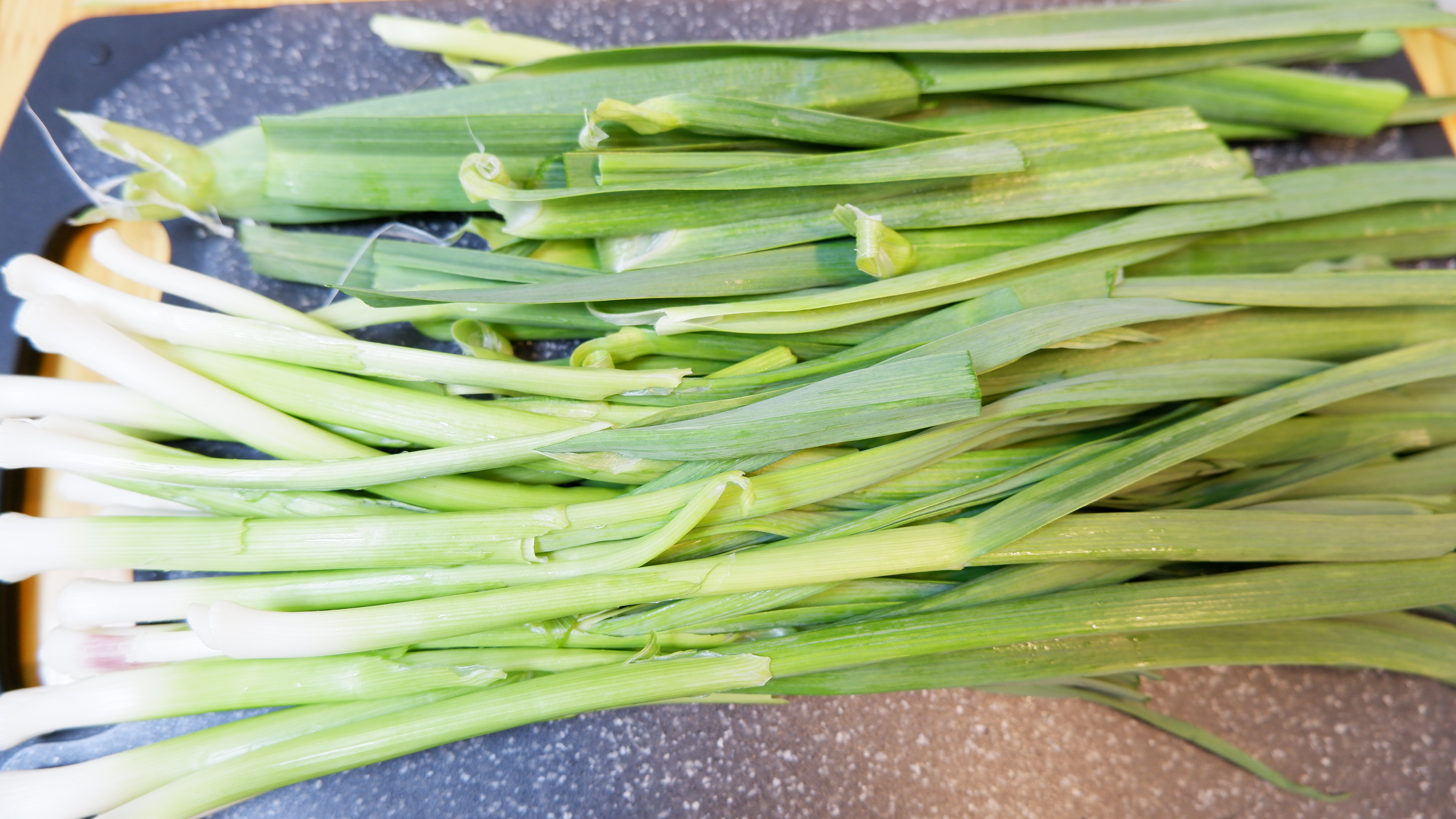 잎 사이사이도 꼼꼼하게 씻어낸 후 물기를 빼주세요! ( 전 손질되어 있는 풋마늘을 사용했기 때문에 이과정은 패스!)