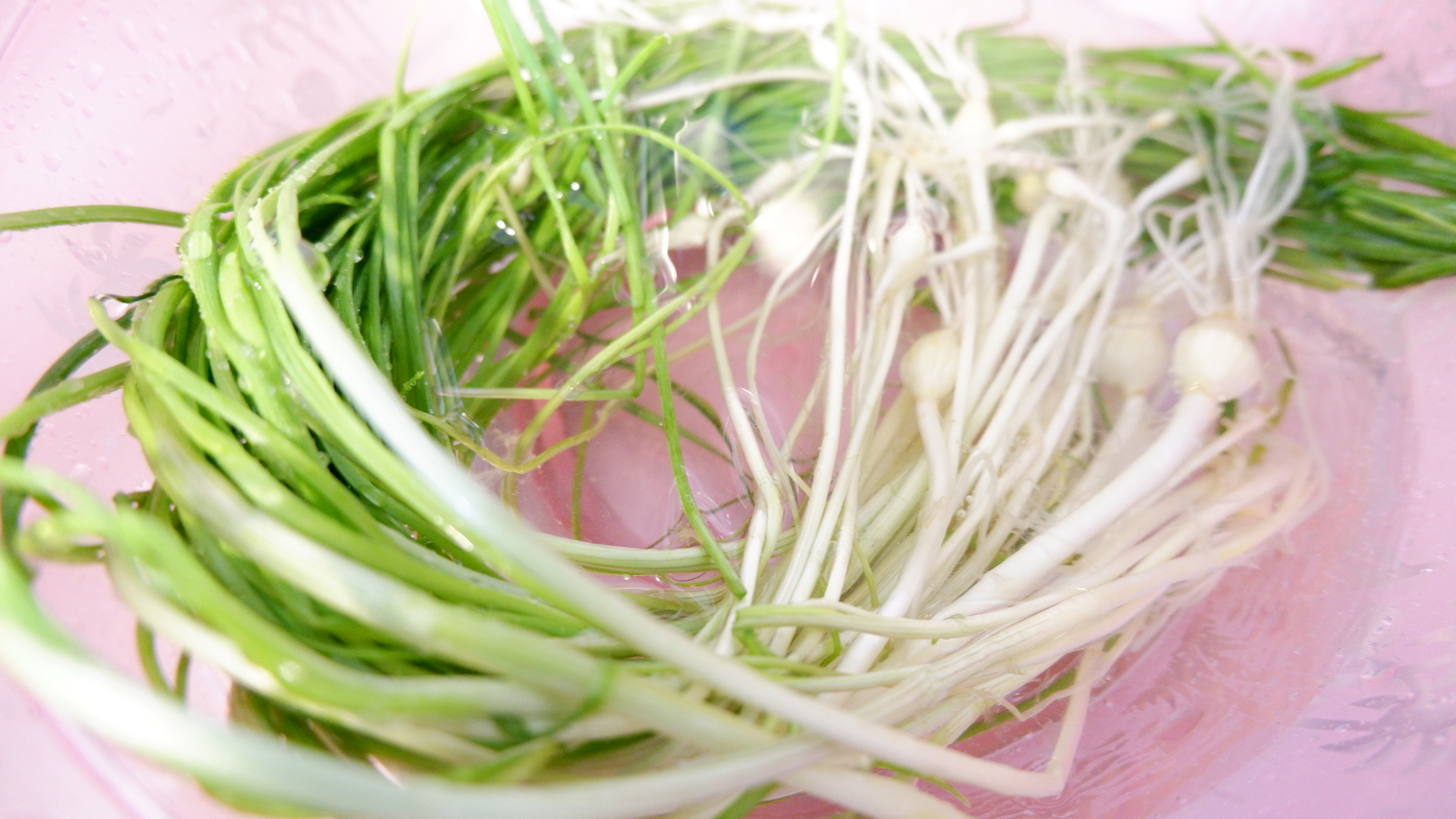 3. 달래를 깨끗하게 손질 후 달래에 남아있는 이물질이나 흙이 잘 씻겨 나갈 수 있도록 흐르는 물에 여러 번 헹궈 준 뒤 물기를 제거해 줍니다.