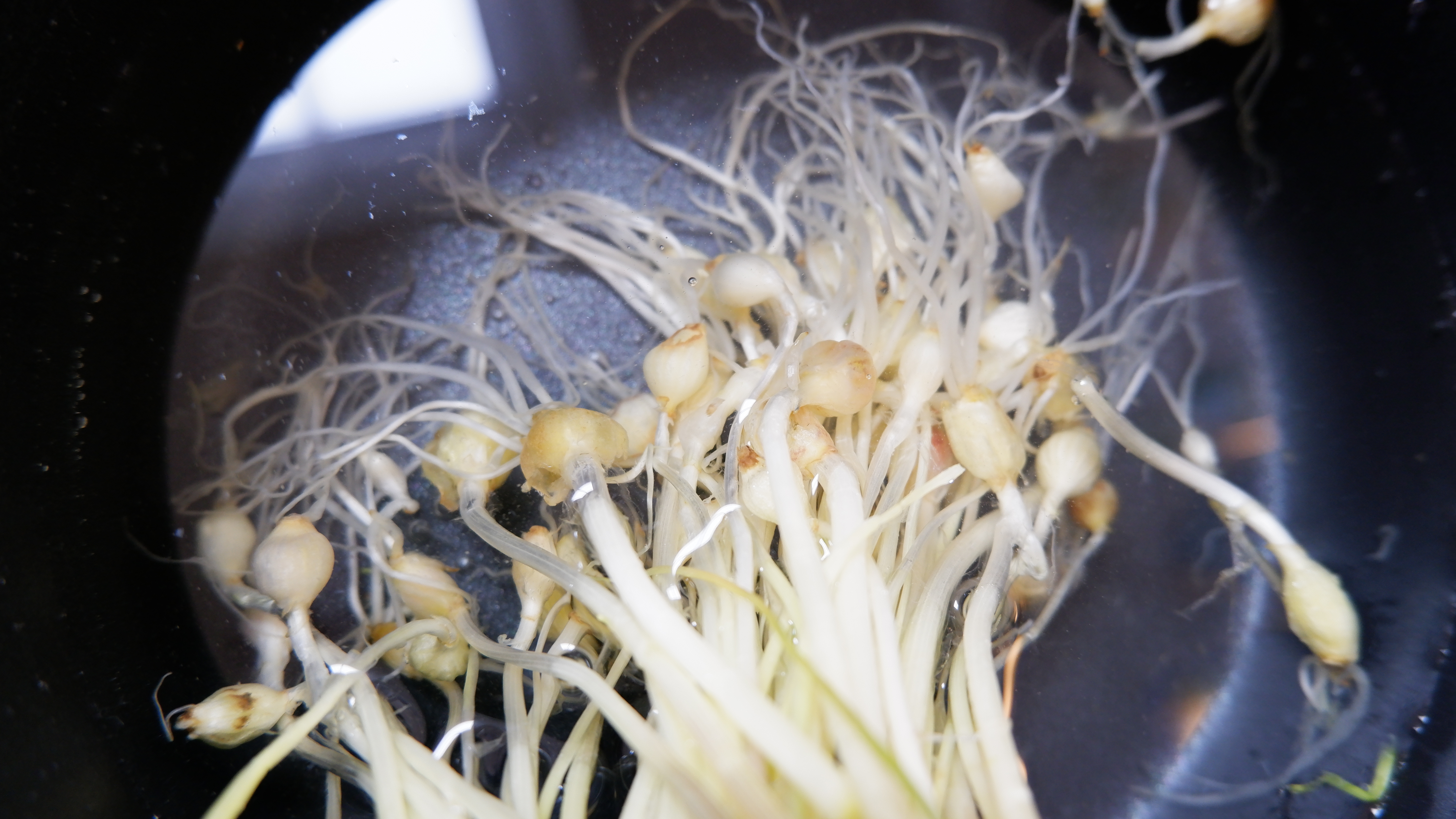 1. 달래 (1묶음) 알뿌리 부분의 껍질을 제거해 줘야 하는데 쉽게 제거하는 방법은 알뿌리 부분만 물에 담가 두면 껍질이 불어서 쉽게 벗겨 낼 수 있어요~ 껍질을 벗겨내고 뿌리 부분에 검게 붙어 있는 건 손톱으로 떼어내 줍니다.