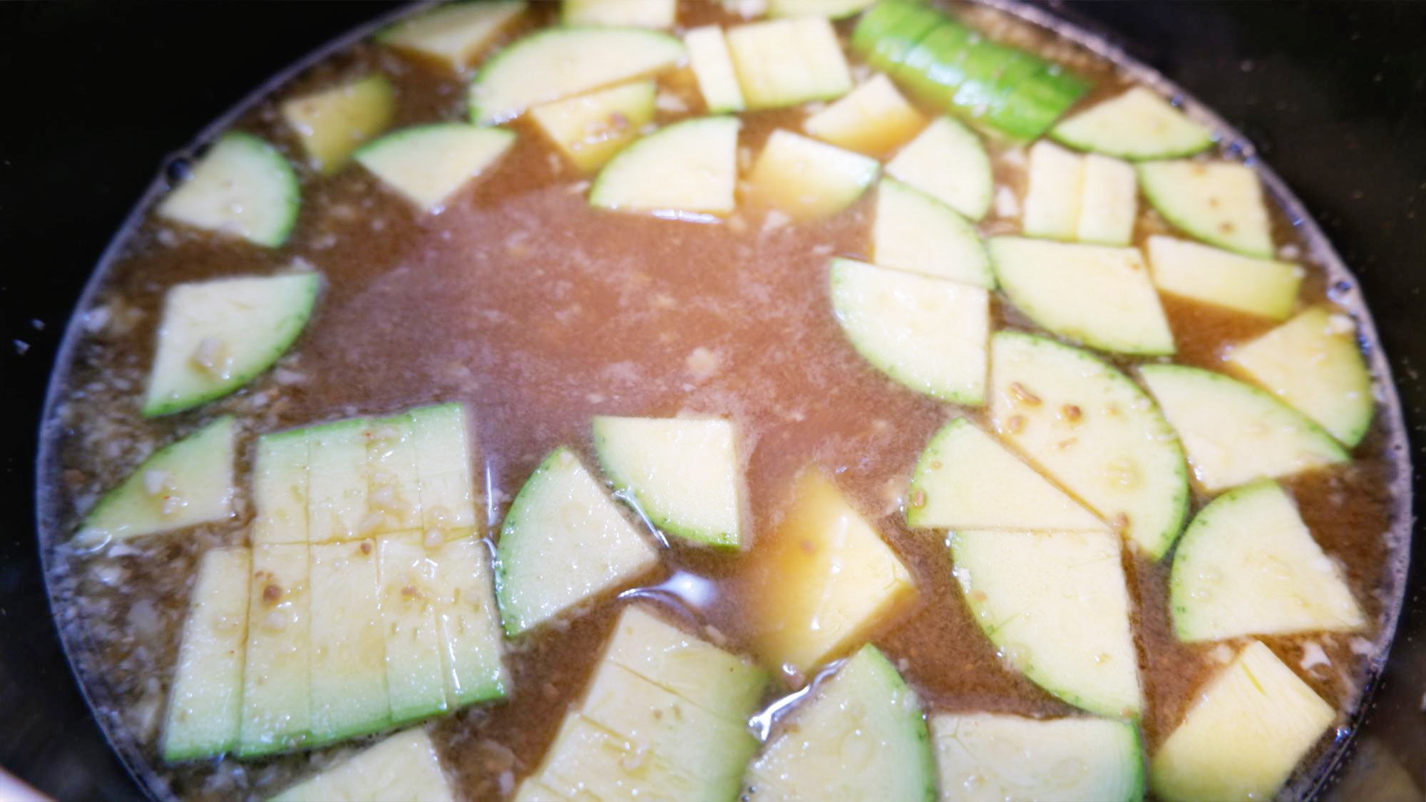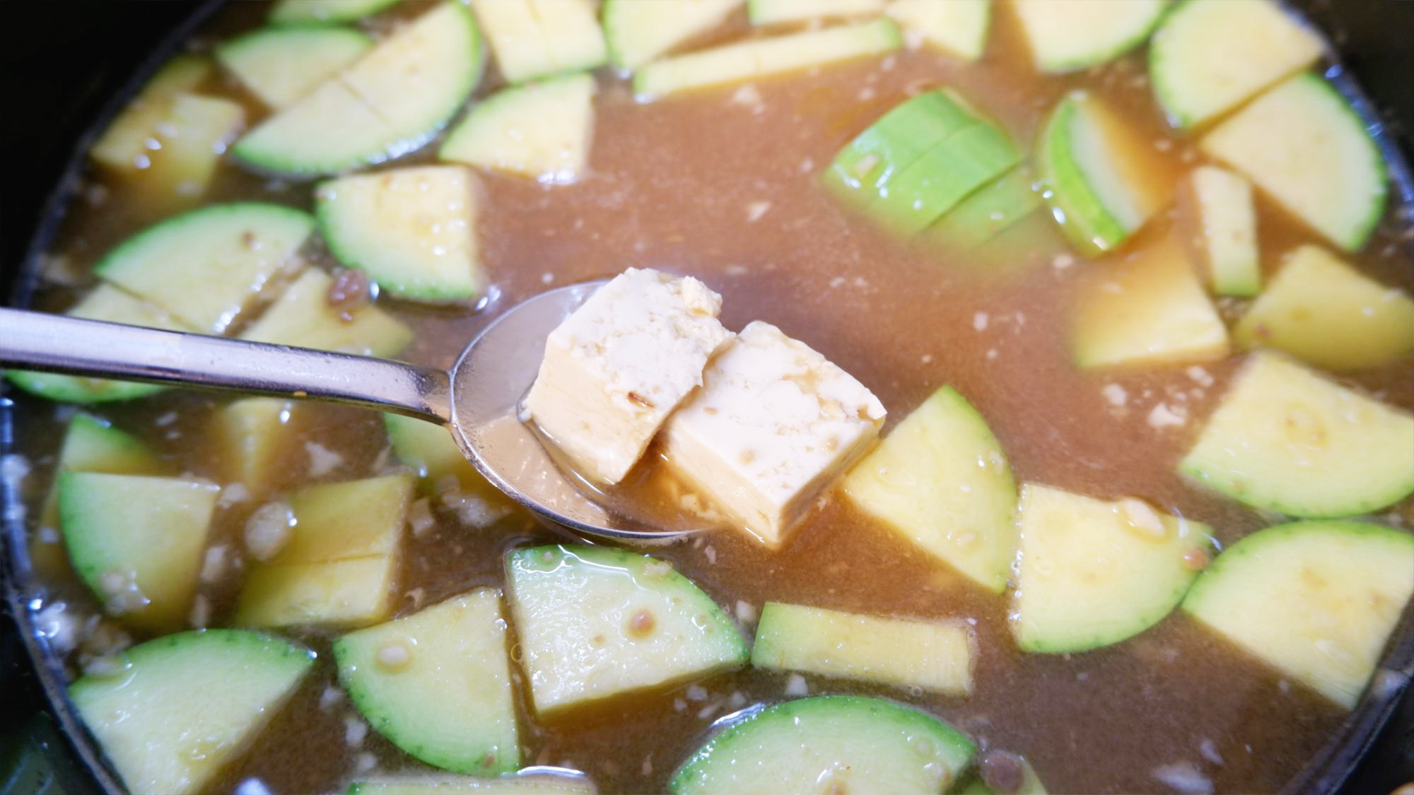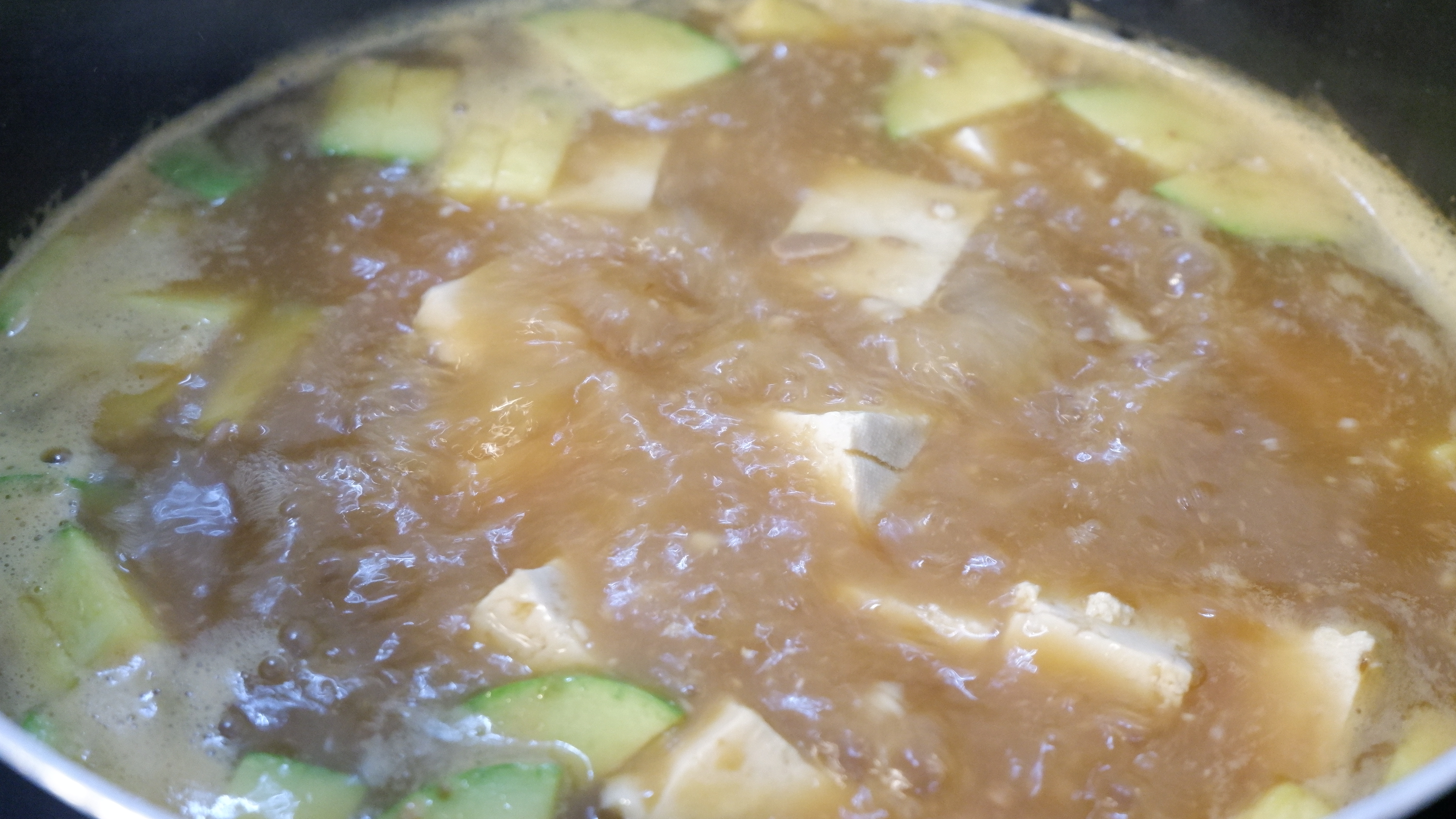 5. 물이 끓기 시작하면 호박과 두부를 넣어줍니다.