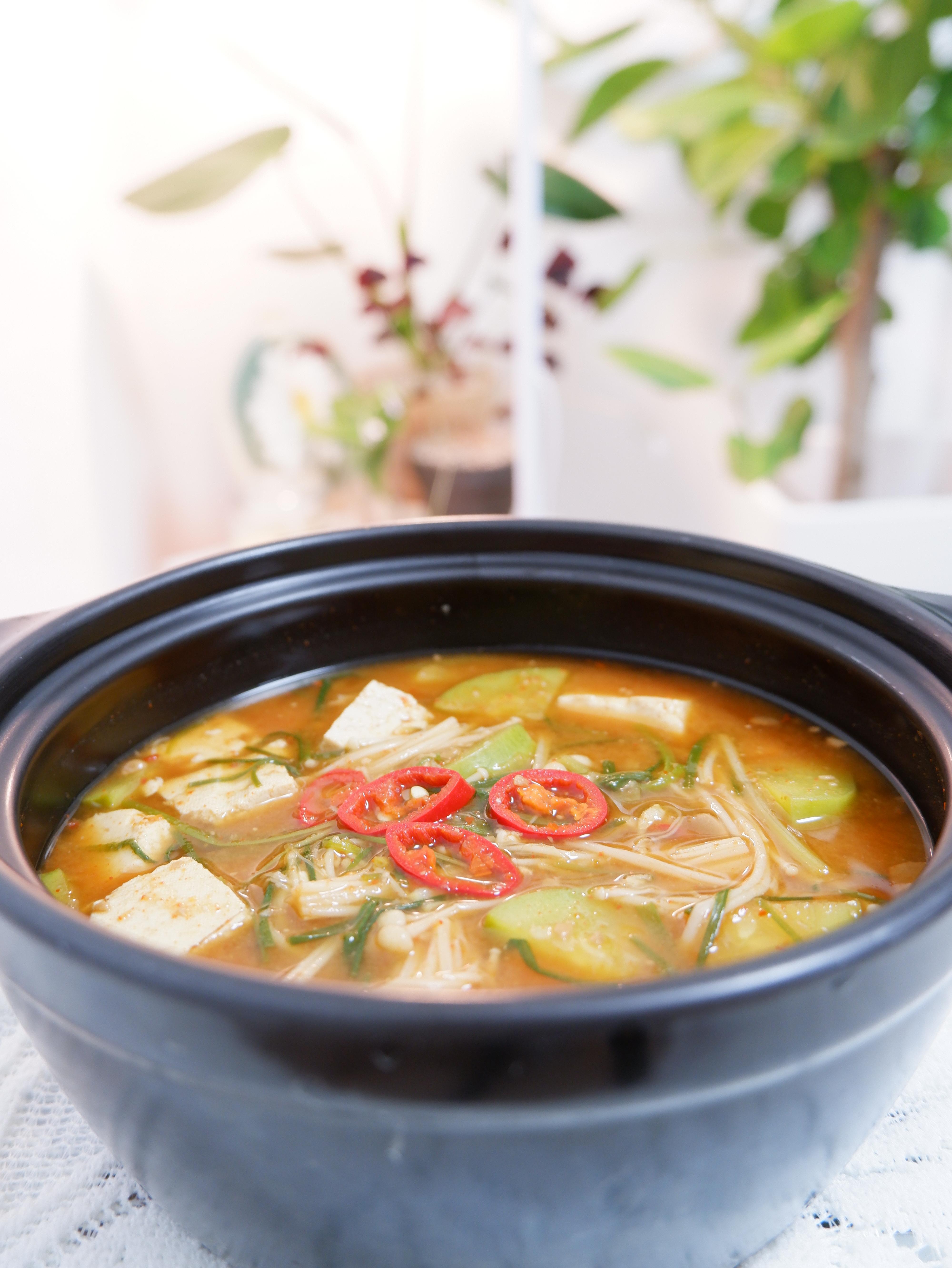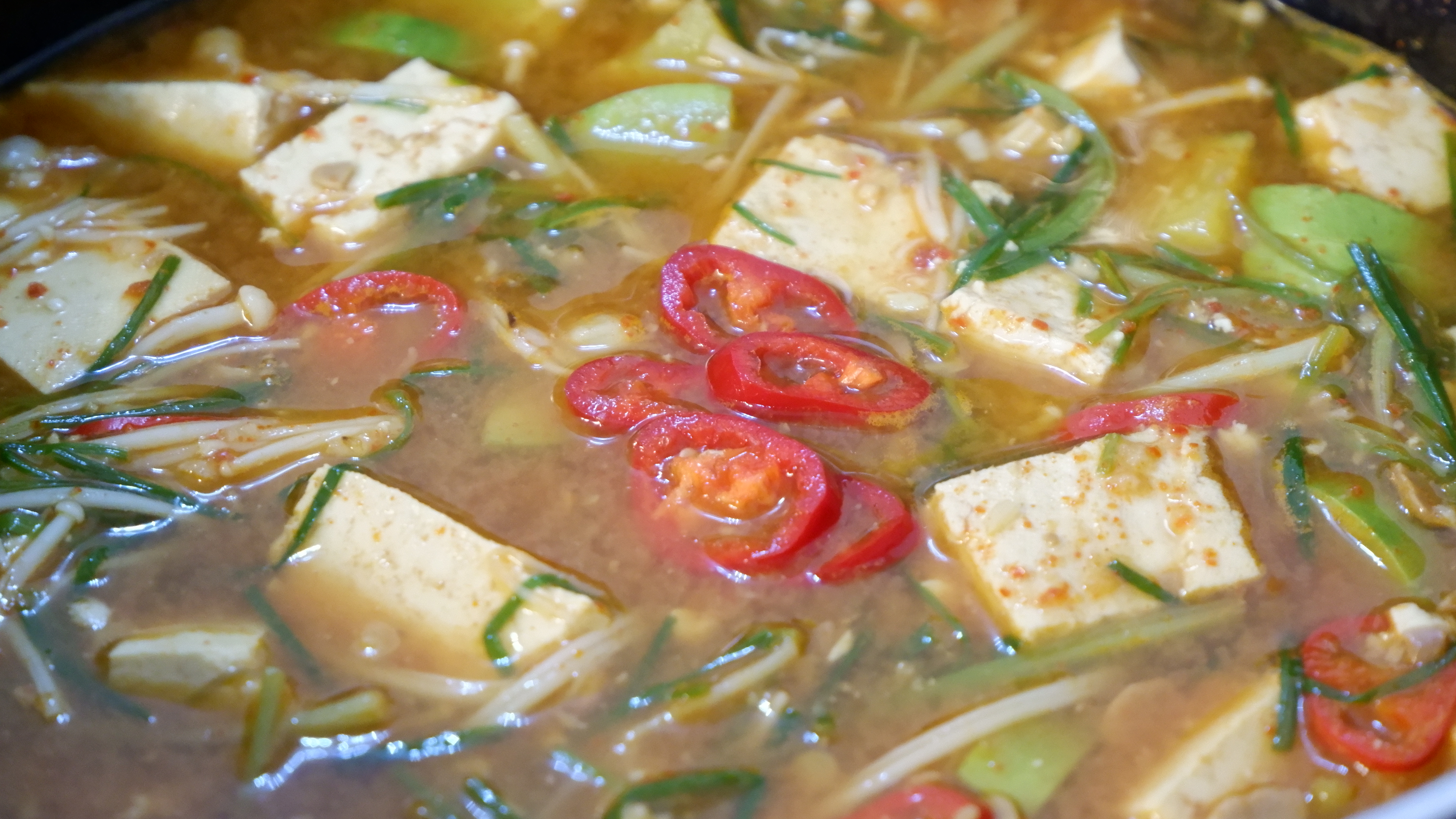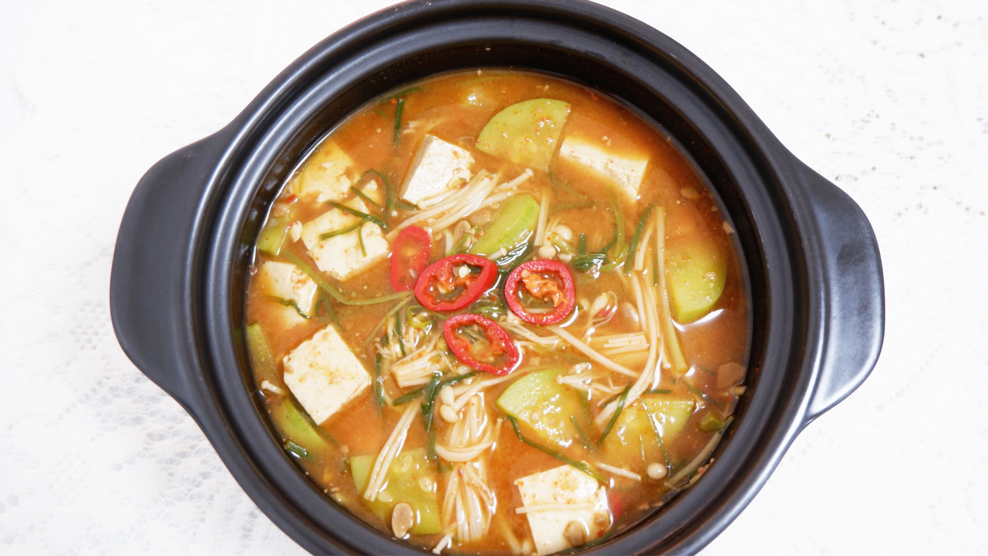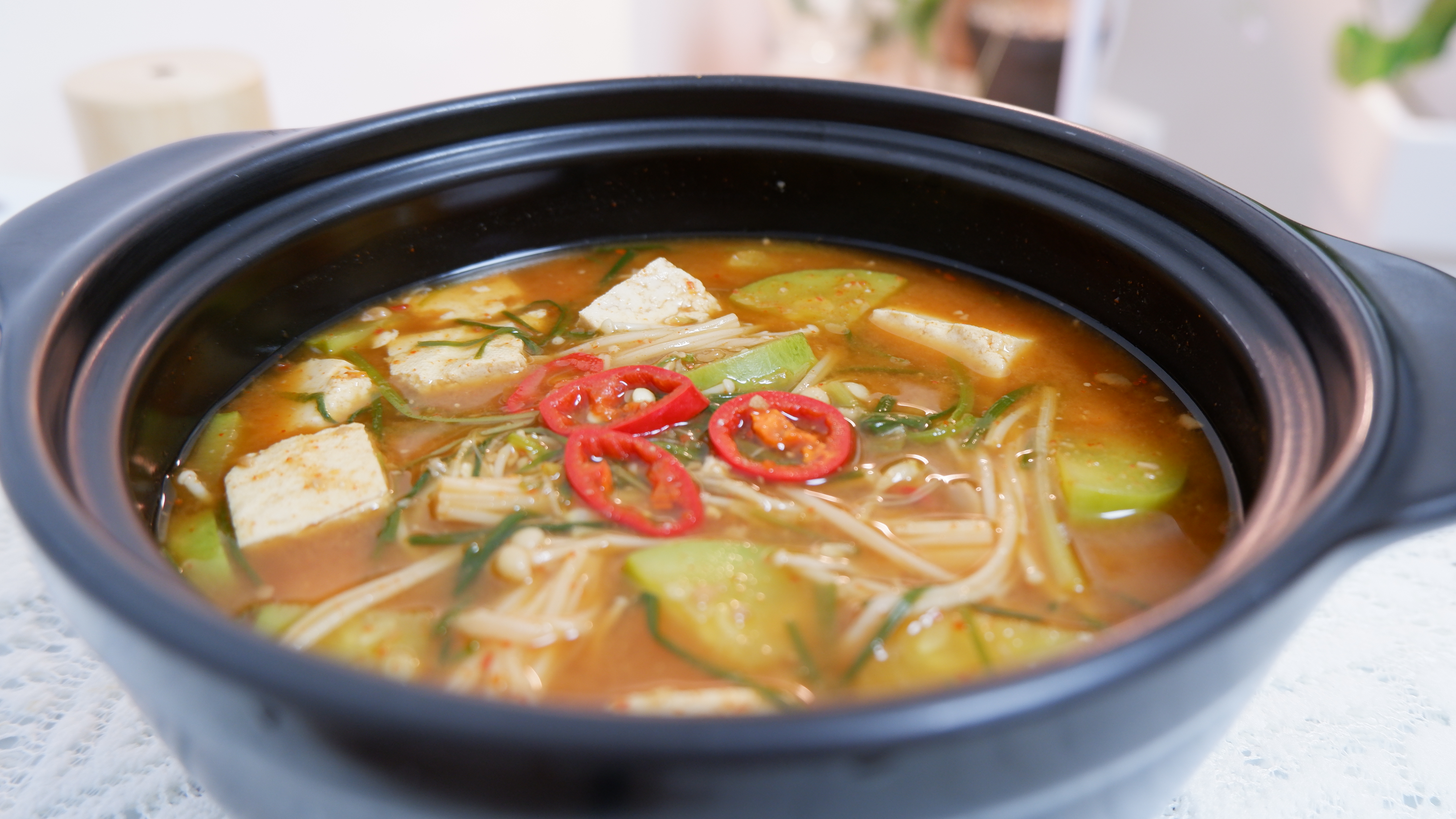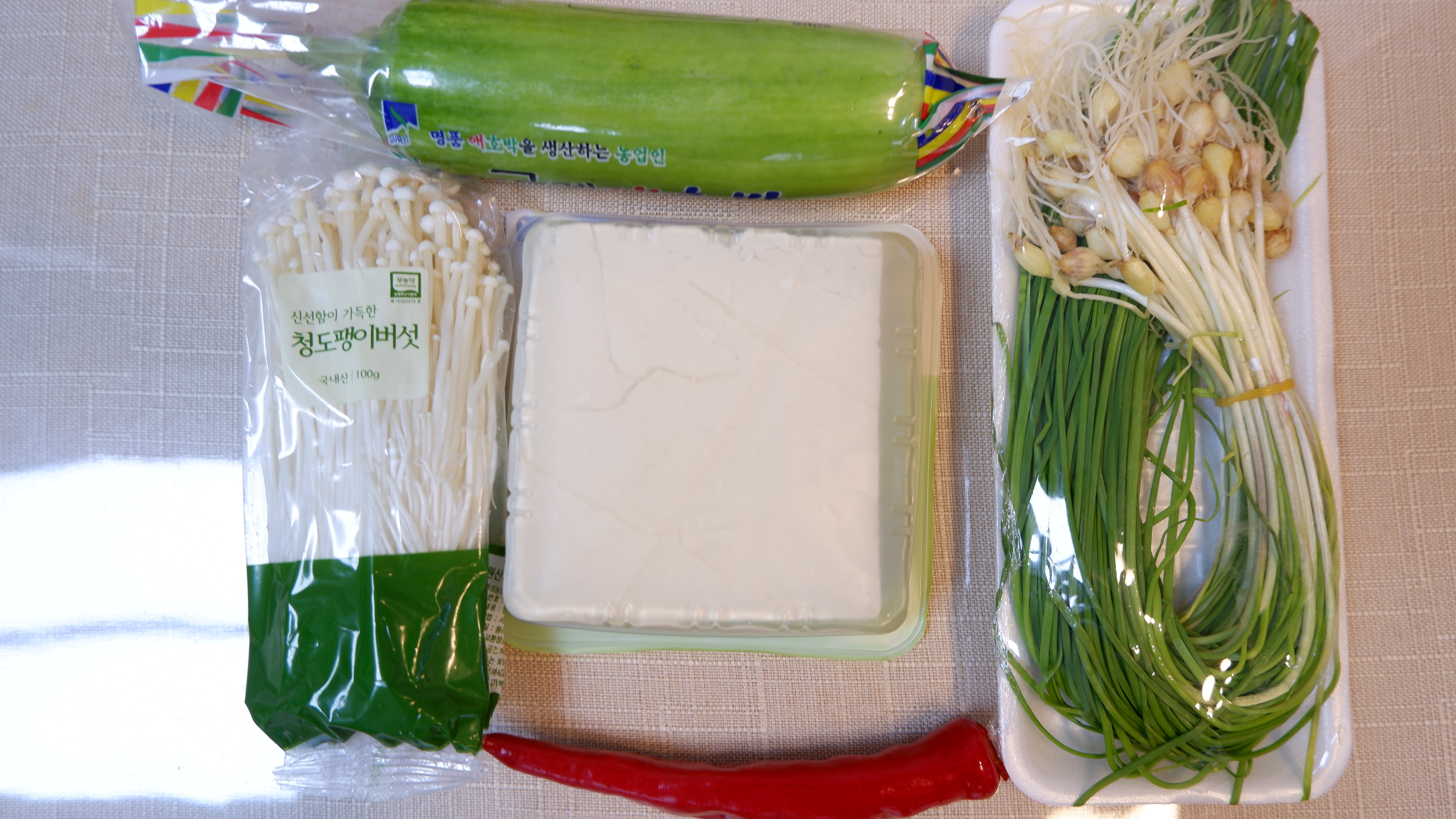 필요한 재료 (4인분) : 달래 1묶음 , 육수 1L (5컵) , 팽이버섯 , 호박 1개 (작은 사이즈) , 두부 한모 , 고추 1개