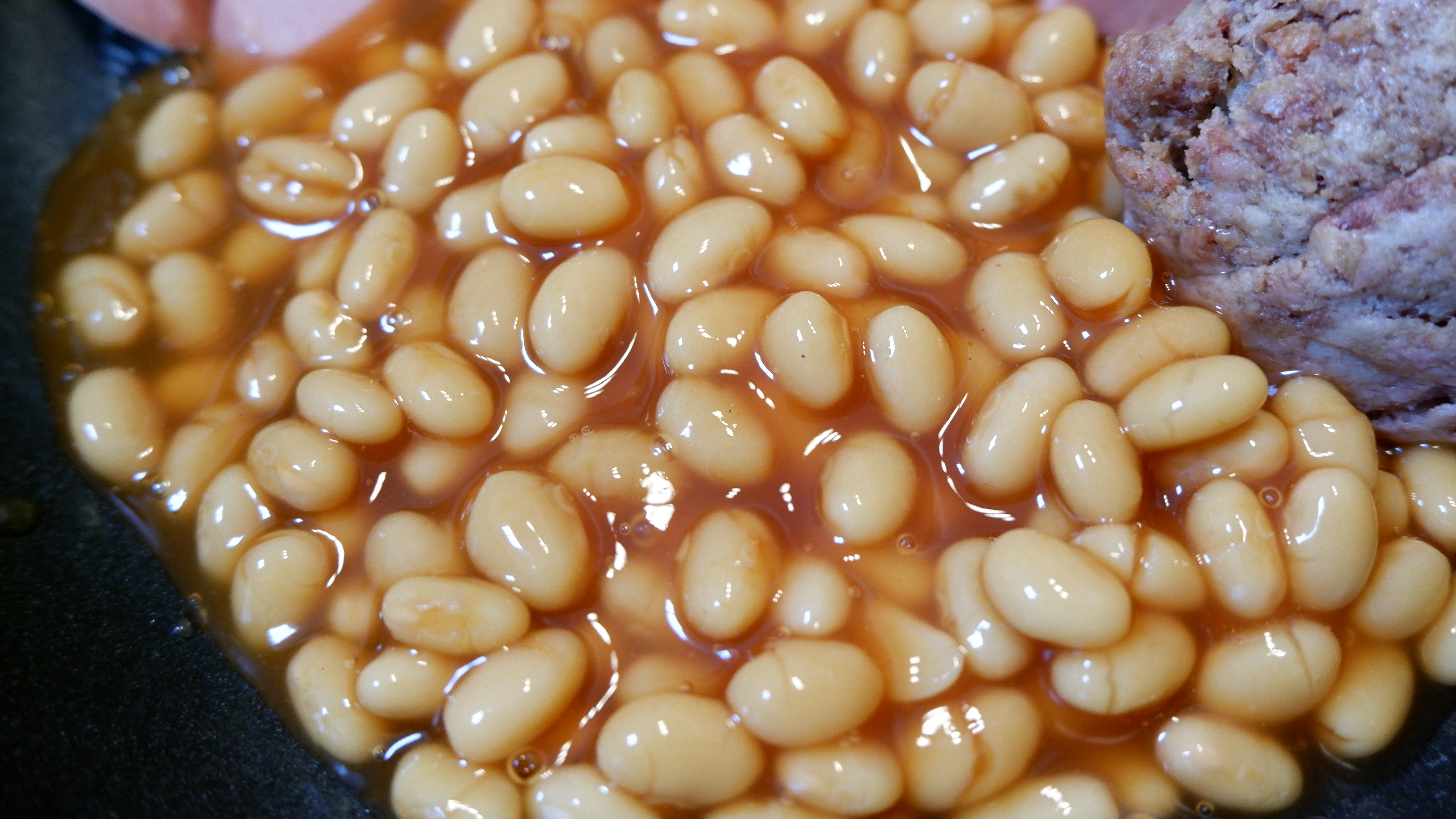 3. 부대찌개를 끓일 냄비에 김치 600~ 700g , 캔 콩 420g ( 베이크드 빈스 사용) , 다진 고기 100g (그라운드 미트 사용) , 스팸 340g , 소시지 , 양파 , 대파 한 줌을 담아줍니다.