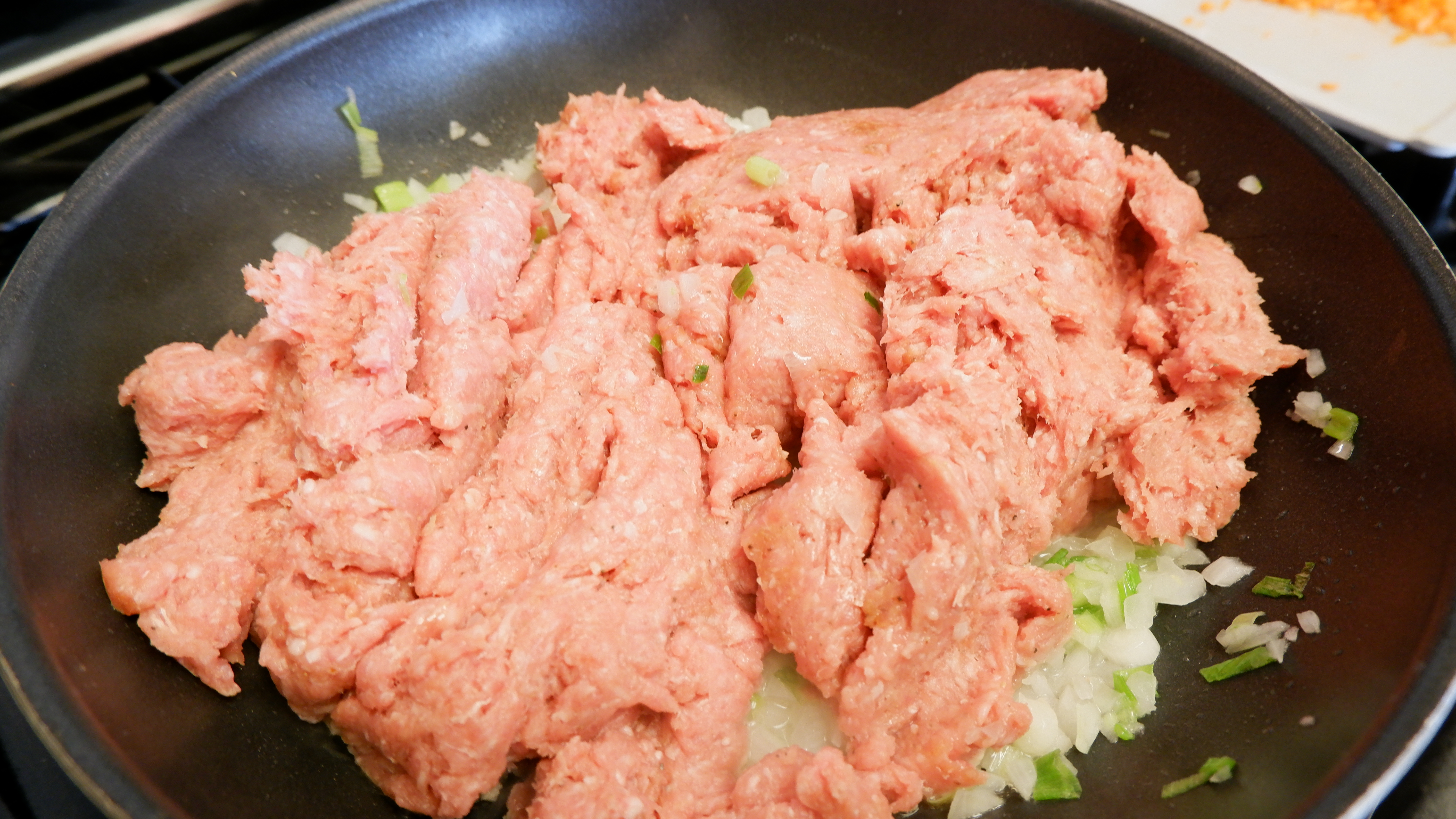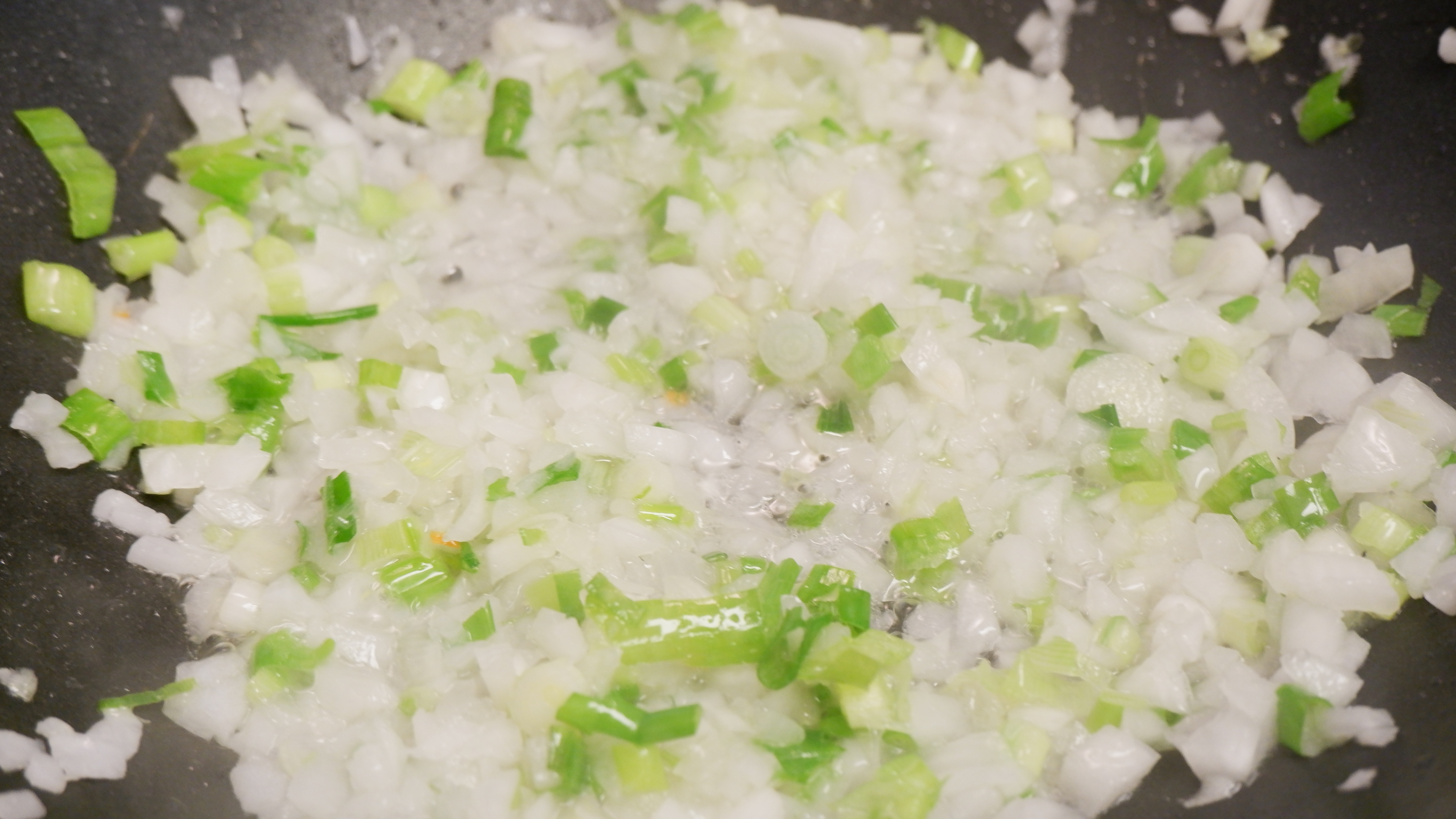 4. 그다음 다진양파와 대파를 넣고 약 2분간 볶아줍니다.