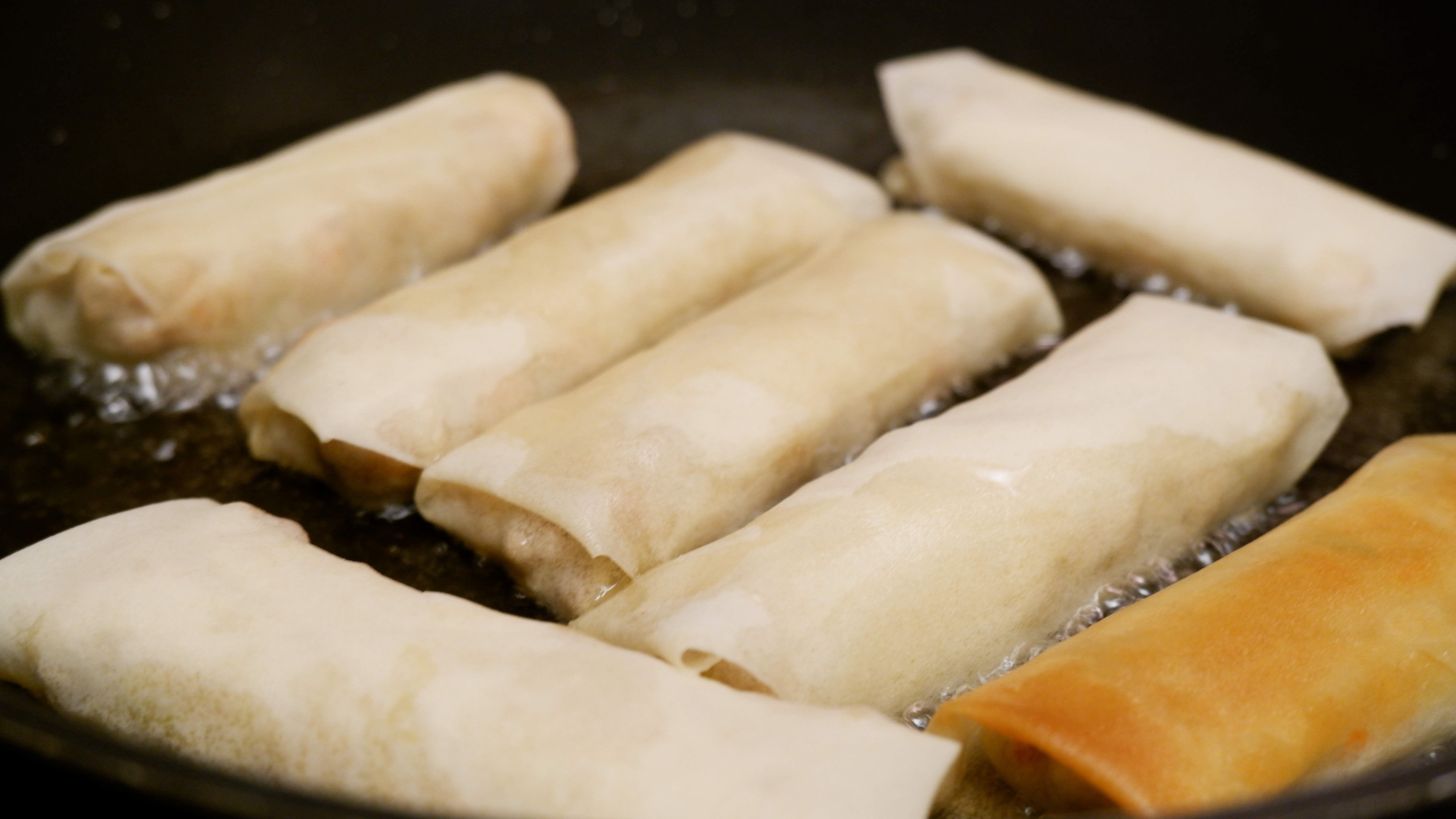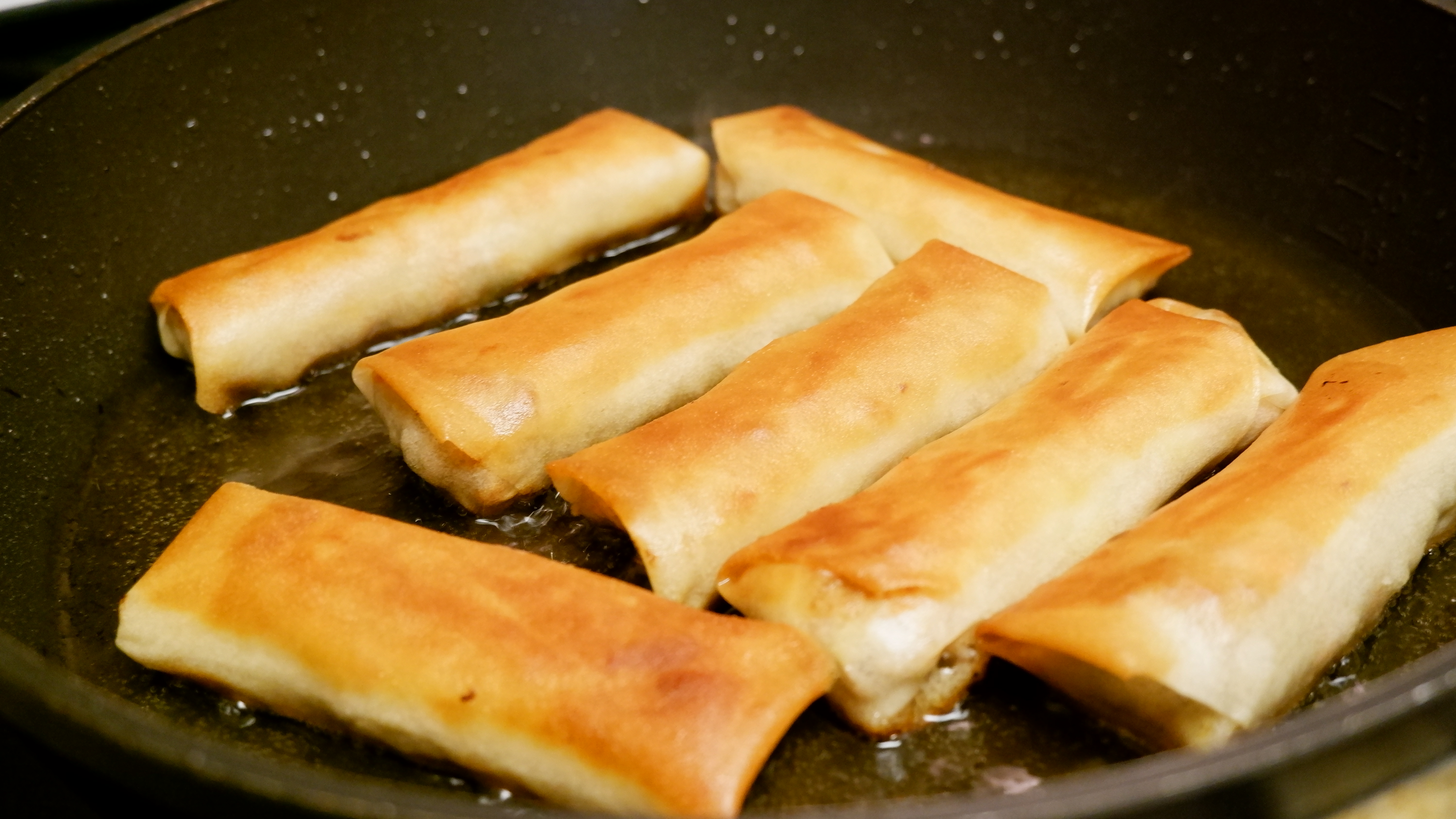 10. 앞뒤로 노릇노릇하게 튀겨주면 스프링롤 완성!